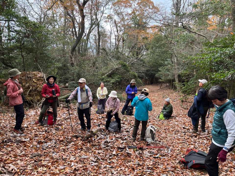 登山中の山道は色々な落葉でびっしり覆われ、晩秋の風情を楽しむことができた。(TT)