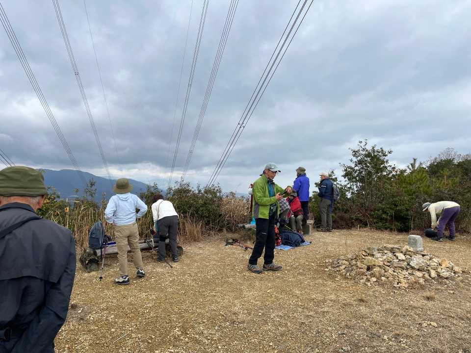 JR大津駅を出発後、幾つかの急坂を乗り越え、琵琶湖の近江大橋が見えるビューポイントを経て、2時間15分で音羽山の山頂に到着。琵琶湖、比良の山々を眺めながら昼食。