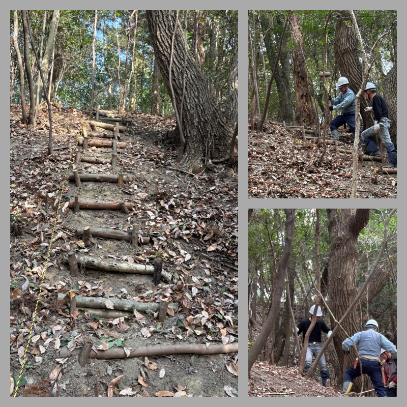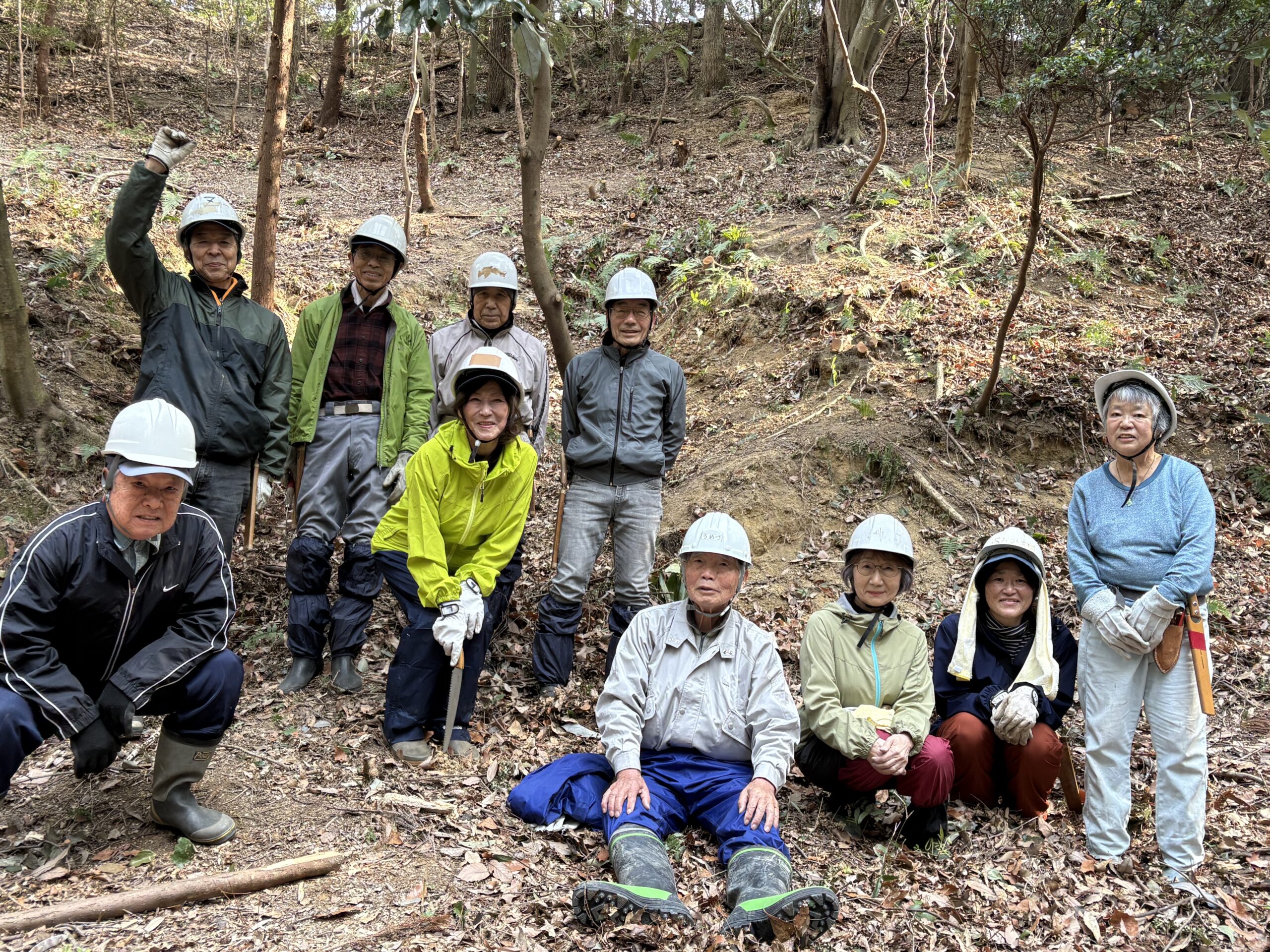 *ランチ後、畑チームで山に入り、明るくなった林床を見て、goodサインです。
