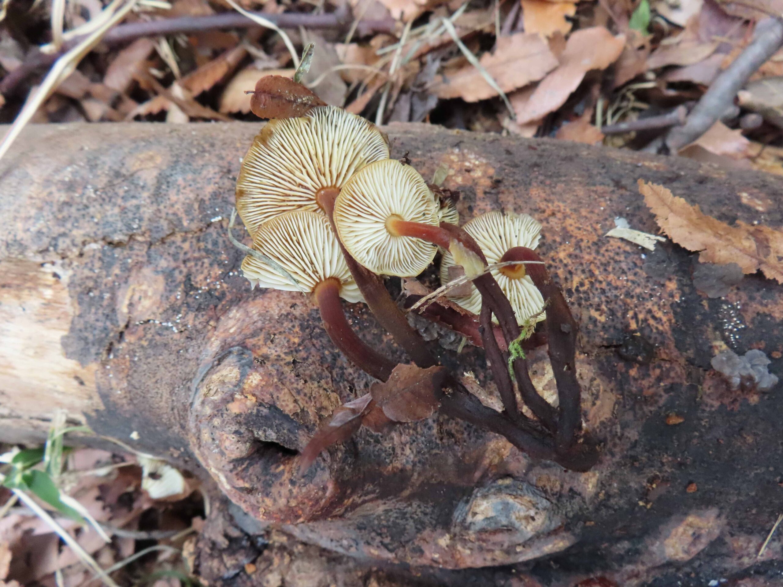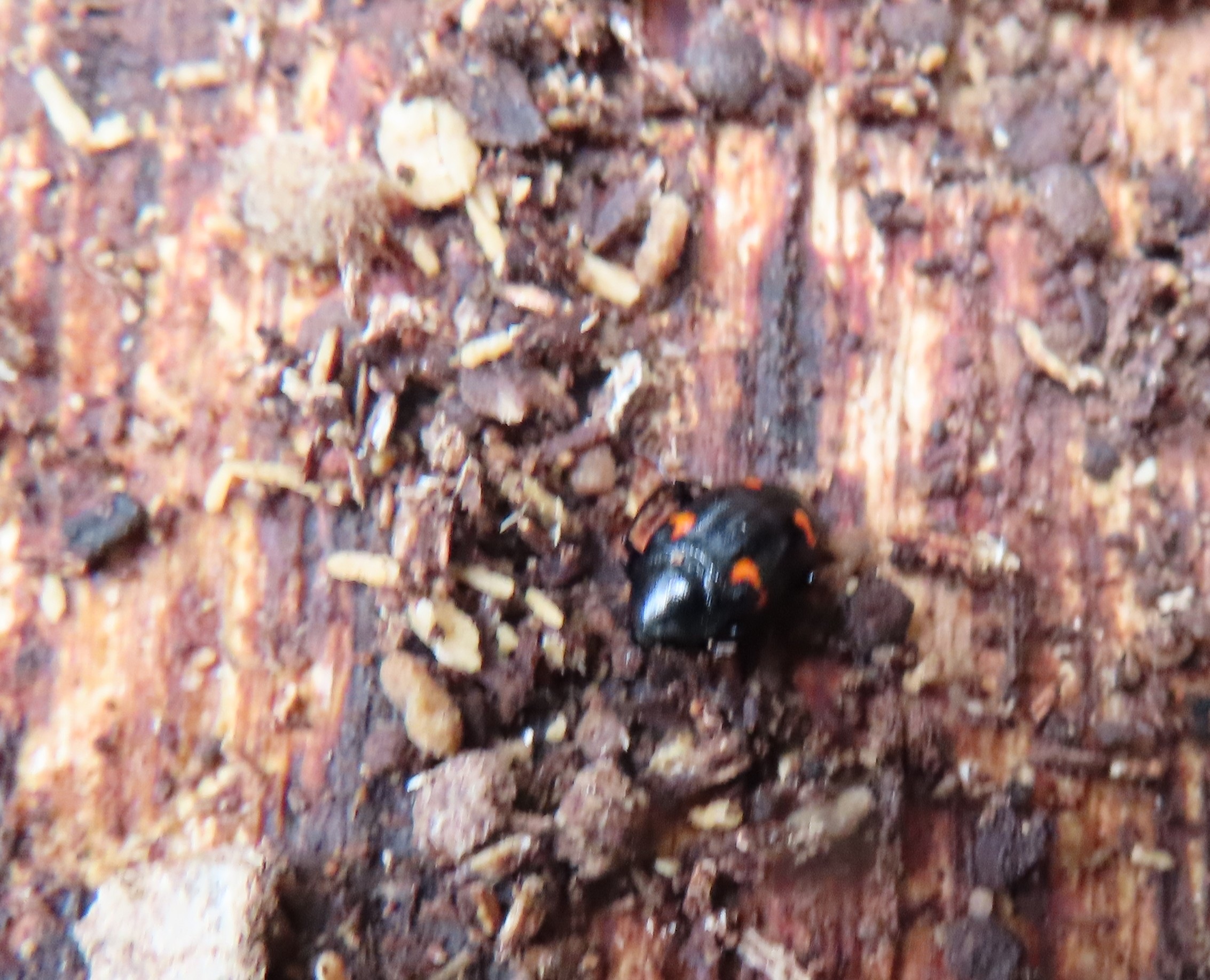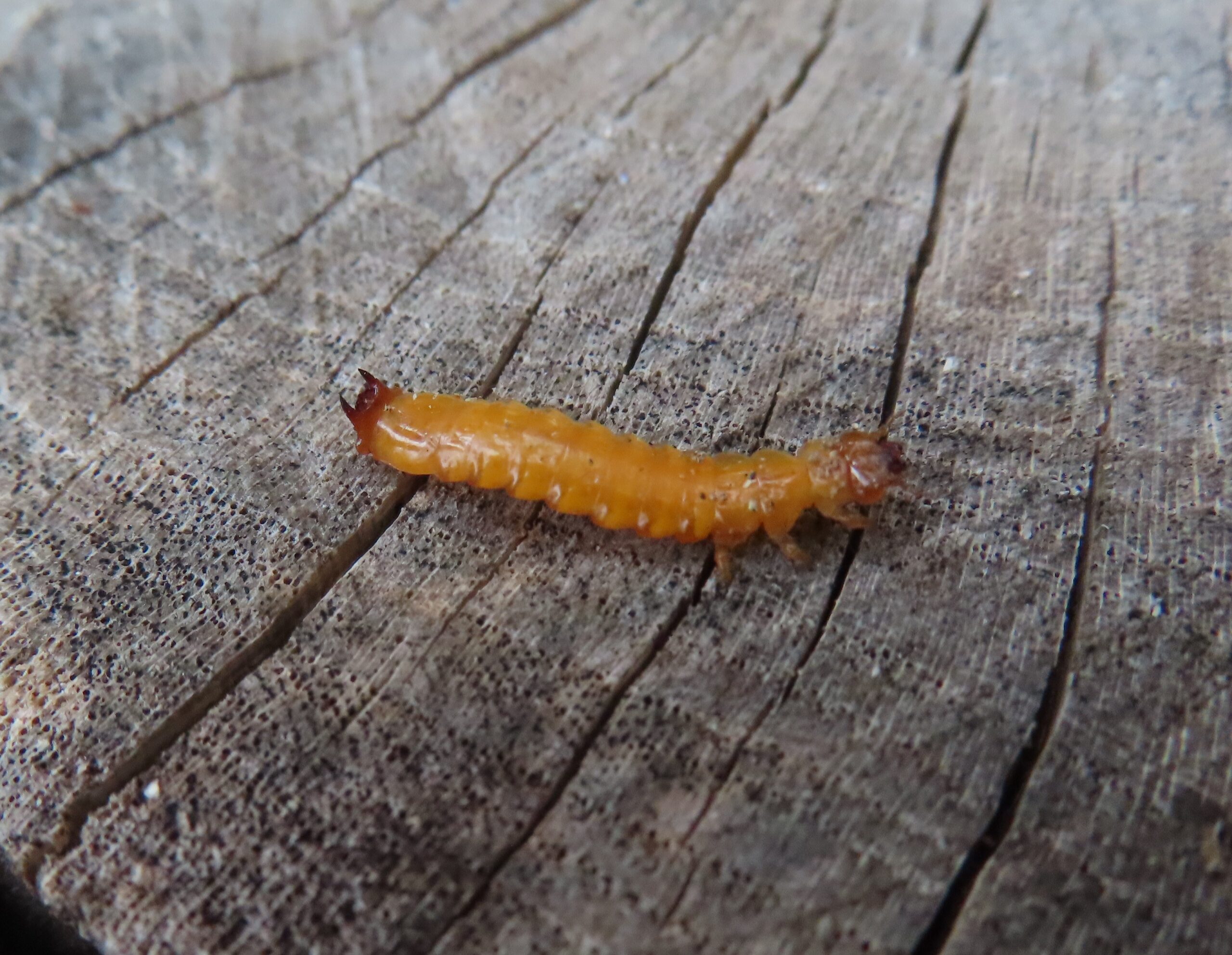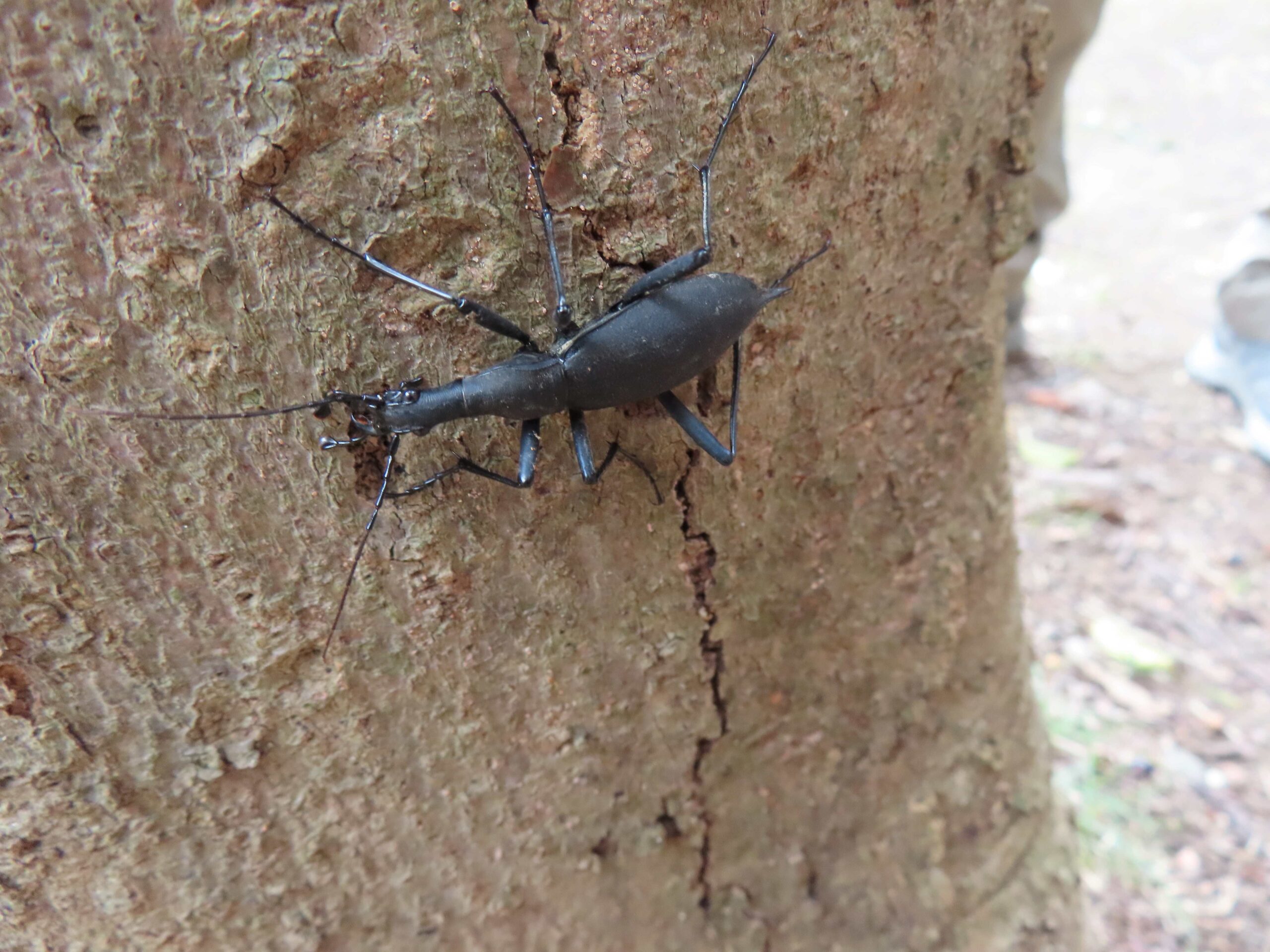 午後は自由参加とし、プール跡の廻りを10名で生き物探しを継続。クスサンの繭やゴミムシの仲間、ニホンアカザトウムシ、マイマイカブリ、おまけにエノキダケ(きのこ)の小さな株などが見つかった。