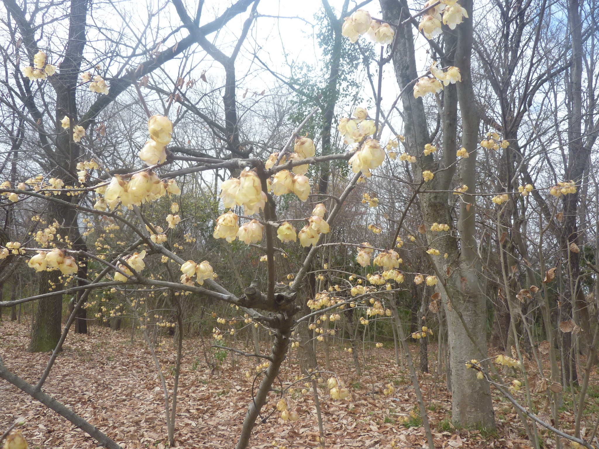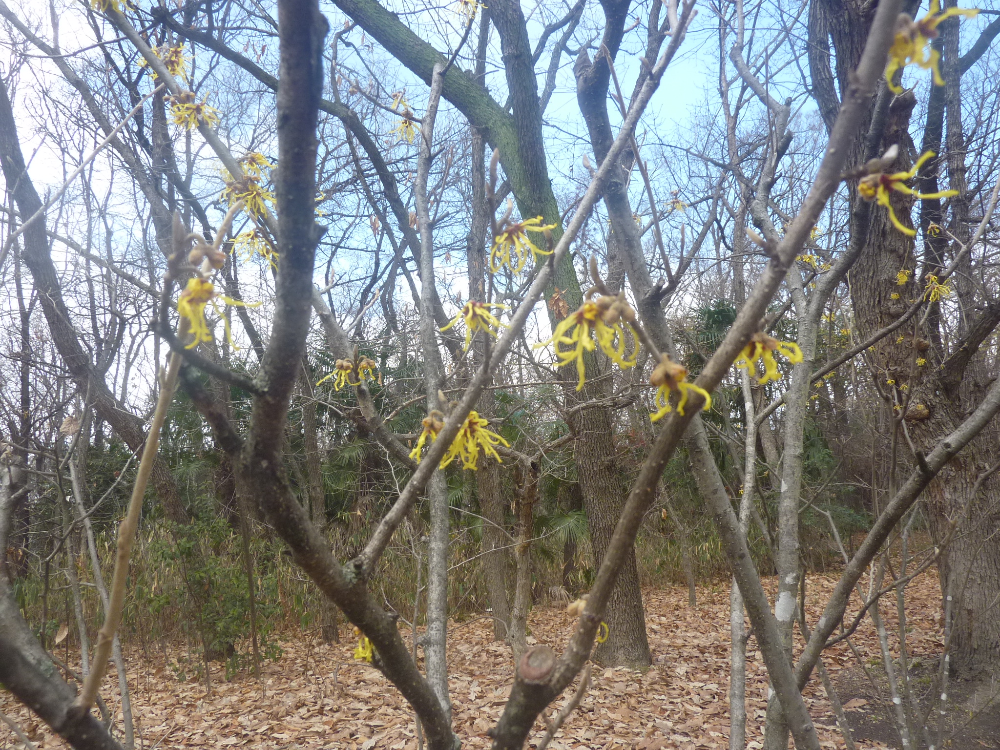 クリスマスローズ園やナノハナ園は開花真っ盛り、菜の花はどこで咲いていても春を強く感じさせる花だ。 サンシュユやマンサクの花は見頃でソシンロウバイは見頃を過ぎ、ロウバイは花を終えていた。 万葉の道ではミツマタの幼木がどうにか花をつけており、タチバナには多くの実が付いている。蜜柑状の実は酸味が強く食用とはならないが、それでも落ちていた実を剥き、味見する人も「わぁー 酸っぱい」。