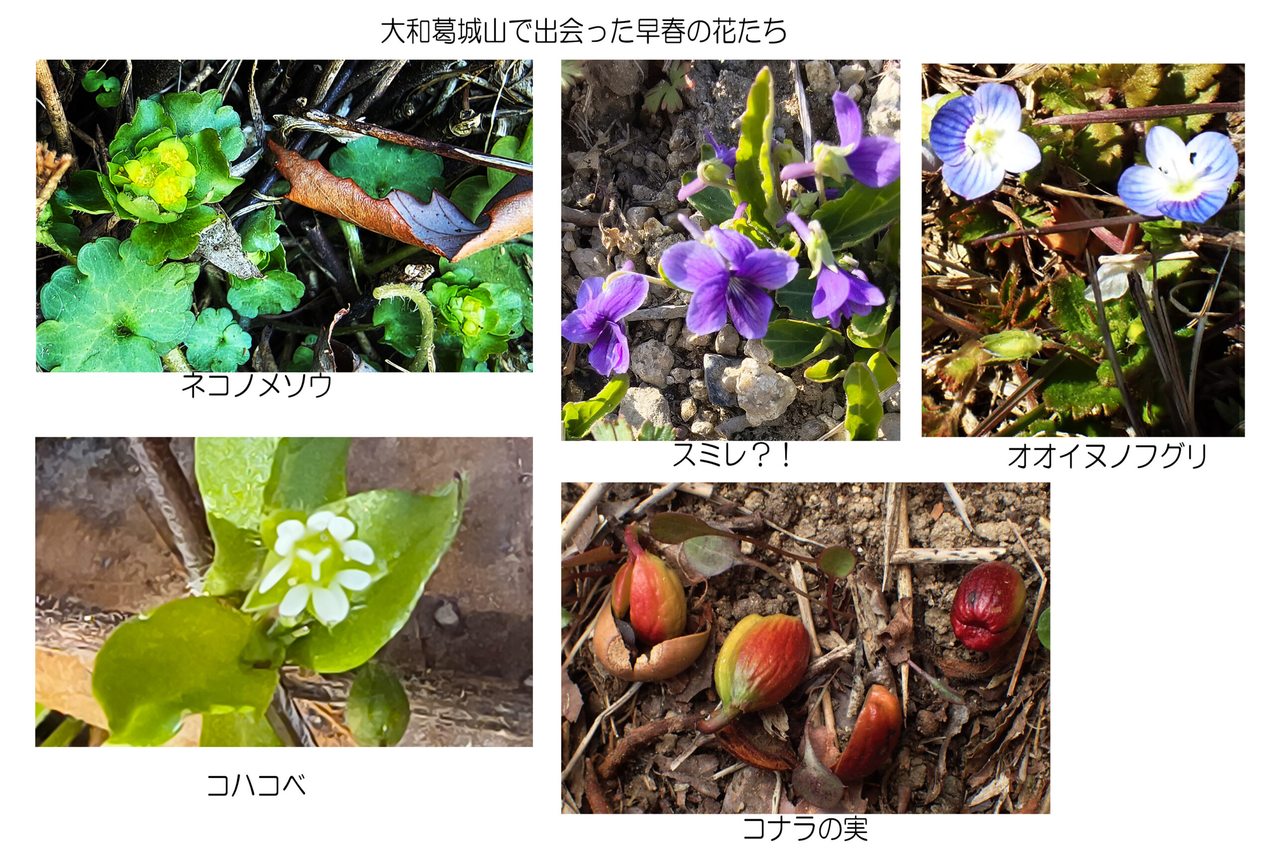 早春の大和葛城山。いろんな成長段階のフキノトウが見たい。加えて早春の蝶や、花々もと、期待を一杯抱えてロープウェイで登山口へ。お天気は上々。空は青く、奈良盆地と、周りを囲む山々も、くっきりとうす青く連なり、先ずは自然の美しさを堪能した。