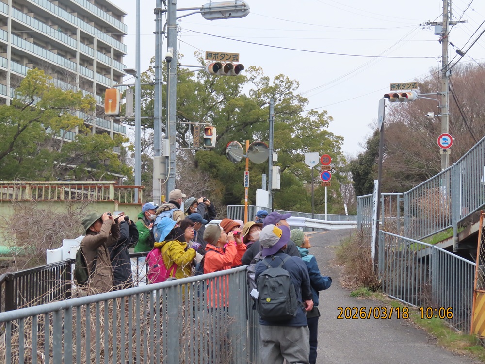 川沿いを歩くとキジの声も聞こえて土筆も出ていて春になりつつあると実感出来ました。川原で昼食です。カワウが数羽日差しを浴びて翅を乾かしていました。昼食後汐の宮にむかって歩くと対岸の屋根にイカルチドリが二羽くつろいでいる様子でした。水辺でばかり見ていたので屋根の上で見るのは初めてでした。その後公園で鳥合わせして解散でした。雨に会わなくてよかったです。