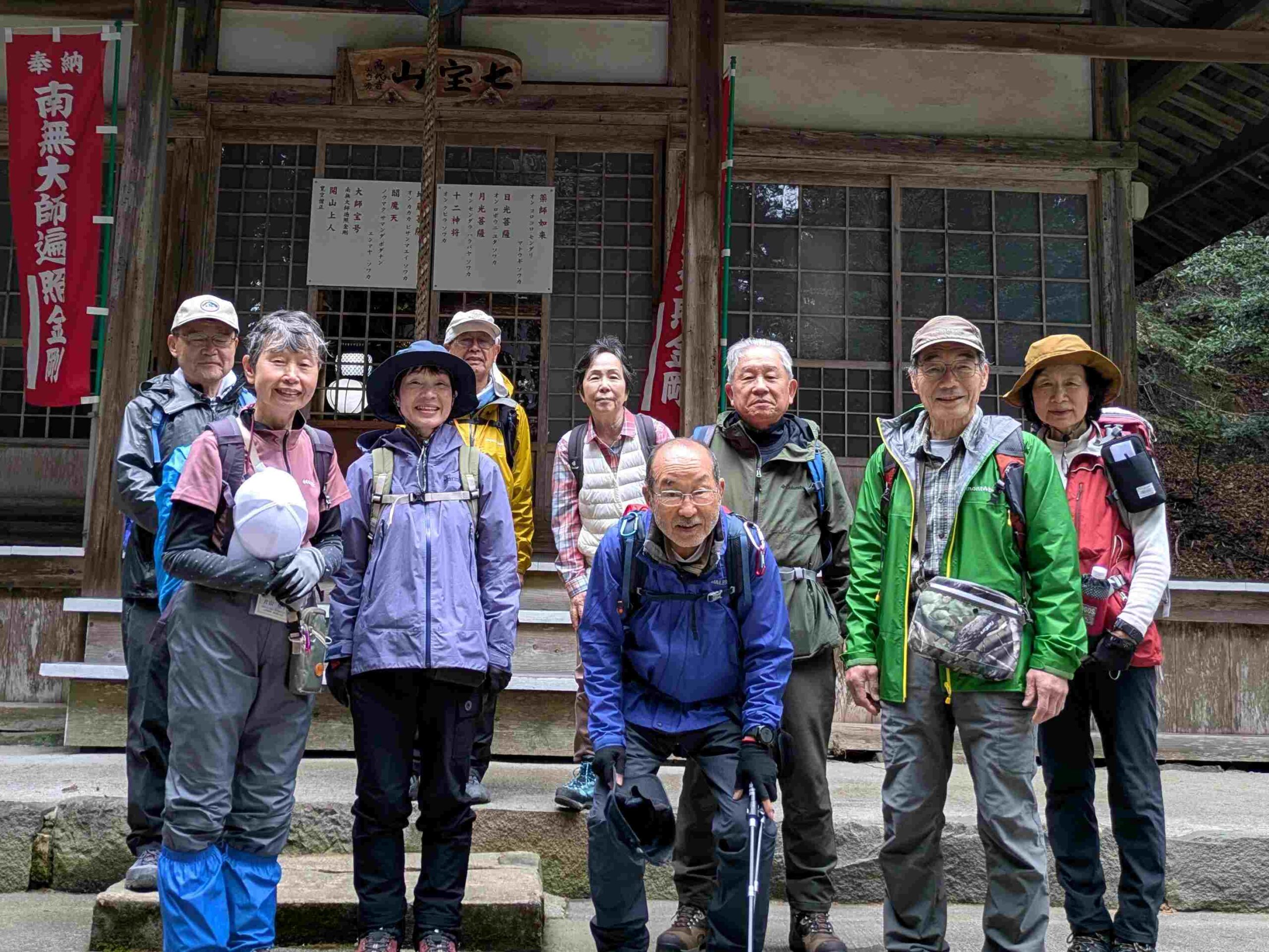 能勢妙見山の西側にある高代寺山(489m)に登った。昼頃からの雨予報で、途中からの雨を覚悟し、ときわ台駅を出発。ゆるやかな舗装道を登り、1時間15分後に高代寺霊園に到着し、早めの昼食・トイレ休憩。小雨が降りだしたので雨具を着用し、近くの高代寺山に登った後、由緒ある高代寺へ。高代寺境内には、11年前に捕獲されたツキノワグマが檻中で飼育されていた。帰路は、歩きやすい落葉の道を辿り、吉川城跡、吉川八幡神社を経て、13時30分に妙見口駅に着いた。歩行が3時間の楽なコースであり、途中からの雨も小雨程度で済んだので、春近しの山歩きを楽しむことができた。(TT)