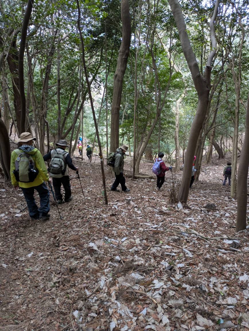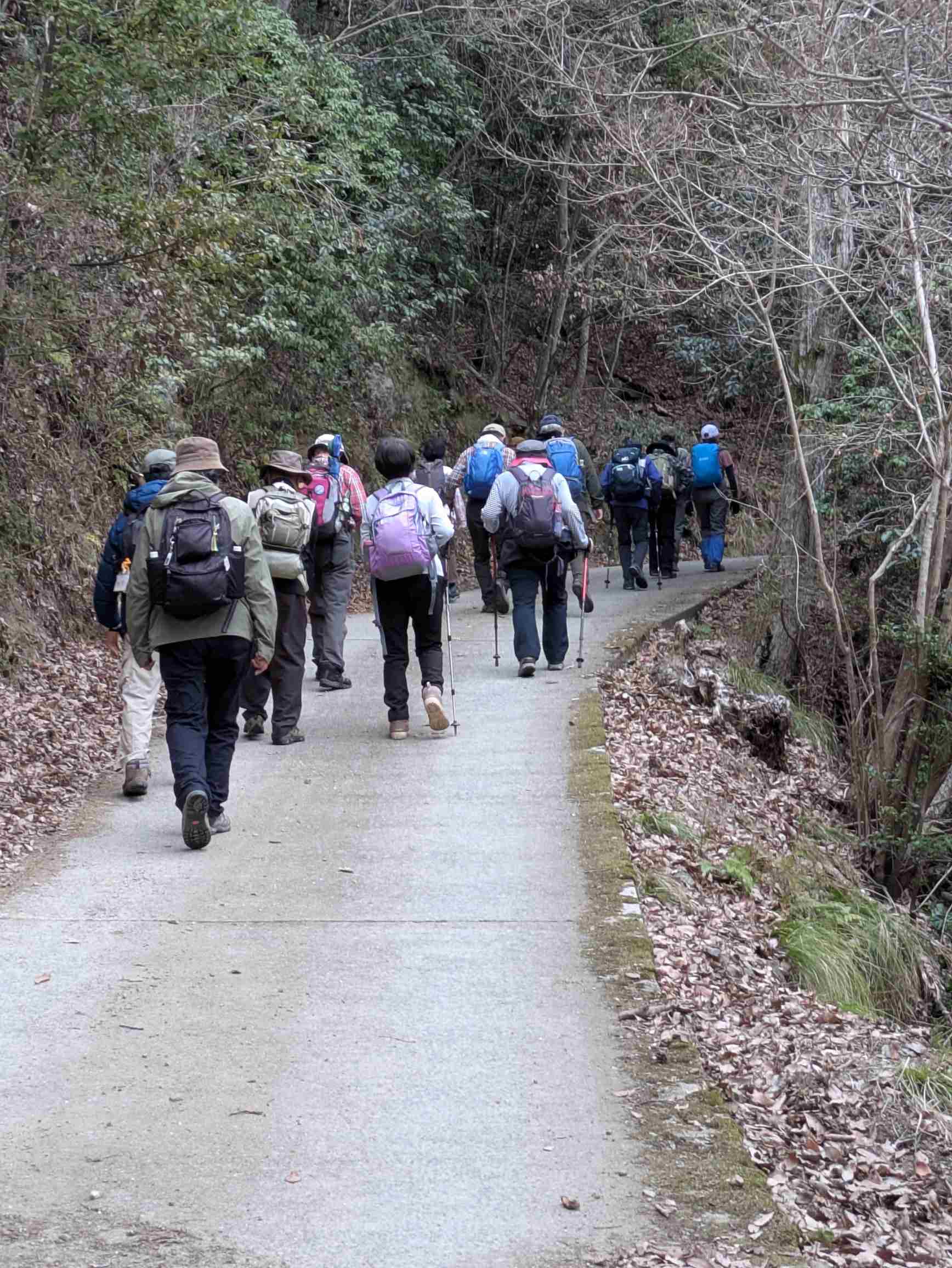 能勢妙見山の西側にある高代寺山(489m)に登った。昼頃からの雨予報で、途中からの雨を覚悟し、ときわ台駅を出発。ゆるやかな舗装道を登り、1時間15分後に高代寺霊園に到着し、早めの昼食・トイレ休憩。小雨が降りだしたので雨具を着用し、近くの高代寺山に登った後、由緒ある高代寺へ。高代寺境内には、11年前に捕獲されたツキノワグマが檻中で飼育されていた。帰路は、歩きやすい落葉の道を辿り、吉川城跡、吉川八幡神社を経て、13時30分に妙見口駅に着いた。歩行が3時間の楽なコースであり、途中からの雨も小雨程度で済んだので、春近しの山歩きを楽しむことができた。(TT)