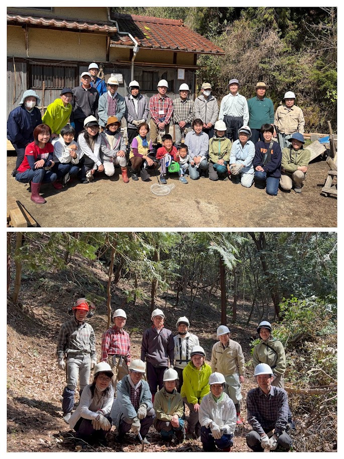上:里山保全部会と富田林の自然を守る会の合同集合写真 下:山組集合写真