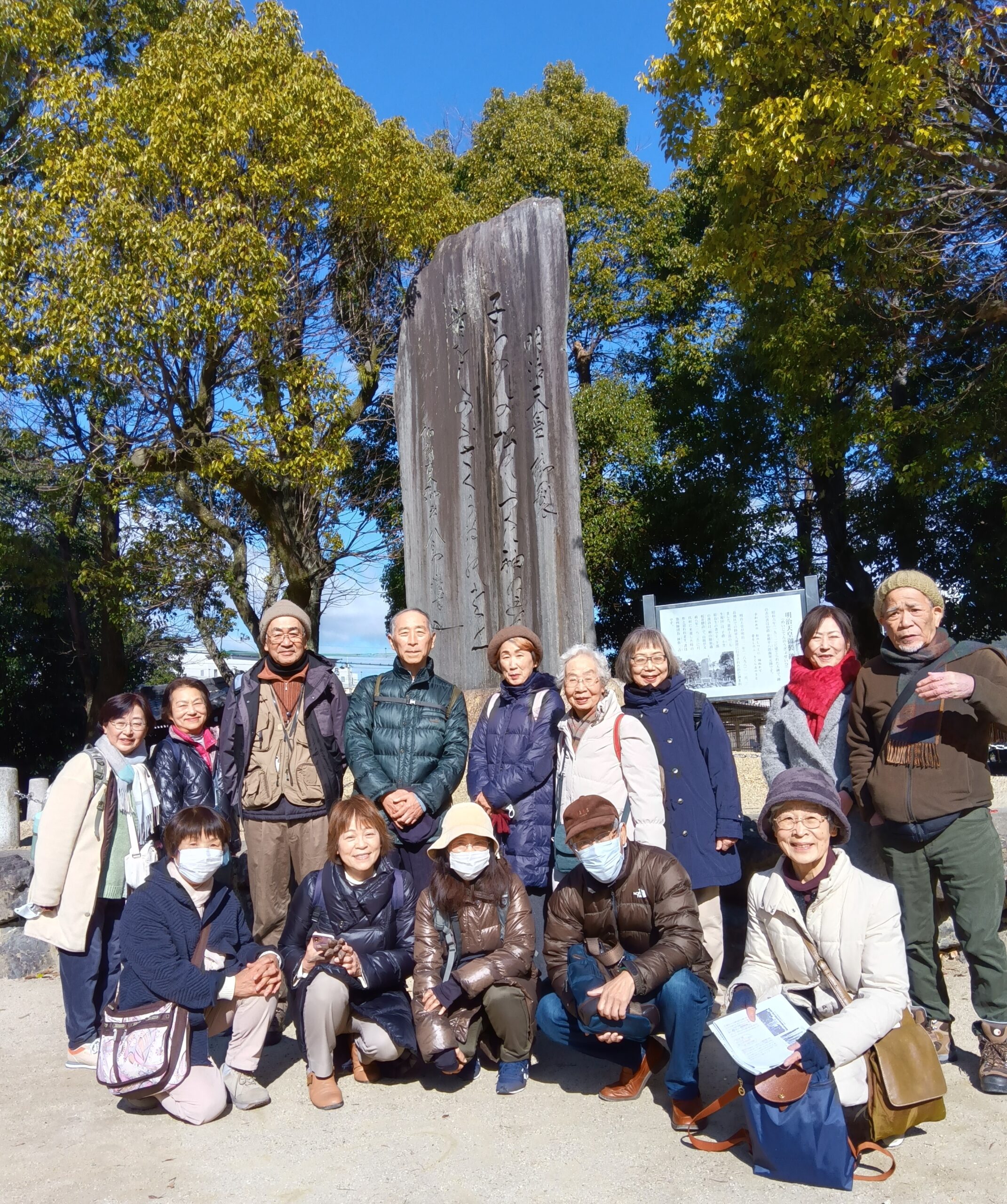 冬とは思えない、抜けるような青空とポカポカ陽気に恵まれ、絶好の吟行日和。まずは水無瀬神宮に参拝して、府下唯一の「名水百選」の清水を味わいました。桜井駅跡公園では、明治天皇御製歌碑や楠公父子訣別の石碑、楠公父子別れの石像などを見て、中世の歴史に思いを馳せました。町ふれあいセンターでの句会は、新春とあって、めでたい気分に浸って、和やかに進行。終了後は大阪・梅田で有志による新年会を開き、今年の健吟を誓い合いました。(Y.W)