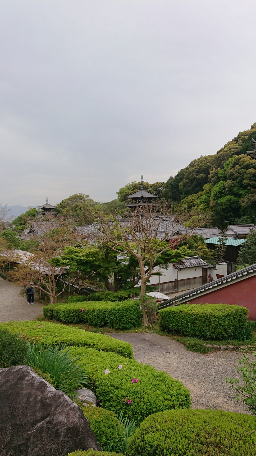 黄砂に霞む奈良盆地、先週末に中将姫に因む練供養会式を終え牡丹祭を開催中の当麻寺へ。仁王門から、(現存天守ではないが)東西両塔が唯一残るお寺の境内を散策しながら奥の院へ。浄土庭園の牡丹や藤の花などを愛で書院で精進料理に舌鼓の後例会に移った。