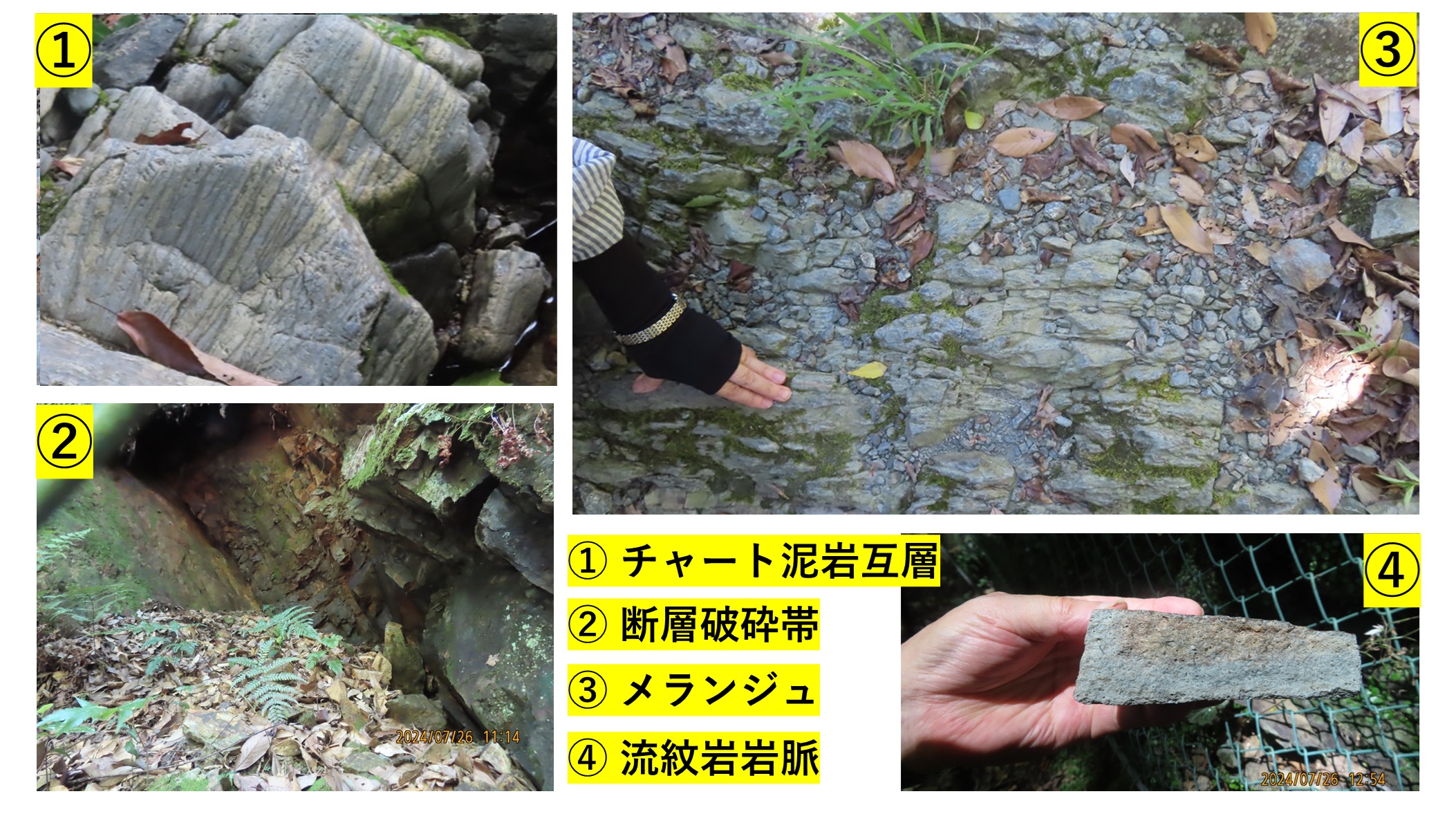 泥岩やチャートの露頭、チャートと泥岩の互層をなす岩石