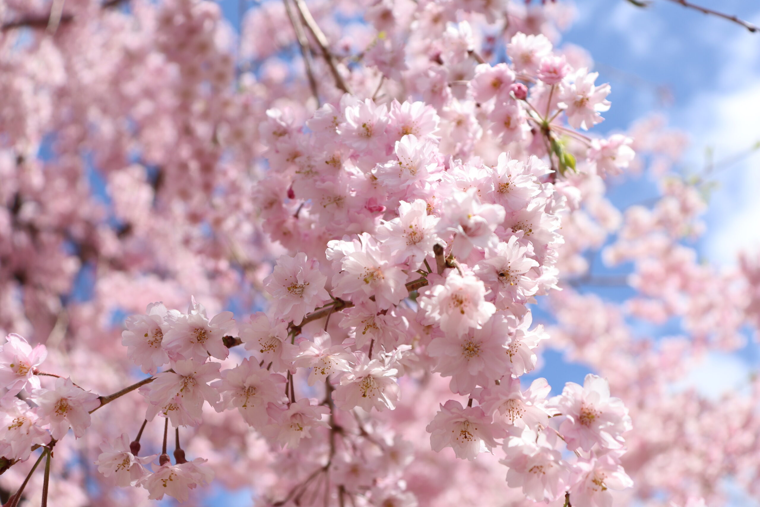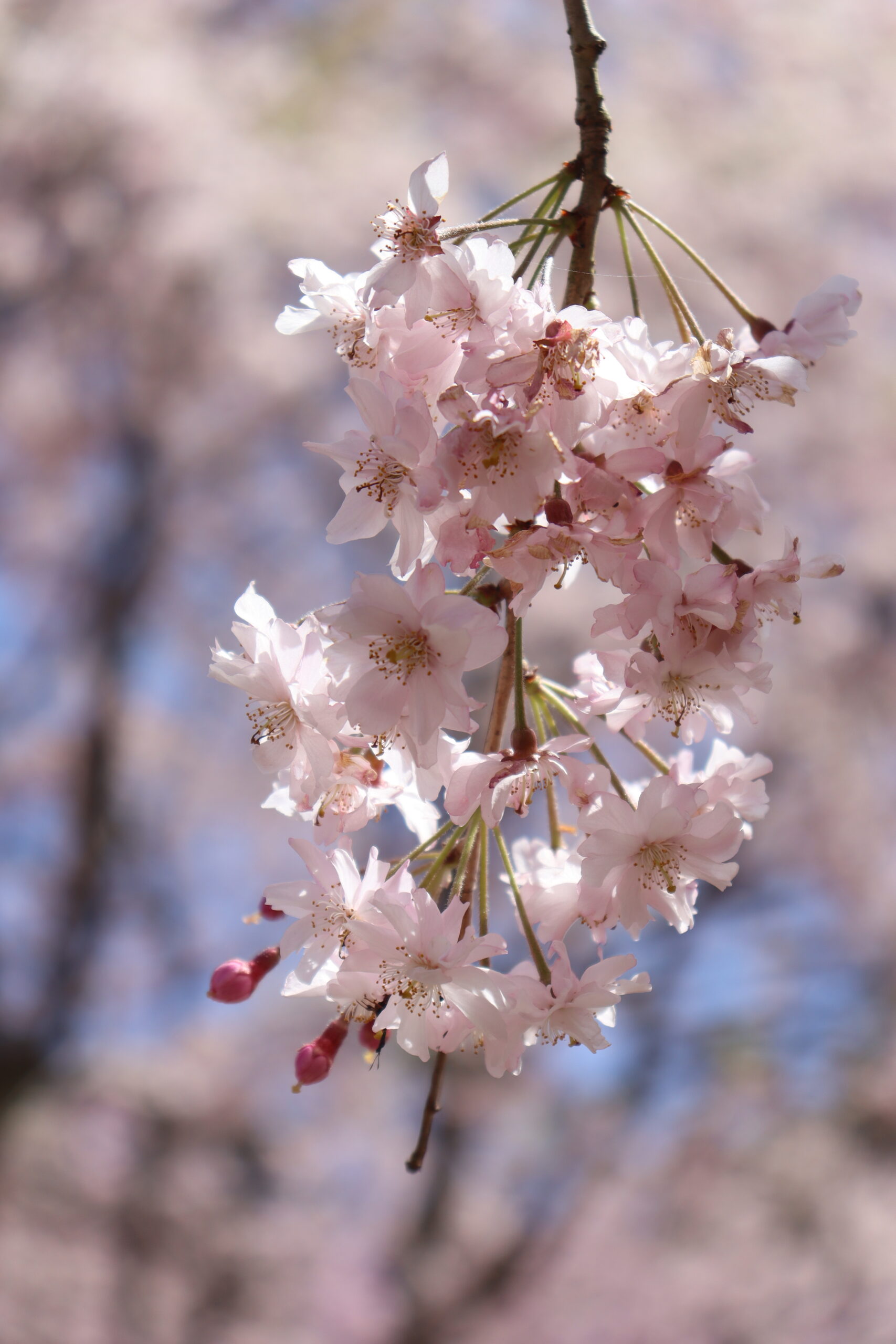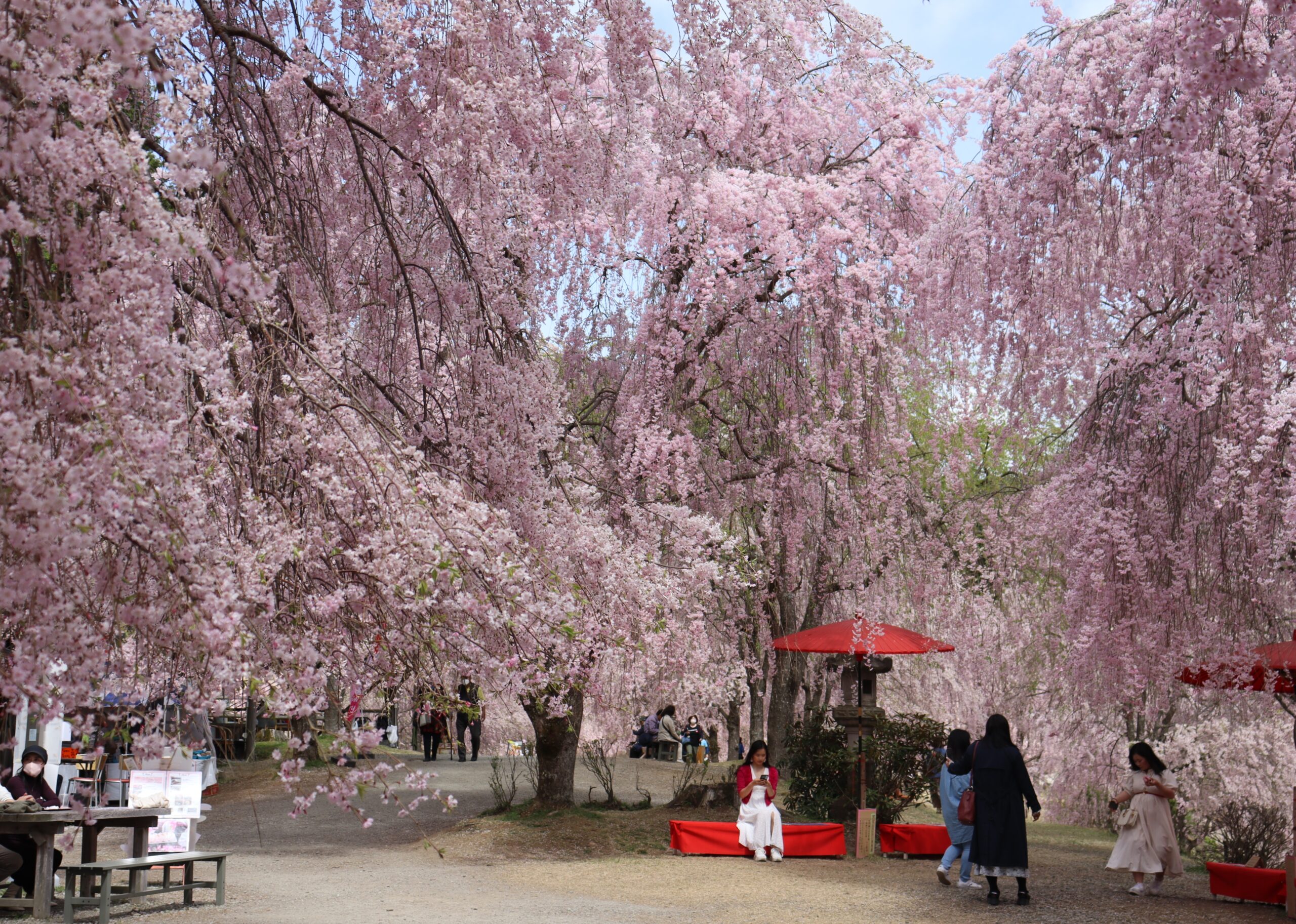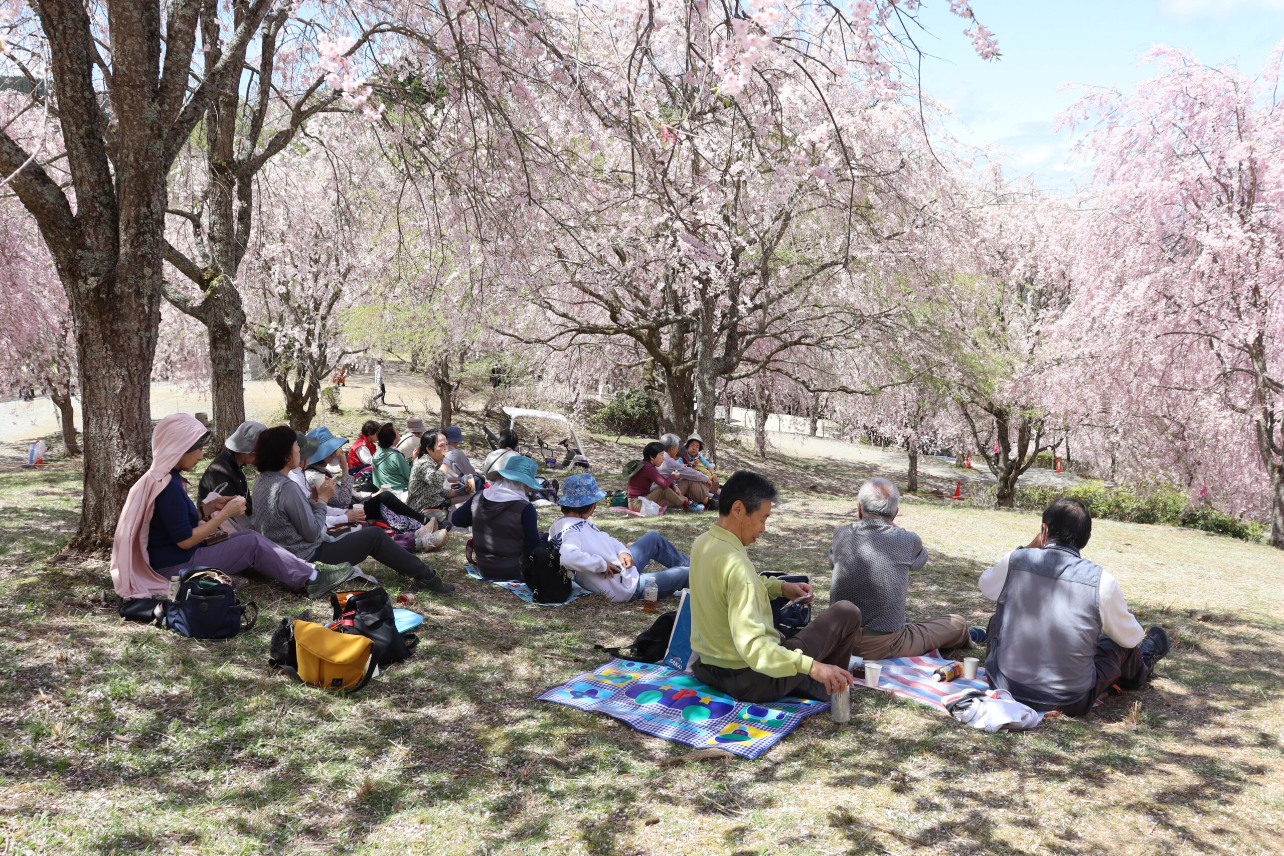 現地に到着した頃には予報も有り難く外れ、青空の見える素晴らしい しだれ桜の鑑賞会となりました。(A.N)