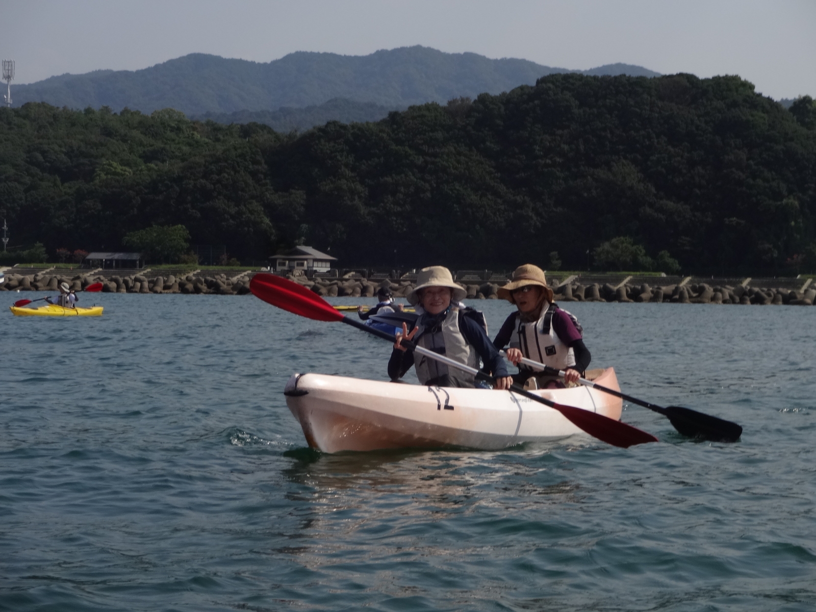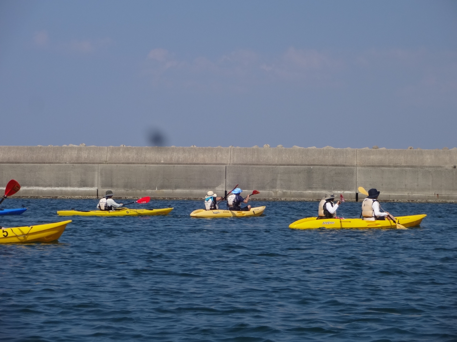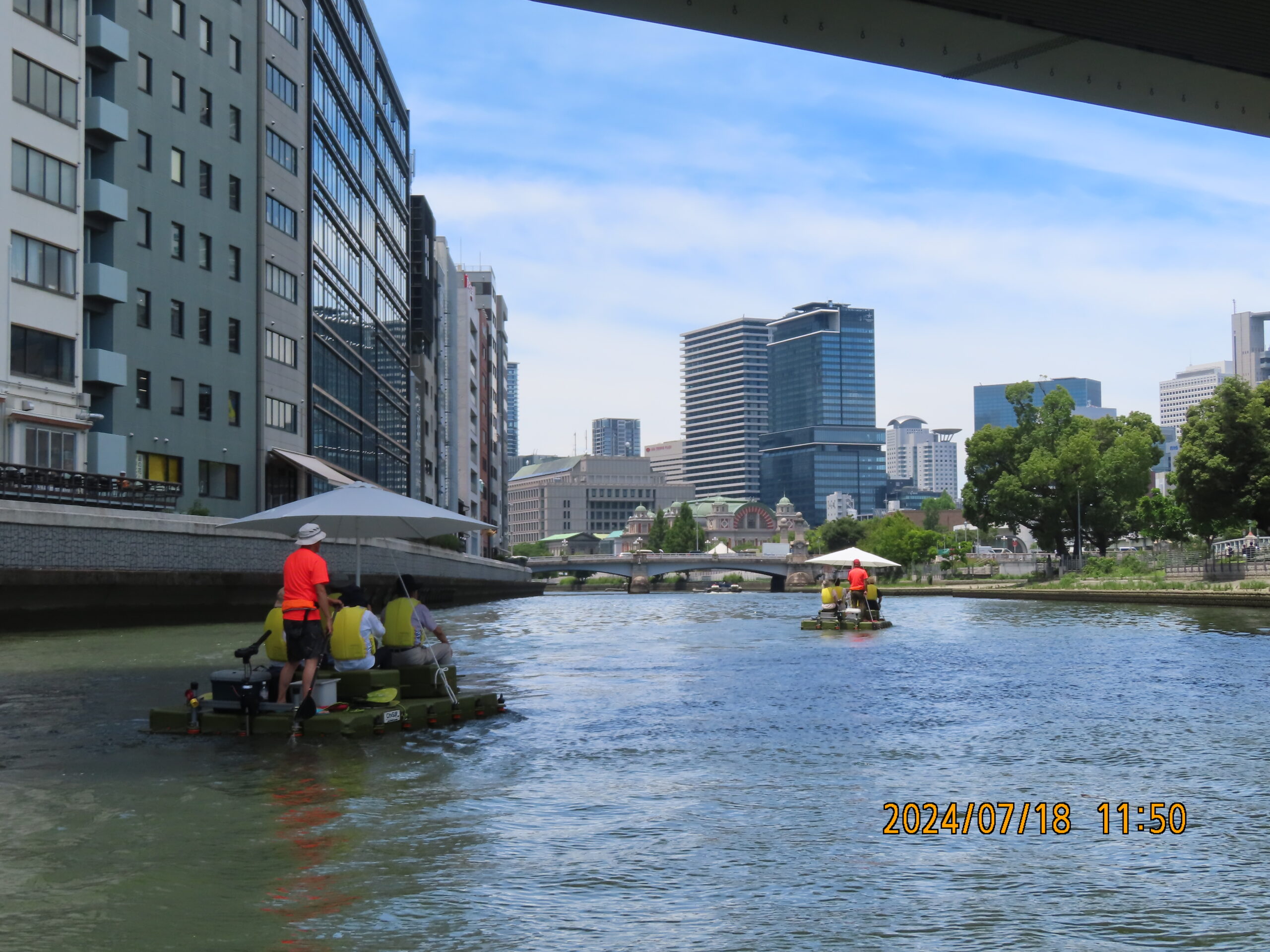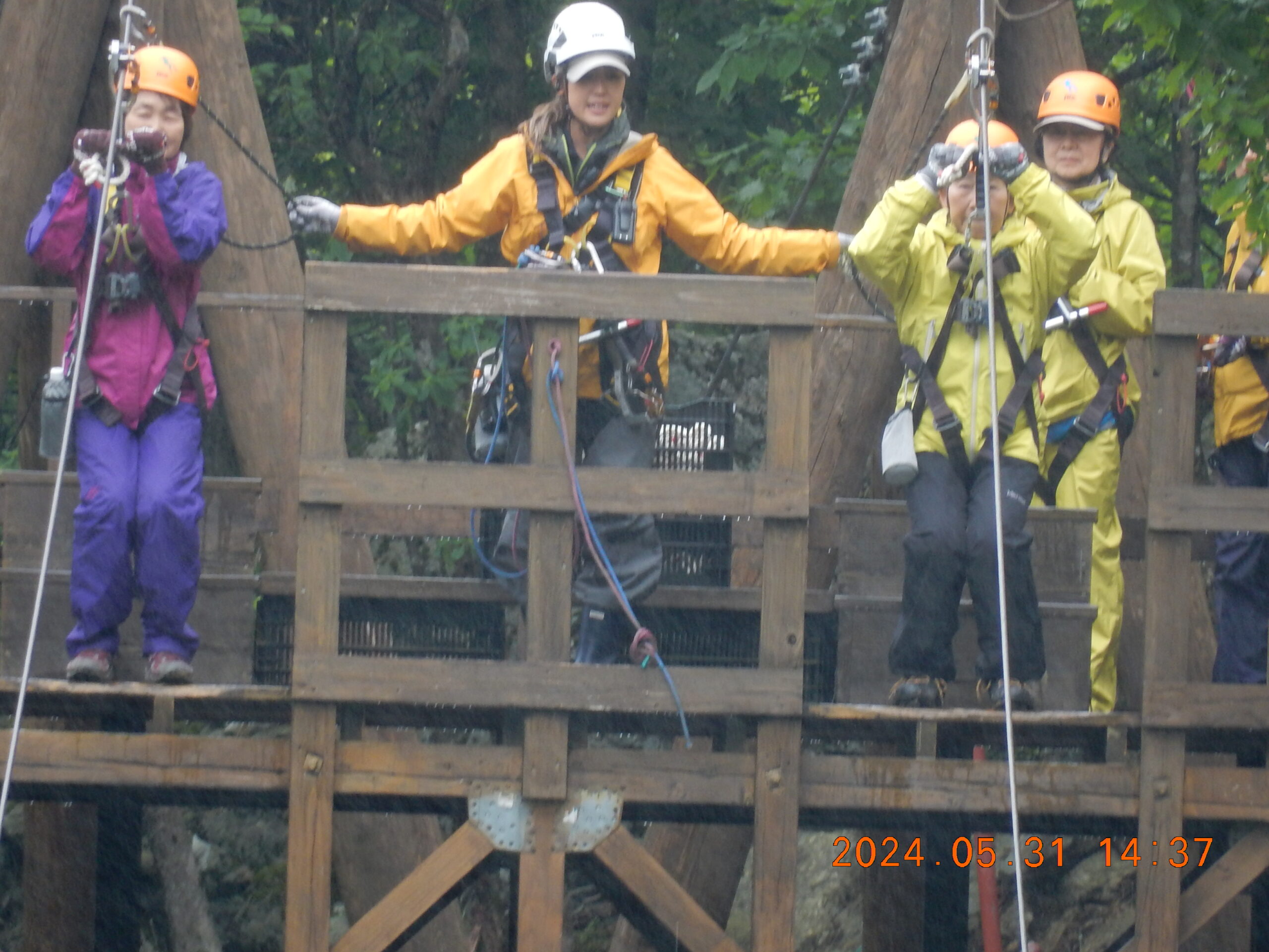 お天気を心配しましたが、幸いくもりの天気でそんなに寒くなかったが、JRが遅れて皆ばらばらの状態で京都駅に着き、嵯峨野線に乗り換えてなんとか馬堀駅までたどり着いた。イベント会社で着替えは、水着の上にウレタンウエットスーツ、ジャケット、風除けナイロンジャケット、ヘルメットで完全な安全装備です。危険予防の説明後、各自パドルを持って徒歩で保津川へ向かった。道中アウトバウンドの人たちの目を気にしつつ早速に着いた。幸い風も無く、3隻のゴムボートに分かれて出発し、約5キロ、2時間半のコースにある約20か所の激流に向かった。皆さん興味充分で最初の激流に突入にはワイワイキャアキャでしたが最後は余裕も出てきて、水しぶきで頭からずぶ濡れとなっても全く動じない、行程の半分を過ぎたところのゆるやかな所で川へ飛び込み泳げない人も、ラッコさん状態で浮かんだり泳いだり。途中では川下りの観光船とエールを交換しながら余裕も出てきたところで3メートルぐらいの岩場へ上がり、ほとんどの方が経験したことがないため決死の覚悟飛び込み、いい経験でした。帰り道は濡れた状態でそのままJRに一駅間乗るのも面白い体験です。その後の昼食はバイキングで盛り上がり、怪我無く、満足の1日でした。(S.H)