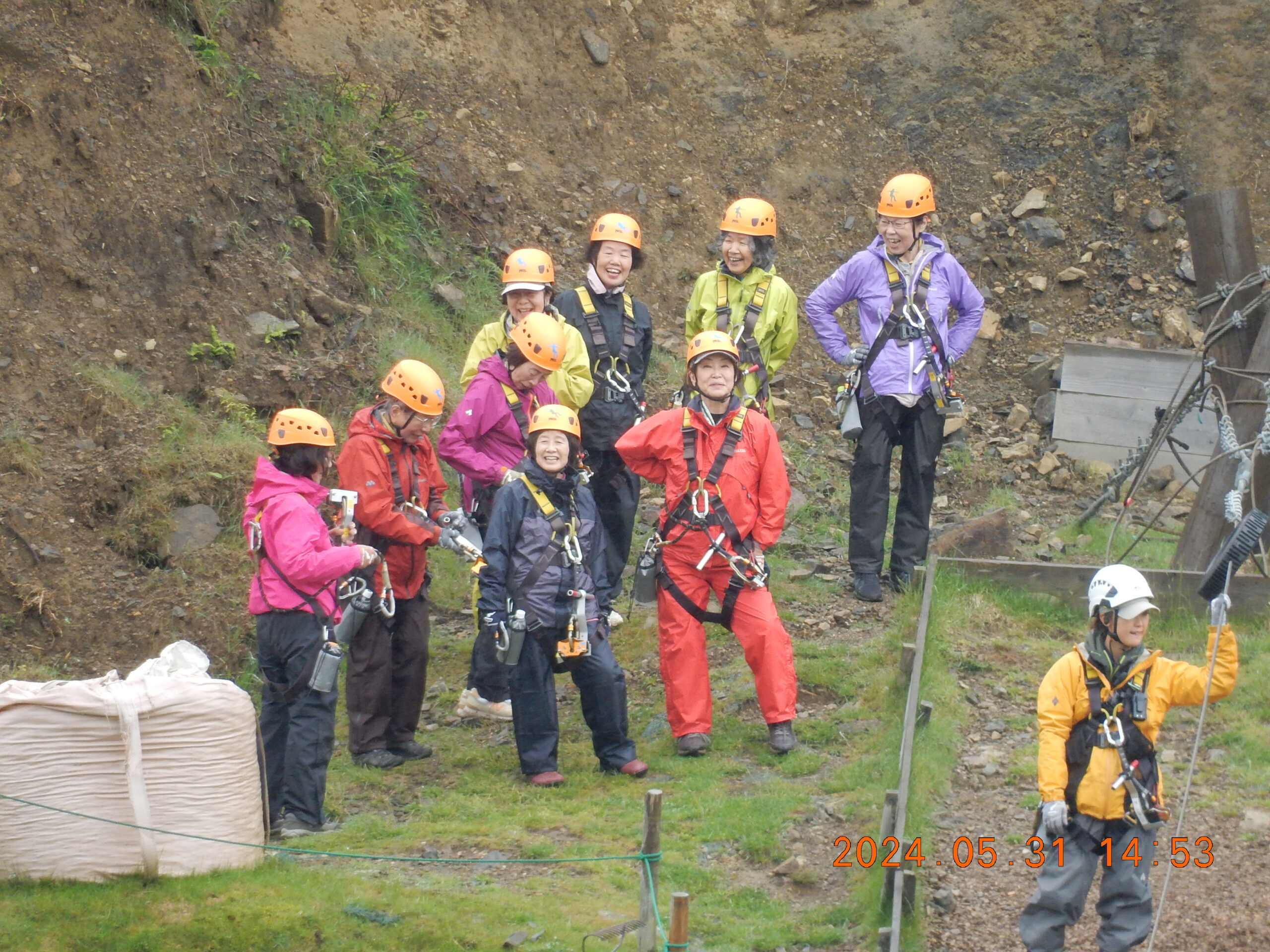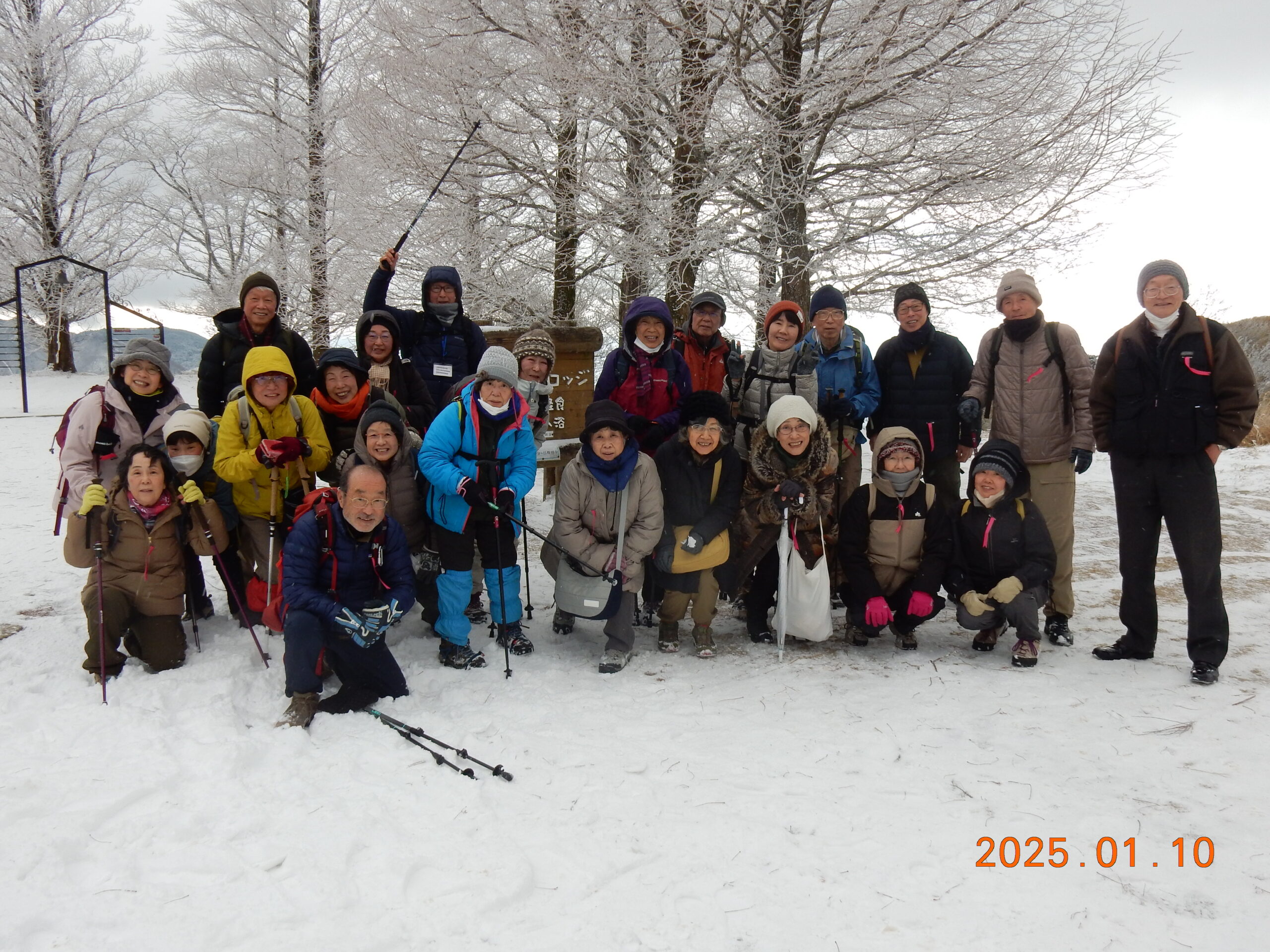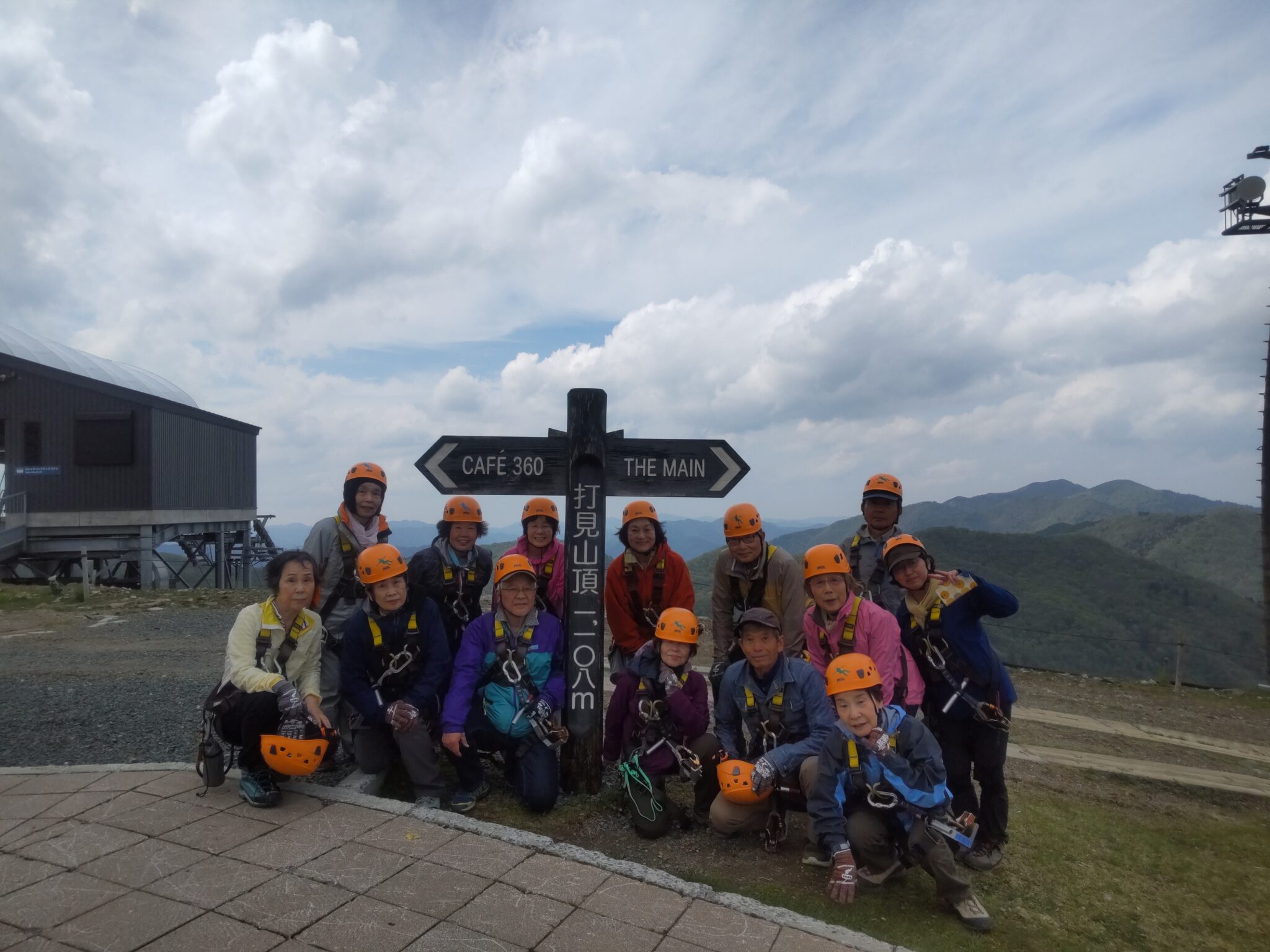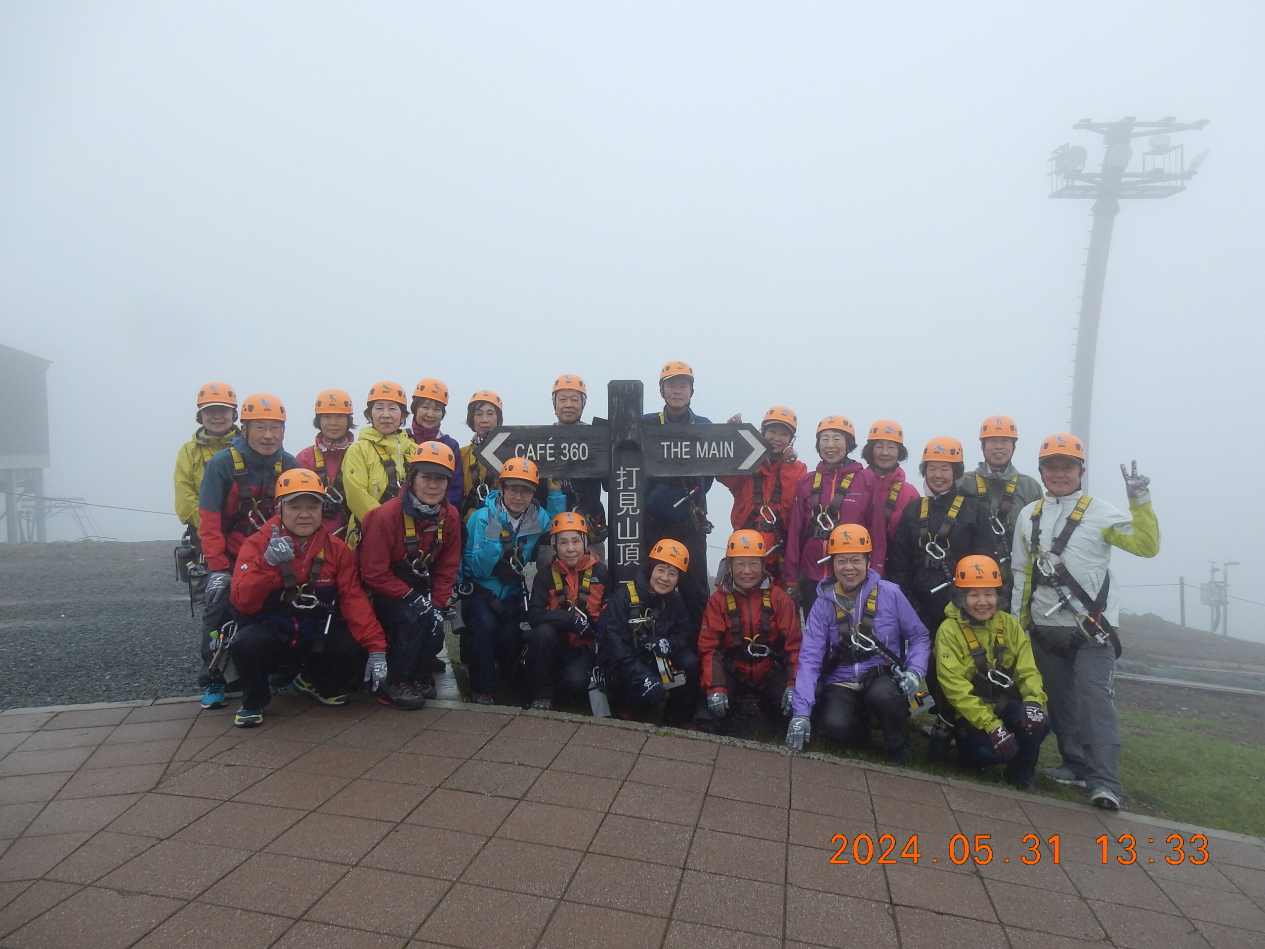 駐車場からは専用マイクロバスで上がってきますが、麓から歩いてきた健脚メンバー達と一緒に再び記念撮影