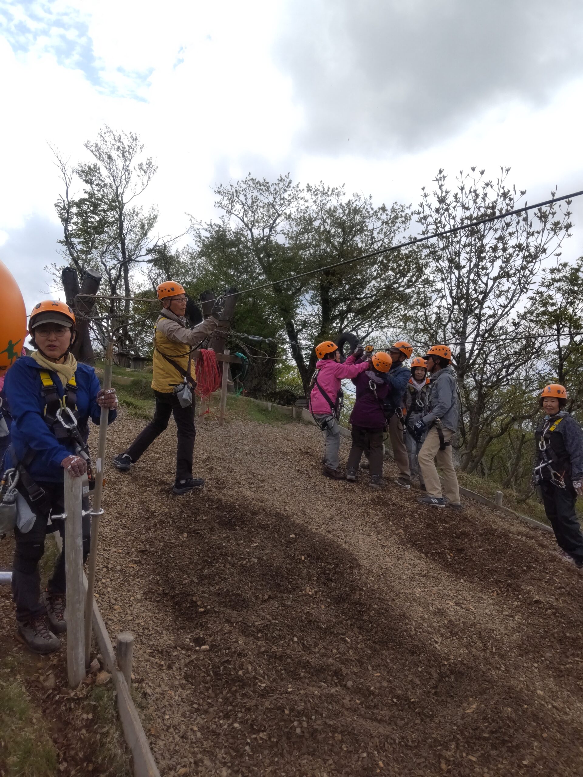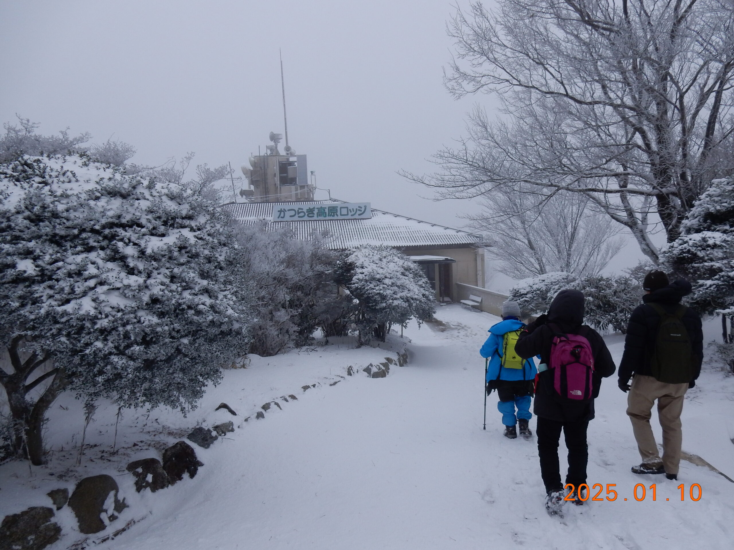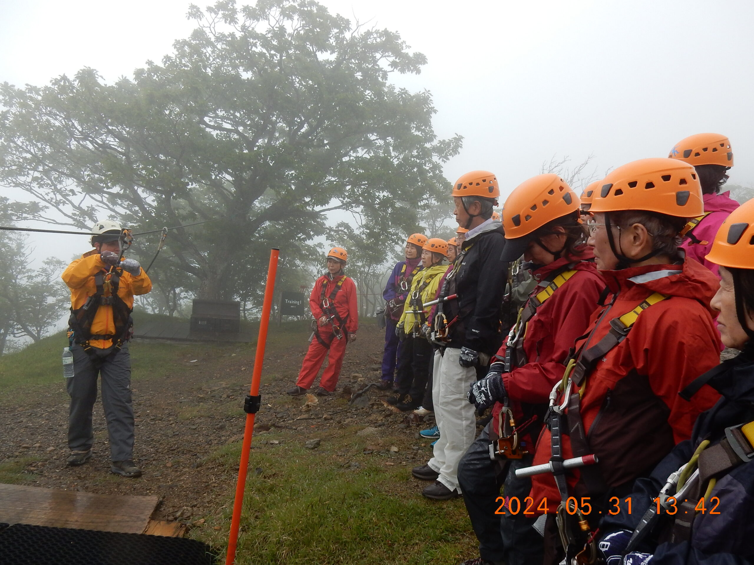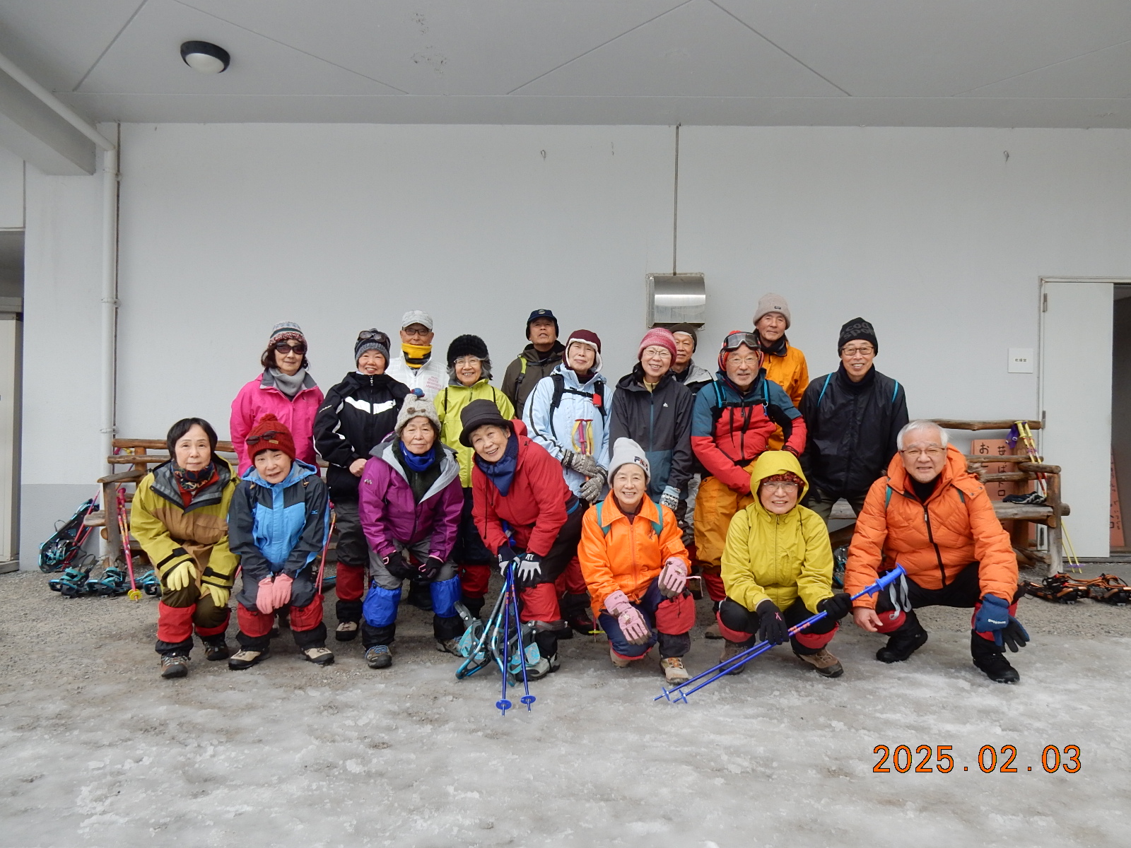 駐車場からは専用マイクロバスで上がってきますが、麓から歩いてきた健脚メンバー達と一緒に再び記念撮影