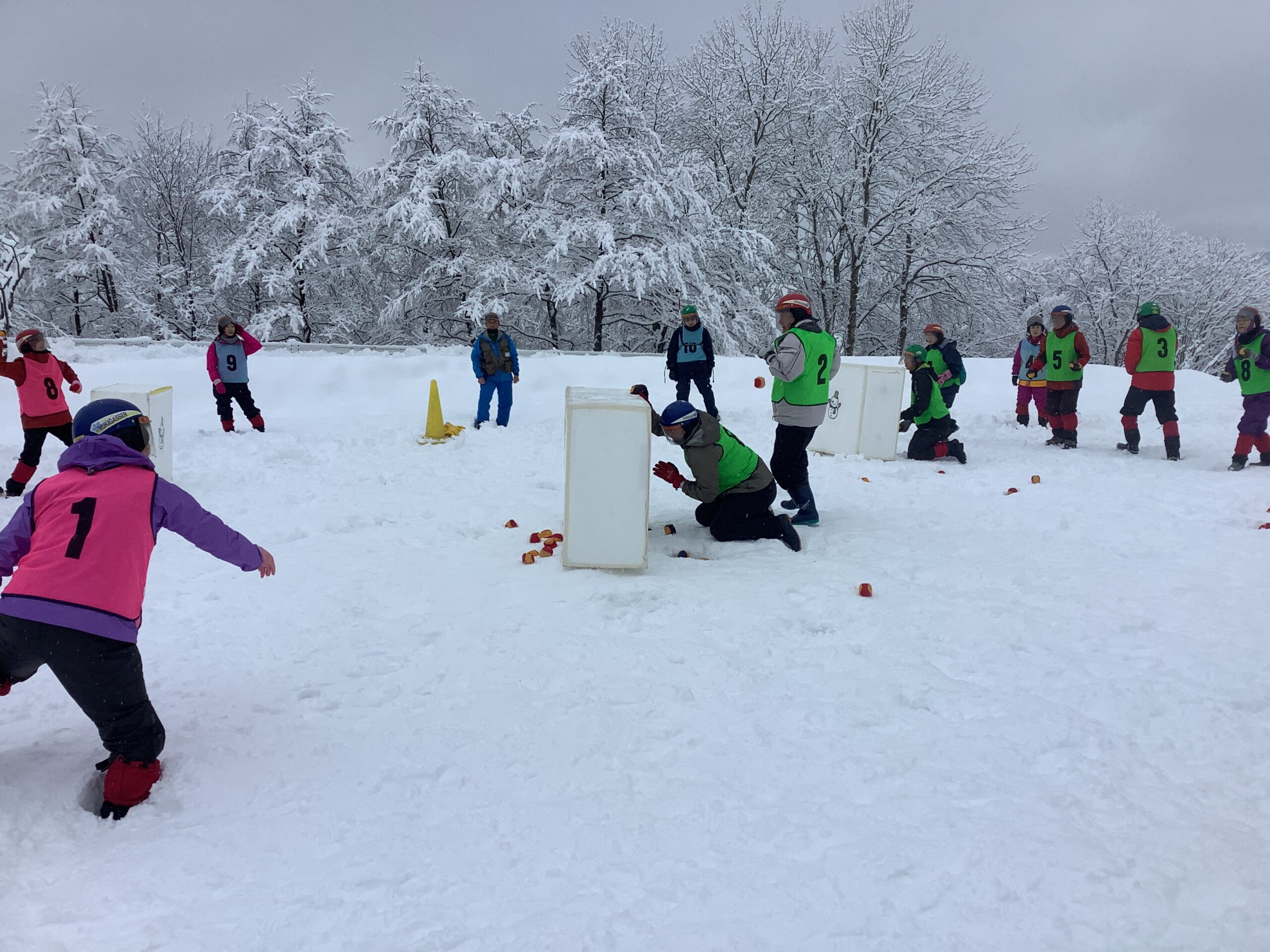 翌朝は昨晩で15cmの積雪があったようです。朝食後、早速に【雪合戦】の準備、先ずグランドに降り積もった雪を踏み固めてコート作りが、なにしろ膝まで雪があるので横一列になって大変でしたね。国際ルールの雪合戦が始まりました、雪の玉は危険のため布製のボールを使い、3チームで競い合いましたが、もう皆さんやる気いっぱいで真剣になり、大汗をかき、いやーこれはハマりました!こんなに面白いもんとは・・・。みな怪我無く終えて、こんなに楽しい企画をして頂いた、とちのき村の村長さん、スタッフに感謝です。(hiro)