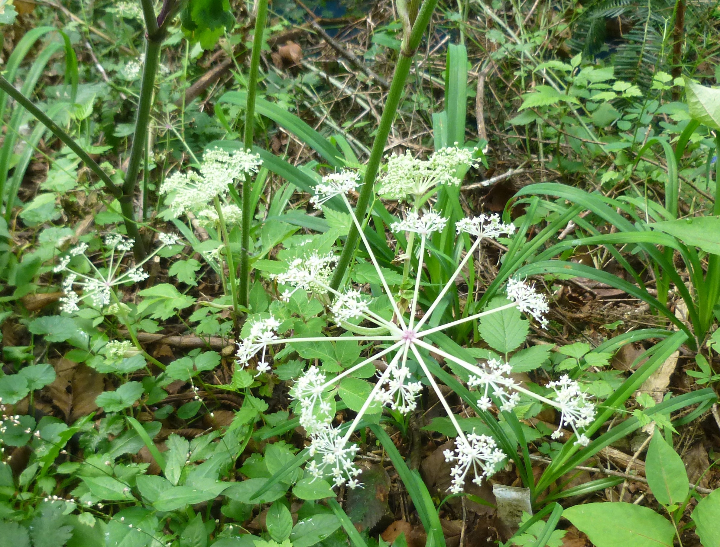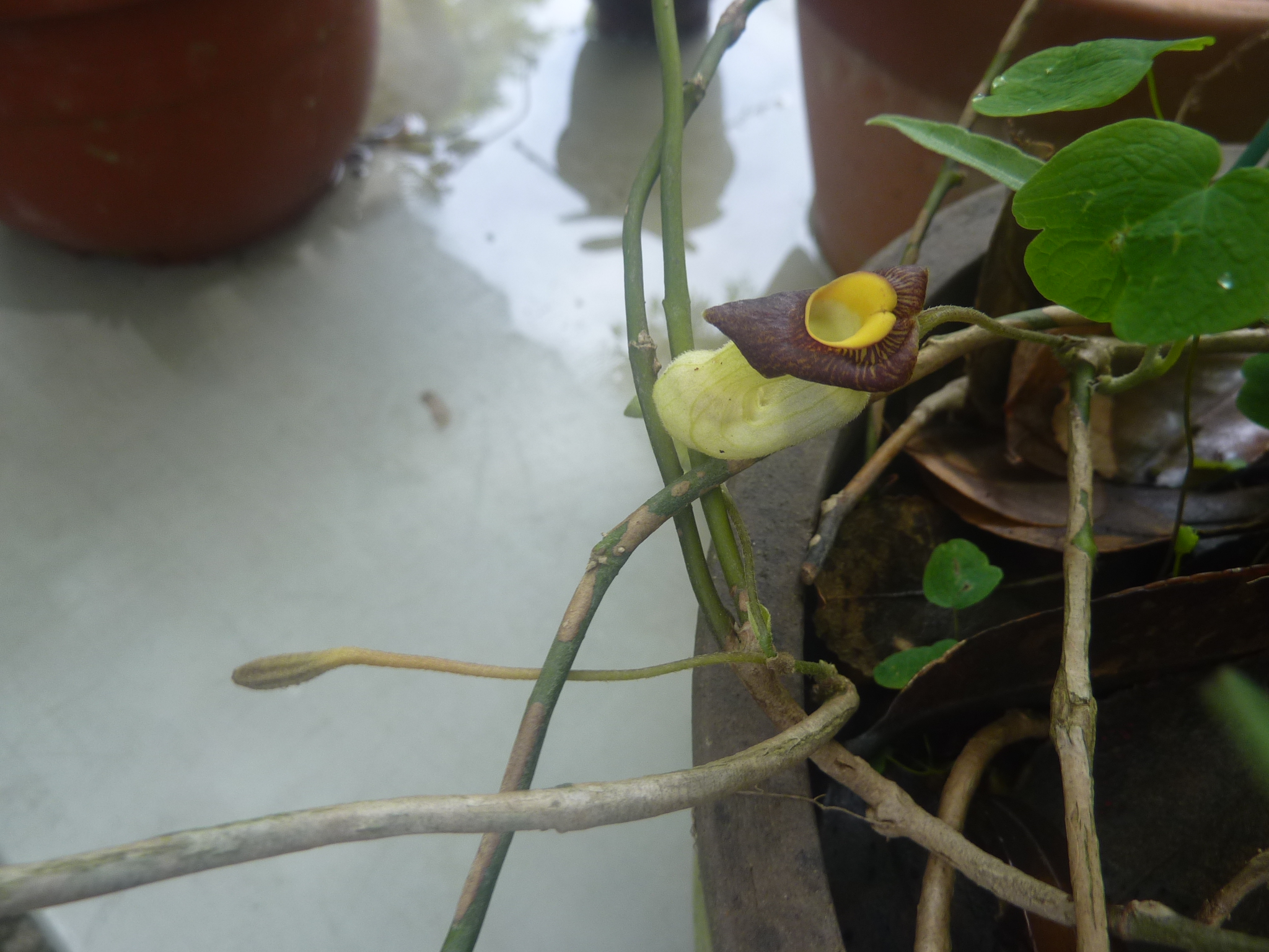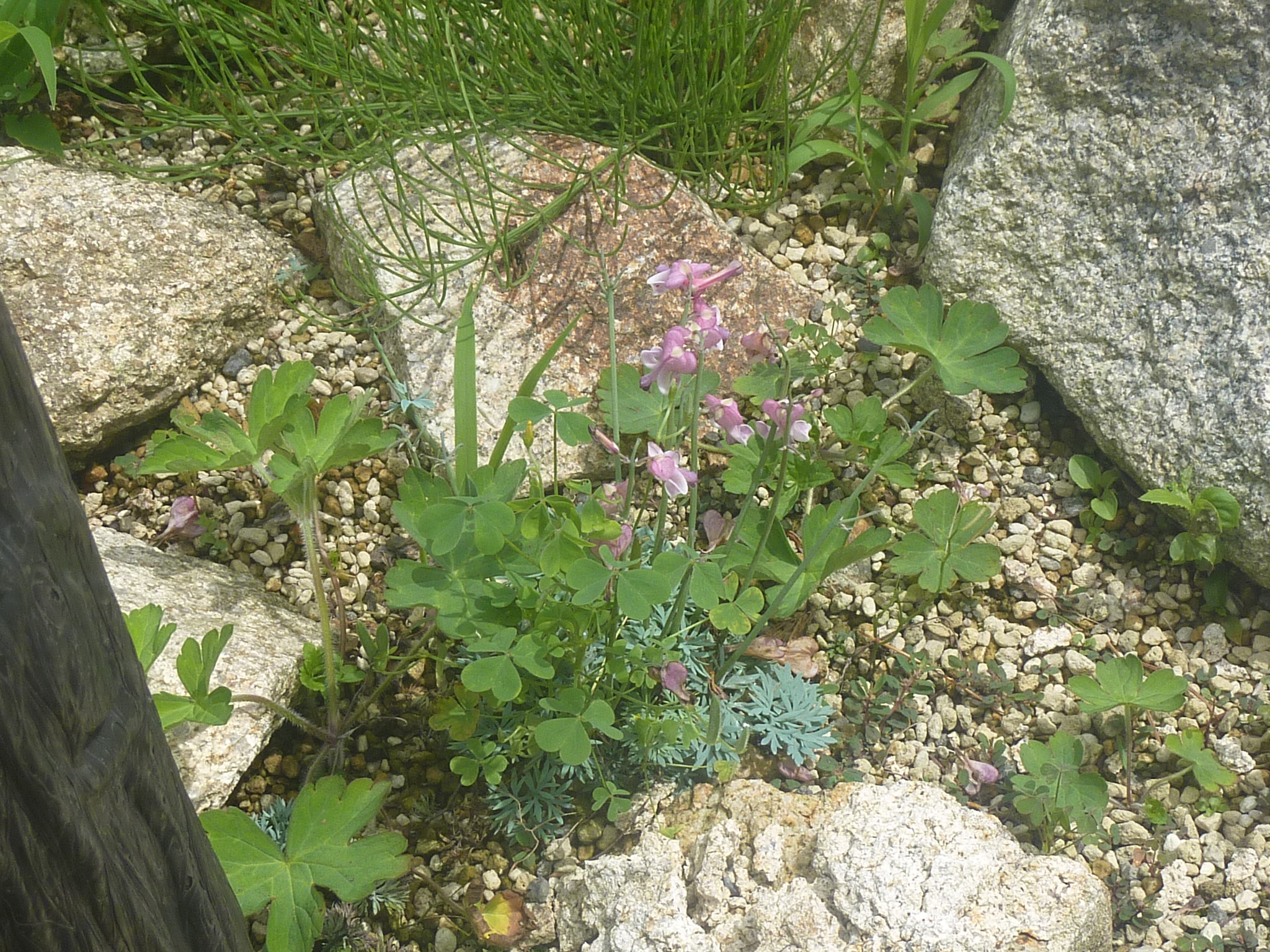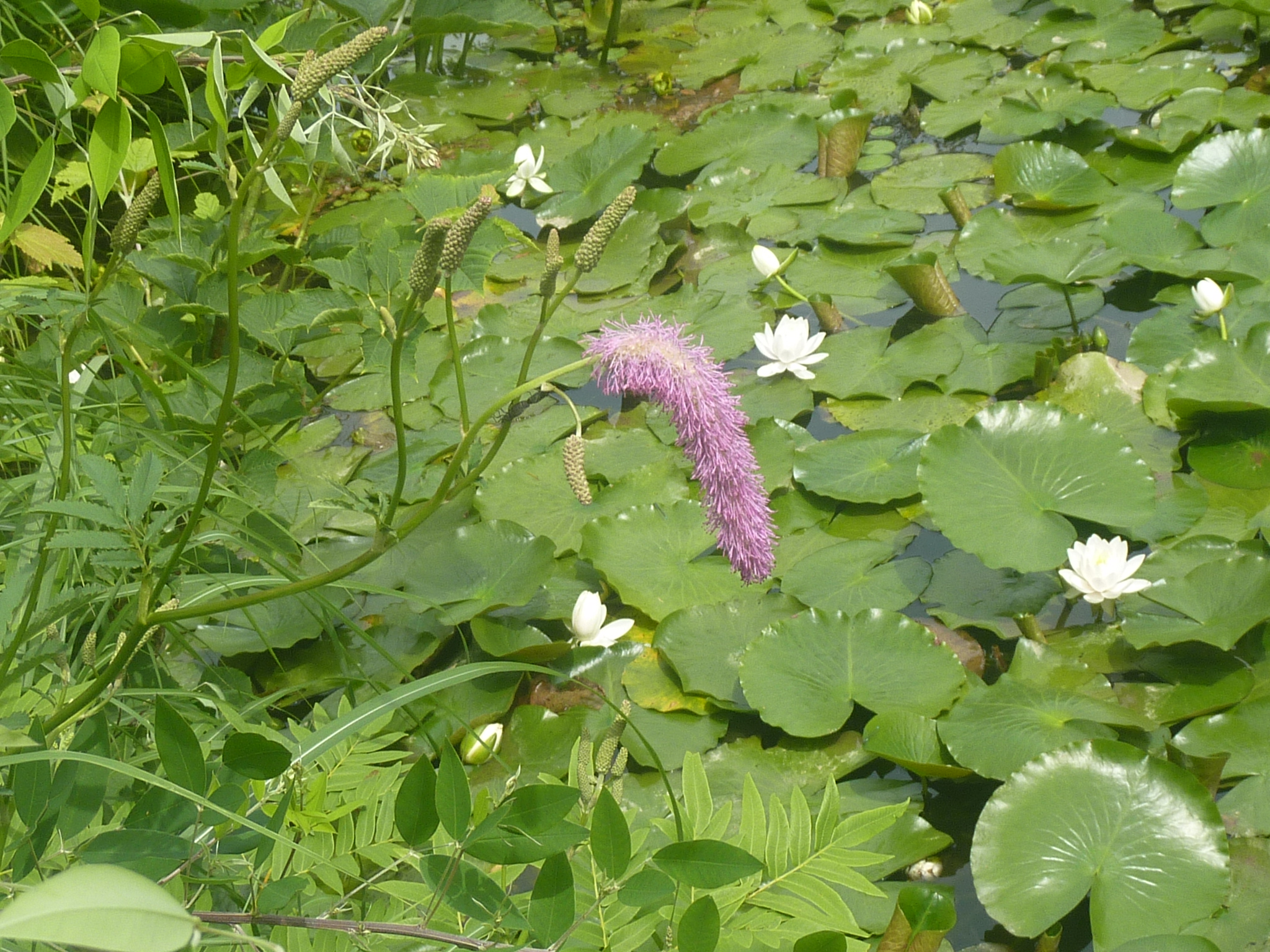 ガイドは入口付近に置かれた鉢植えのアリマウマノスズクサから始まった。ジャコウハゲハの食草であるこの植物の和名は牧野富太郎がつけたとのこと、ユニークな色と形の花が咲いている。サラサドウダンは花が終り実をつけていたが、垂れ下がった柄が最後の所で上に曲がる変わった実の付き方をしているとの説明に「確かに」。そして植物を次々に紹介していく。園内の通路に沿ってはノハナショウブ、カキラン、オカトラノオ、シライトソウやギボウシ、ホタルブクロ、キキョウ、ヤツシロソウ(キキョウ科)、ヒメユリ、クガイソウ、シモツケソウなどの今盛りの花と、花が終わったもの、これから咲くものなどが入り混じって植えられている。群生のキレンゲショウマやレンゲショウマは蕾をつけ始めており、オニユリ、ヤマトリカブト、カワミドリ(シソ科)は葉だけで花はまだ先のこと。 池ではコウホネやスイレンの花が咲く。昭和天皇に献上されたというエンコウソウの花を見たいと思ったが花はもうシーズンを終えていた。