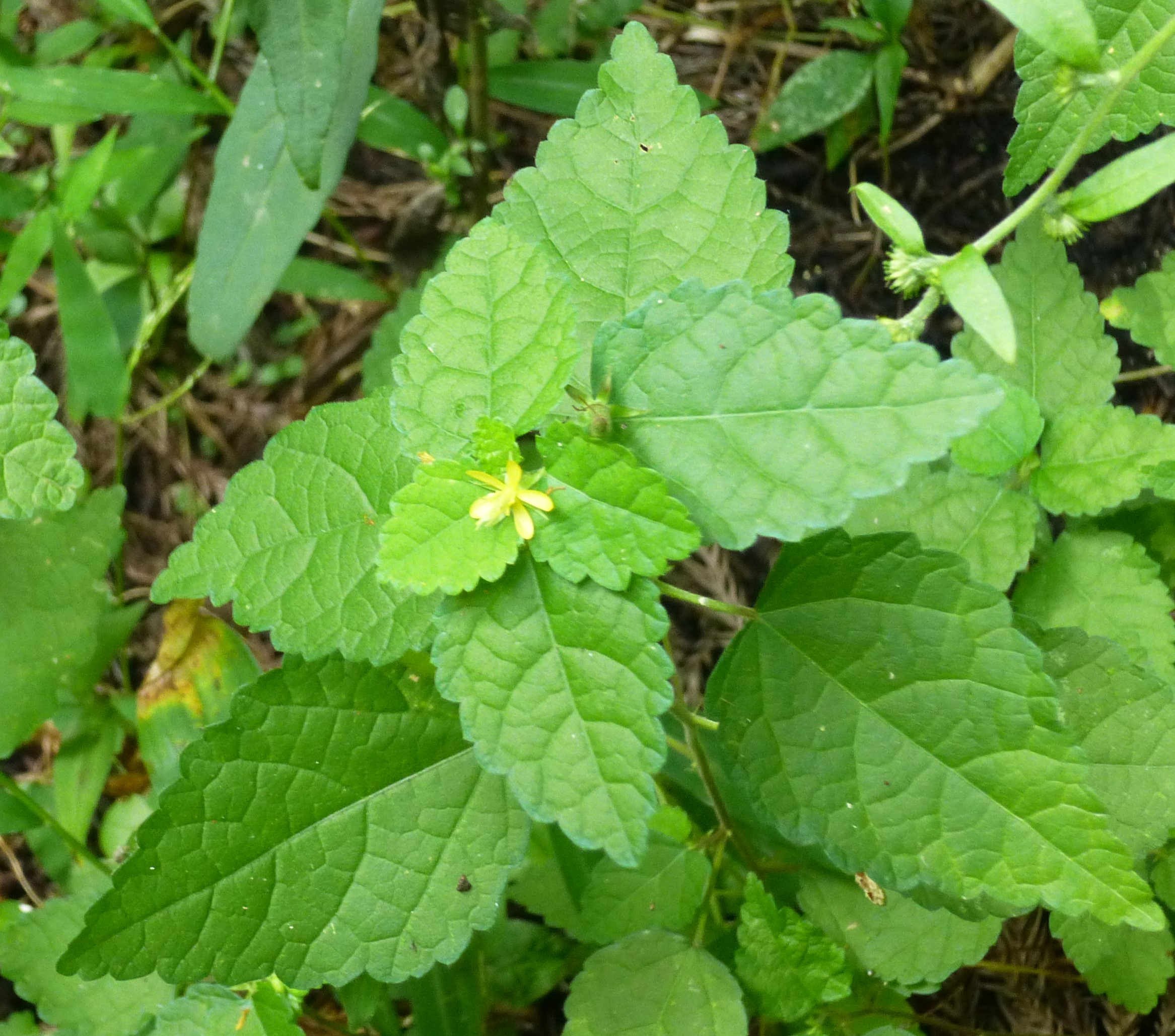 坂道を進んでいくとヌスビトハギ(果実をズボンにつけている方も)ボタンヅル(葉はボタンに似て、果実は卵型)渡り蝶のアサギマダラが好むヒヨドリバナ、花は淡黄色で蝶型をしているノササゲ、紫色の花のアキチョウジ、仮雄蕊の中央に雌蕊が見える黄色の花のカラスノゴマ、花は金平糖のようなミゾソバ(ウシノヒタイ)、南アメリカ原産で園芸種が野生化して環境省の生態系被害防止外来種リストになっているノハカタカラクサ(トキワツユクサ)、 畑で目立つ雑草で冠毛は白色、細く長いノボロギクなどを観察して昼食にする。