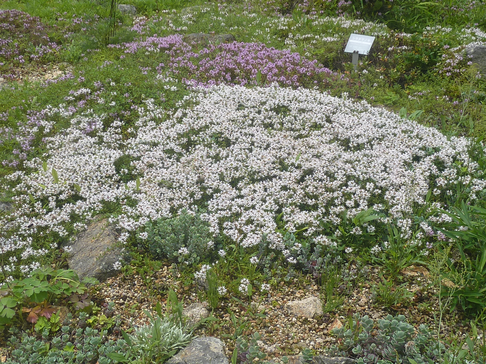 高山植物ではイブキジャコウ、シロバナイブキジャコウソウ、ニッコウキスゲの群生、バイケイソウ、タカネナデシコ、シナノナデシコ、コマクサ、シコタンハコベ、エゾルリソウ、チシマフウロ、エゾノツガザクラ、ヤマブキショウマ、ヒメシャジンなど全国各地、各高山の花が咲いていた。