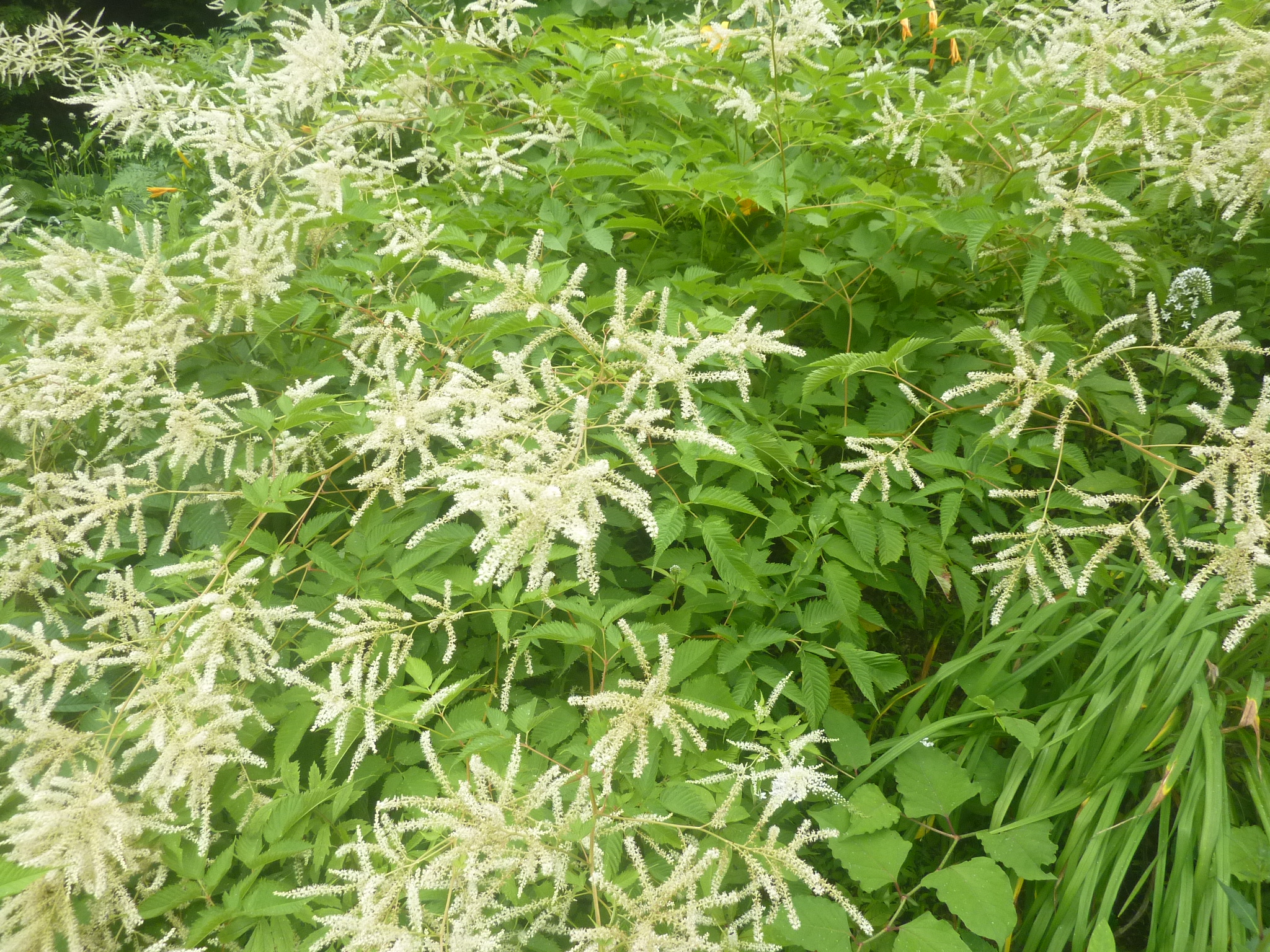 気になった植物名の一つが、園内の彼方此方で咲いているハンカイソウ、大型のキクの仲間で、どこからでもよく目立つ。ハンカイとは???早速検索・・「劉邦に仕えた武将の名前。豪壮に直立する姿からその名が」とあった。植物学者は歴史の知識も必要ですね。もう一つが、クガイソウのように穂先が垂れ下がって赤紫色の花、葉がワレモコウに似ている・・・名札も無く名前が???一緒にいたIさんの検索でトウウチソウ(バラ科、唐打草)と解る。しかしその花こそがその日探していたカライトソウ(唐糸草)の別名であったと後で知りました。(M.K)