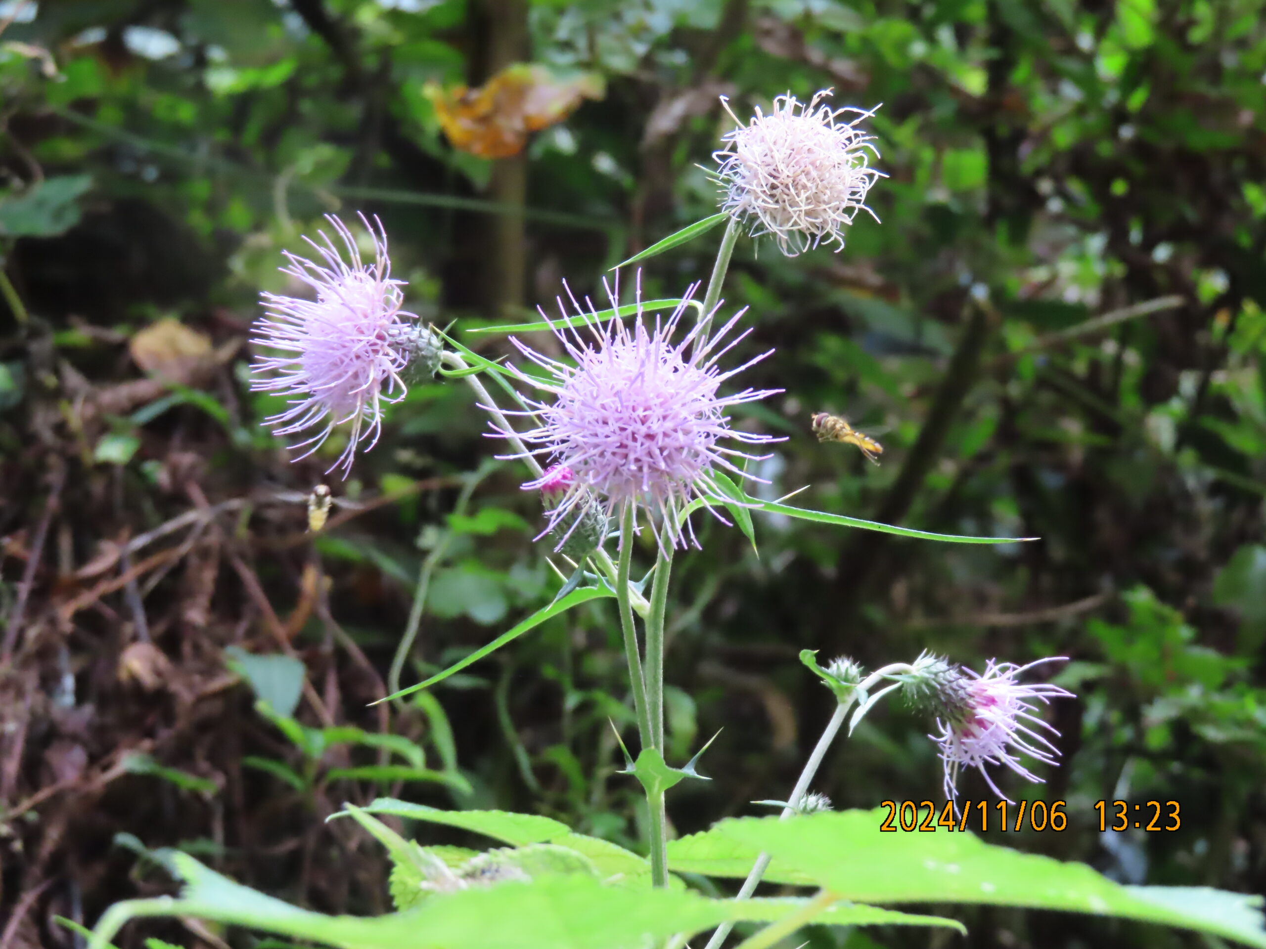 暑くも、寒くもない小春日和の絶好の天候。天見駅からヒヨドリバナや集落の軒下や生垣に生えるシュウカイドウ、ヒメツルソバ、ヤツデの花、ナンテンの赤い実を見ながら抜けると道路脇の草花は丁寧に刈り込まれていた。それでも周囲の風景は秋一色。遠くの緑を失った草や木は実をつけ、ススキの穂が揺れる。ボ谷に入ると、今年は秋が一段と早く訪れたことを実感。いつもの秋の草花も多くが終わっていて、既に実も落としているものも。キンミズヒキ、ミズヒキ、ダイコンソウ、ツリフネソウ、エゴマ、ミゾソバなどは実だけとなっていたが、ハナタデ、イヌタデ、アキノタムラソウ、ヤマハッカ、アメリカイヌホオズキ、キツネノマゴの花は元気に残っていた。