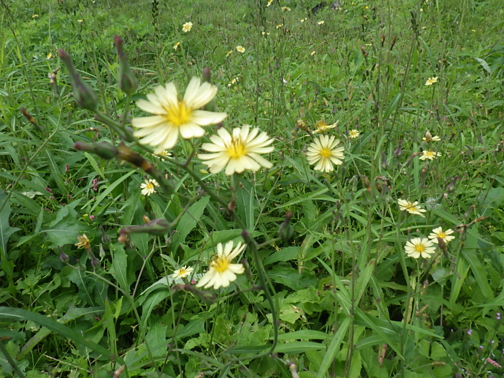 流谷に入ると周囲の田圃は稲のひこばえが大きく育っている。休耕田ではアキノノゲシが一面に咲き、畦ではハキダメギクやイネ科のメヒシバ、オヒシバ、チカラシバ、シマスズメノヒエ等がせめぎあう。中に早咲きのホトケノザやニオイスミレの花を見つける。近くに咲いているハルノノゲシは遅咲きなのか? シュウメイギクの咲き乱れる八幡神社で昼食。ここの大イチョウの黄葉はまだ始まっていなかった。