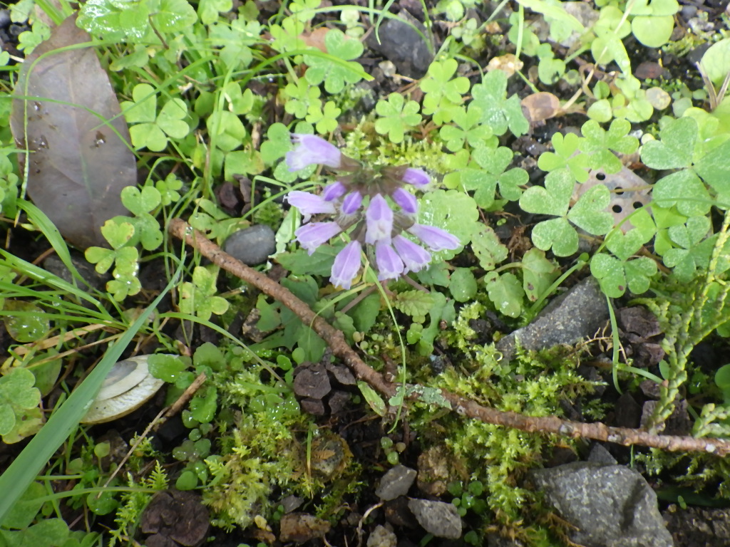 愛妻ランドを出発するころから、小雨が降り始める。「えっ!」昨日夕方の天気予報では「曇り後晴れ」で、雨は少しも頭になかったが・・・傘をさすほどでもなくなった時点でスタート。早速に登山口では当たり一面にキュウリグサ、ヒメオドリコソウ、コハコベ、ノゲシ、ヤワゲフウロウ、ヒメオドリコソウ、オランダミミナグサ、オオイヌノフグリ、ナズナ、セイヨウタンポポなどのかわいらしい春の草花が咲き誇っている。山道の沿道にはフラサバソウ、ミチタネツケバナ、ヒメウズ、クサイチゴの花が群生となって続く。スミレもタチツボスミレからシハイスミレそしてニオイタチツボスミレと変わっていく。ヤマザクラの多くは丁度満開、でもは花吹雪のもの、5分咲きといろいろ。途中ではウグイスカグラ、ヒサカキ、ムベ、アケビ、ナガバノモミジイチゴの花とカクレミノやホルトノキの大木を観察し「国見の森広場」へ、広場ではオオシマザクラ、ヤマザクラ、コブシの花が満開だ。小雨の中、ちょうど広場には全員が座れるほどの休憩所があり、早めのお花見昼食となる。