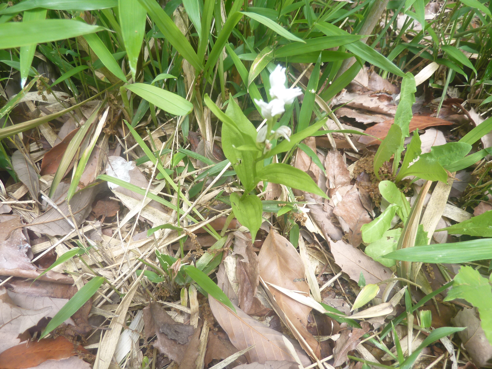 心地よい五月晴れの風に誘われてか33名という多数が陶器山に集合。先ずはここ陶器山をよく知っているKさんの案内で、ギンランの咲いている場所を目指し尾根道を北へ、道中の両側に続く木々の若葉がまぶしい。この時期に緑道を歩くのは本当に清々しく気持ち良い。お目当てのギンランは少し遅いのではと心配したが、まだまだ彼方此方に花を残していてくれた。しばらくの撮影タイムをとり、来た道を引き返す。途中にササユリを多く見かけたが、一部は早くも小さな蕾をつけていた。道路沿いにはニガナ、ブタクサ、セイヨウタンポポ、オニタビラコ、ノゲシなどキク科の黄色の草花やオヤブジラミの目立たない花も、モチツツジの花はもう終わりかけていた。ニガナを齧って「全然苦くないね」の反応に、調べてもらうと「苦菜という名前は、茎や葉を切ると白い苦みのある乳液が出ることからついたとされます。乳液というと毒のように思いがちですが、苦いだけで、食用や煎じて健胃や鼻づまりの民間薬として使われてきました」とのこと。尾根道の樹木ではコナラが目立ち、木本のナガバノコウヤボウキは道沿いに最後まで見られた。