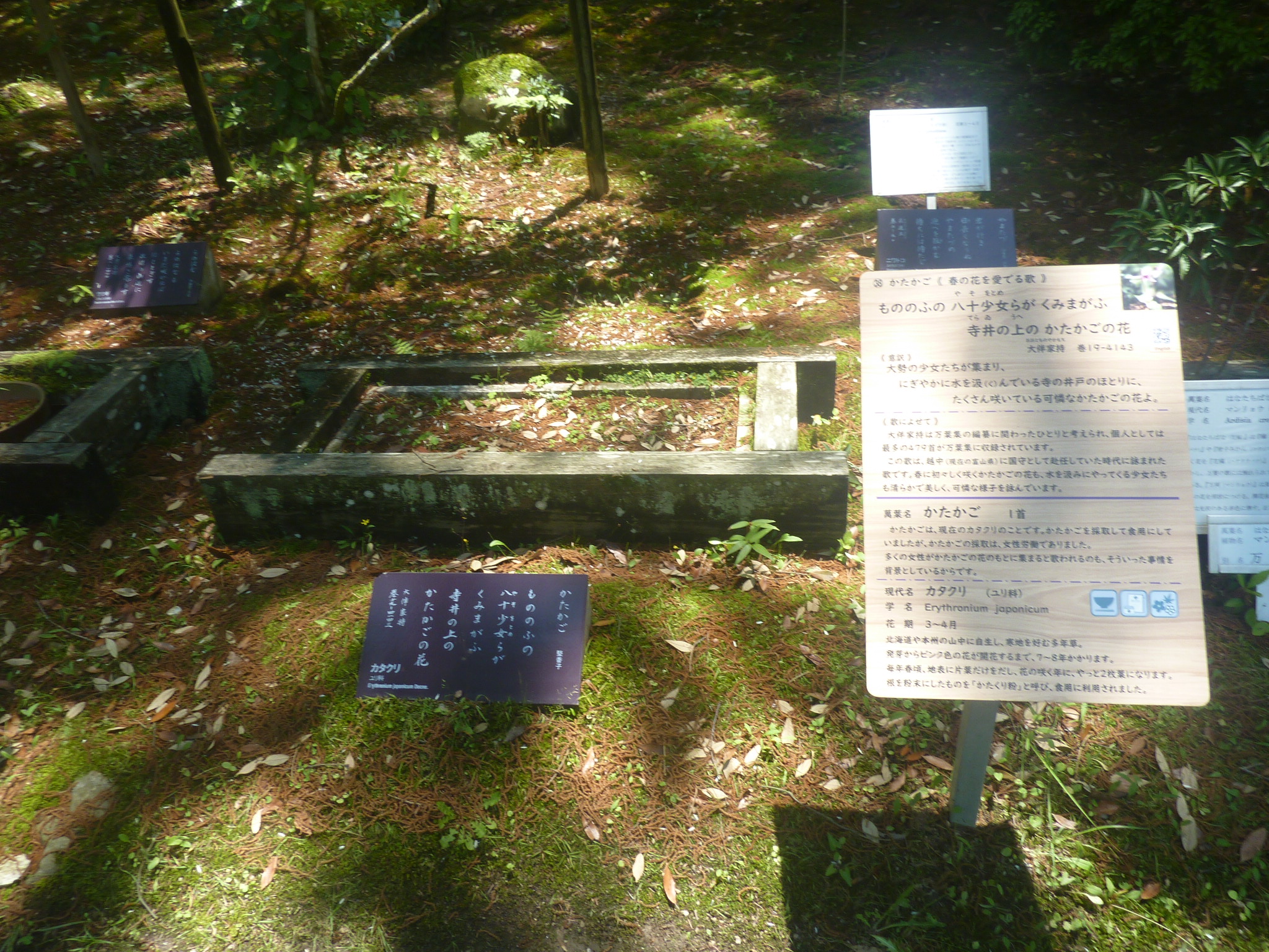 現代植物名はカタクリ、カタクリはかたかごの変化したもの、現在でも和歌俳句の世界では、かたかごという名前でよく詠われていますが、萬葉歌では「もののふの、八十(やそ)娘子(をとめ)らが、汲み乱(まが)ふ、寺井(てらゐ)の上の、堅香子(かたかご)の花」大伴家持の歌1首のみ。古代では余り知られていなかった花のようで、他の花という説も。