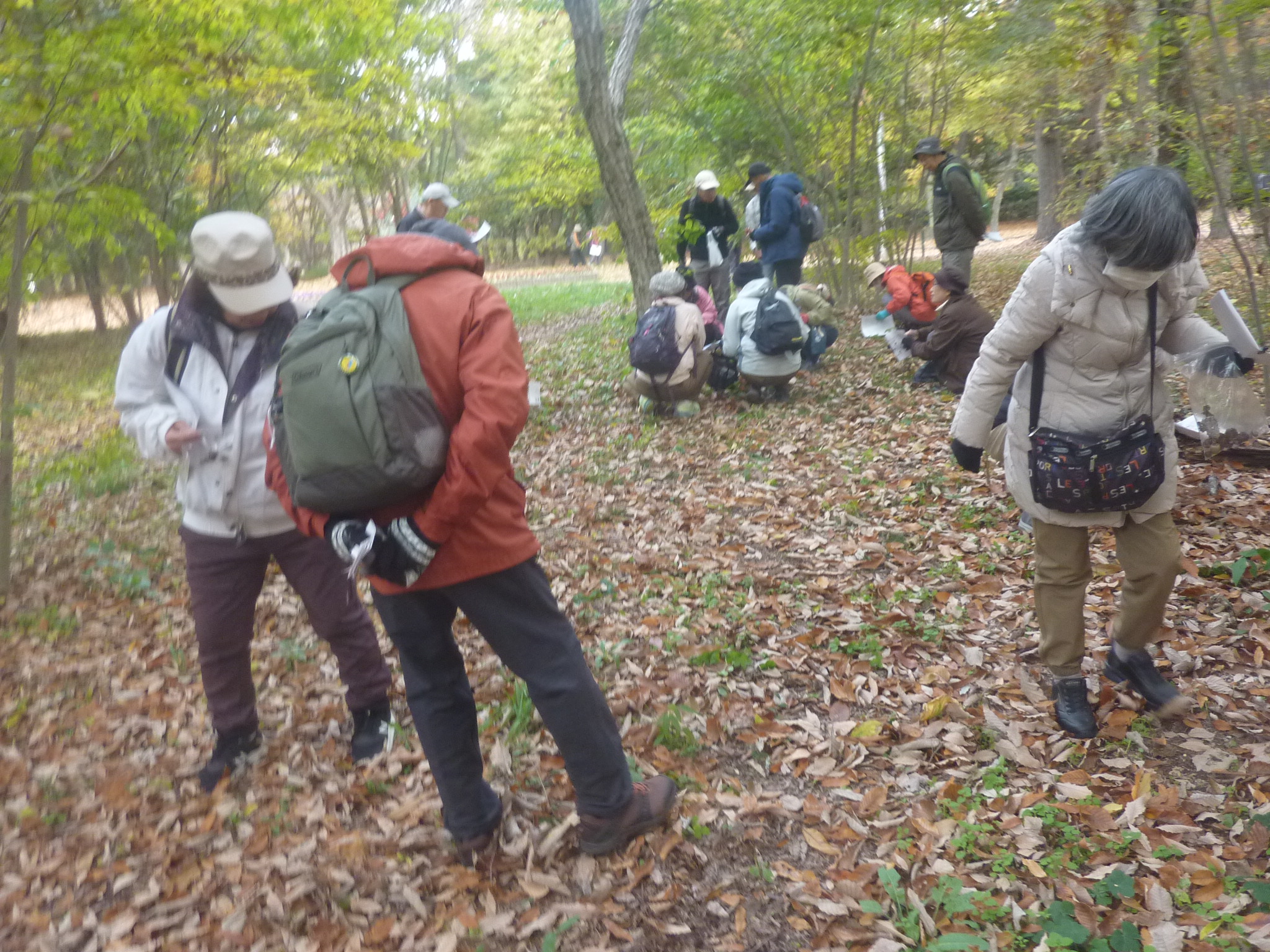 最後に名前合わせをしたがリストからは樹に付けられている名札も含めて78種を確認。リスト外のものも10種を超えた。天気にも恵まれ晩秋の公園を一日のんびりと楽しむことができた。(文・写真 Y.M)