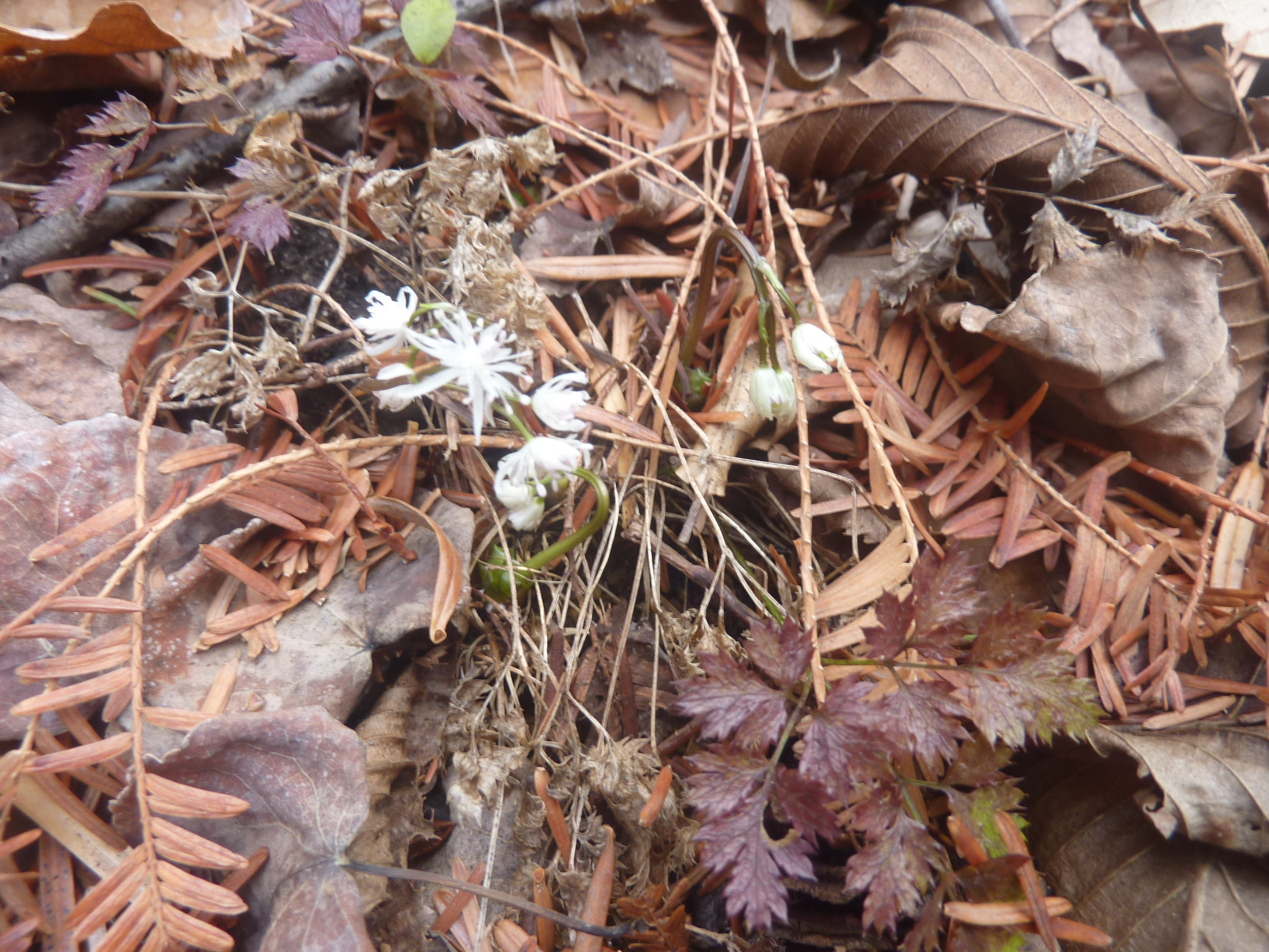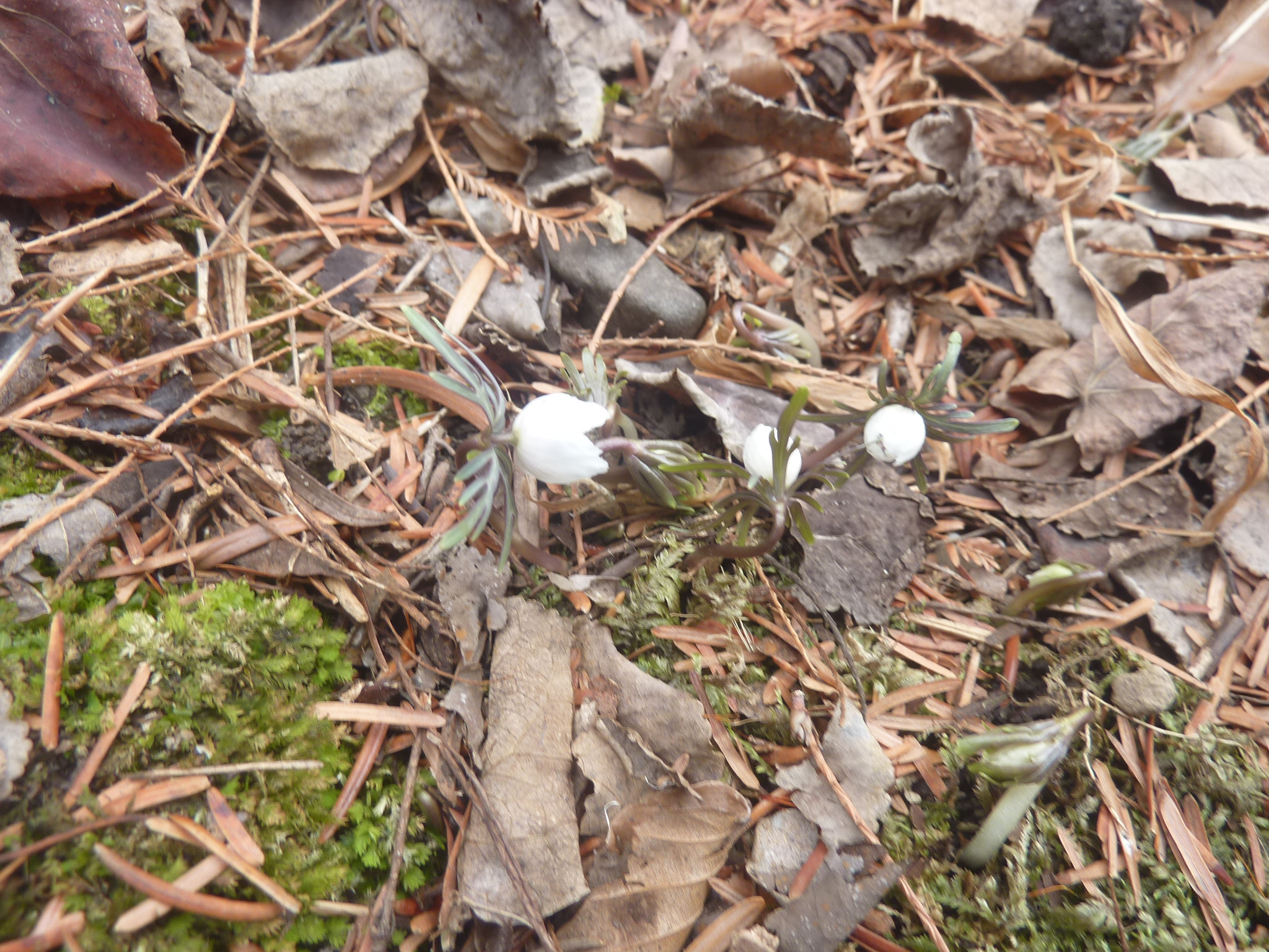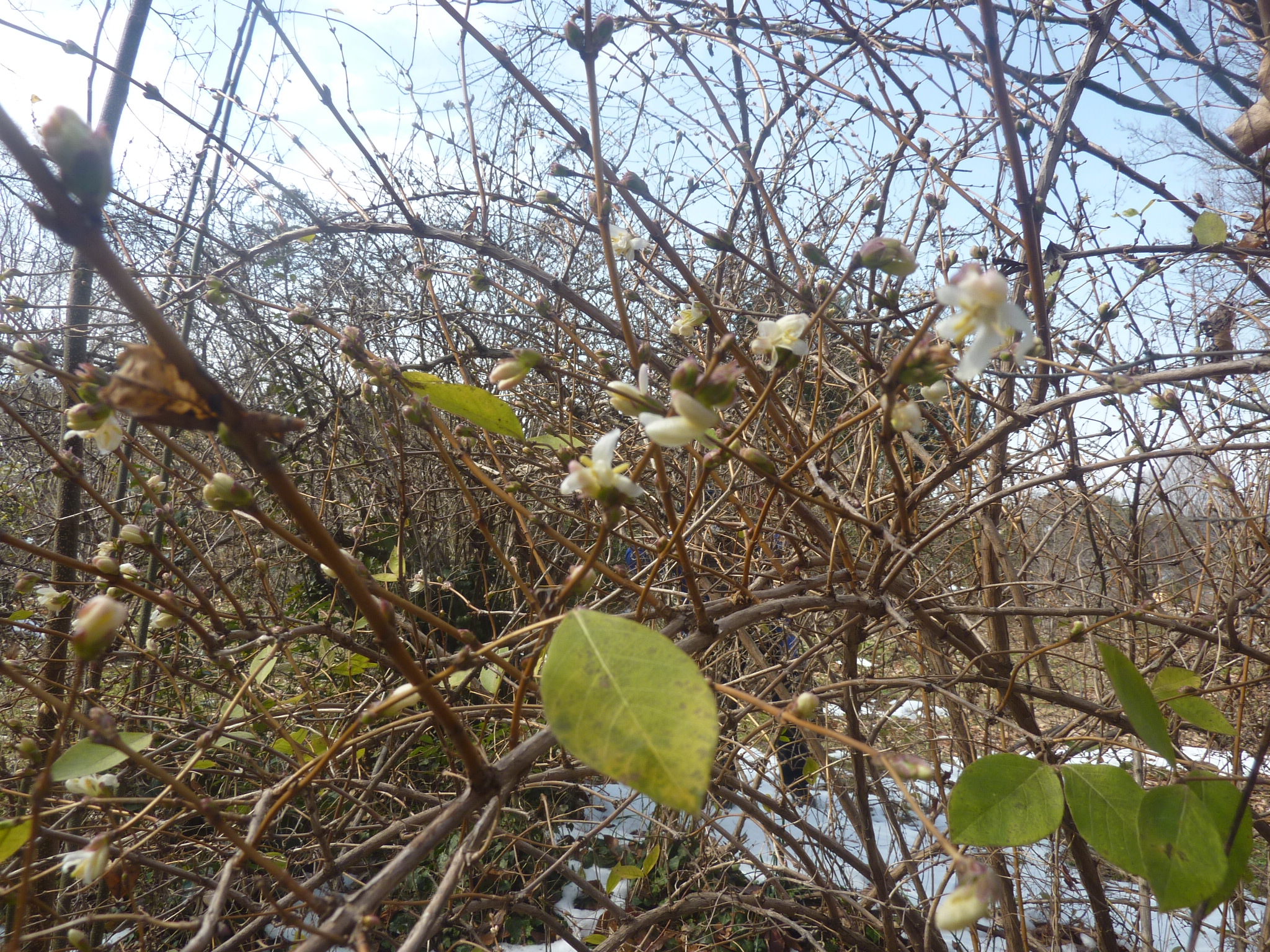 数輪の花が咲いたセツブンソウ(節分草)、バイカオウレン、コセリバオウレンの前では、綺麗ね~、可愛いね~の声が上がりました。続いて、春らしさを求めて、オオカメノキの冬芽、ミズバショウの芽、一輪咲いたウグイスカグラなどを観察。モミジのコーナーではイロハモミジ、オオモミジの芽の形の違いを観察しました。最後にロニケラレモンビューティーの花の爽やかな匂いを鑑賞して午前の部を終えました。
