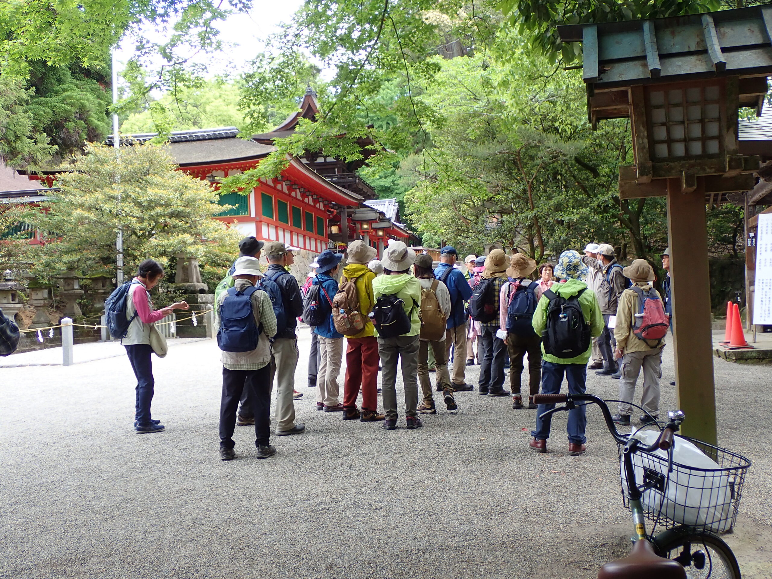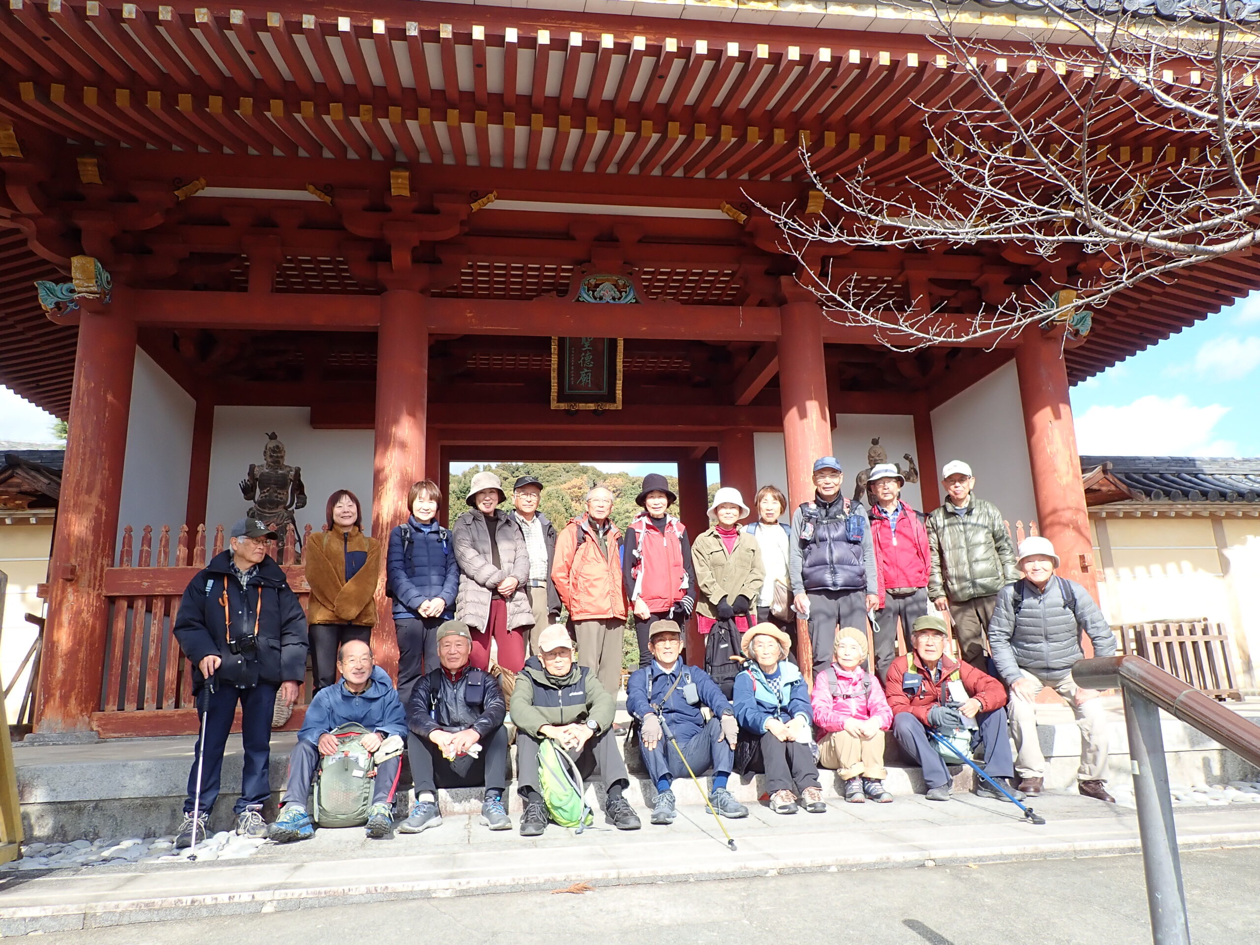 今回は参加者30名が天理駅からスタートして石上神宮、白川ダム、弘仁寺を巡りゴールの山村町バス停まで北・山の辺の道コース②の逆コース約12キロのウォーキングである。