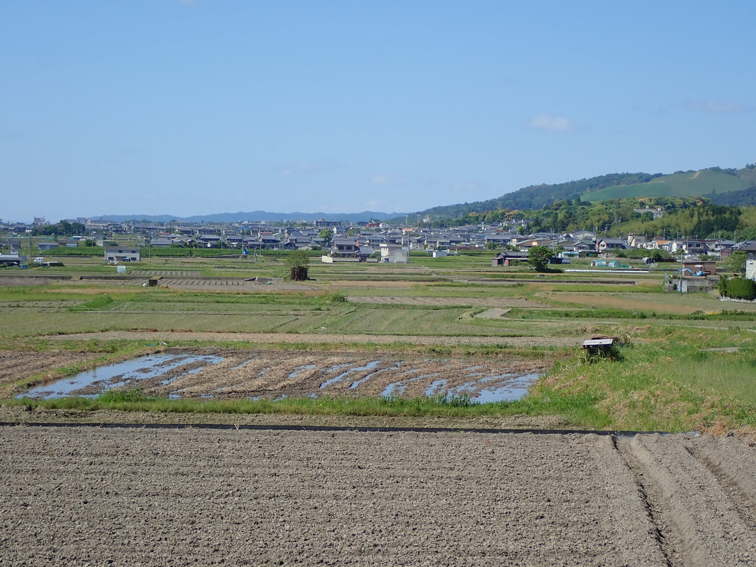 集合場所の金剛駅前から狭山池の横を通り、陶器山・天野街道から終点の金剛寺まで12キロを歩きました。天野街道沿いは果物作りが盛んで、葡萄・桃などが栽培されていました。また田植え作業をしている人がいたり、既に早苗が植わっている田圃など長閑な風景が広がっていました。青賀原神社で休憩した後は、奈良時代に行基が開創し、弘法大師が密教の修行をしたと伝えられる天野山金剛寺までアスファルトの道路をひたすら歩きました。(暑かった、、、。)