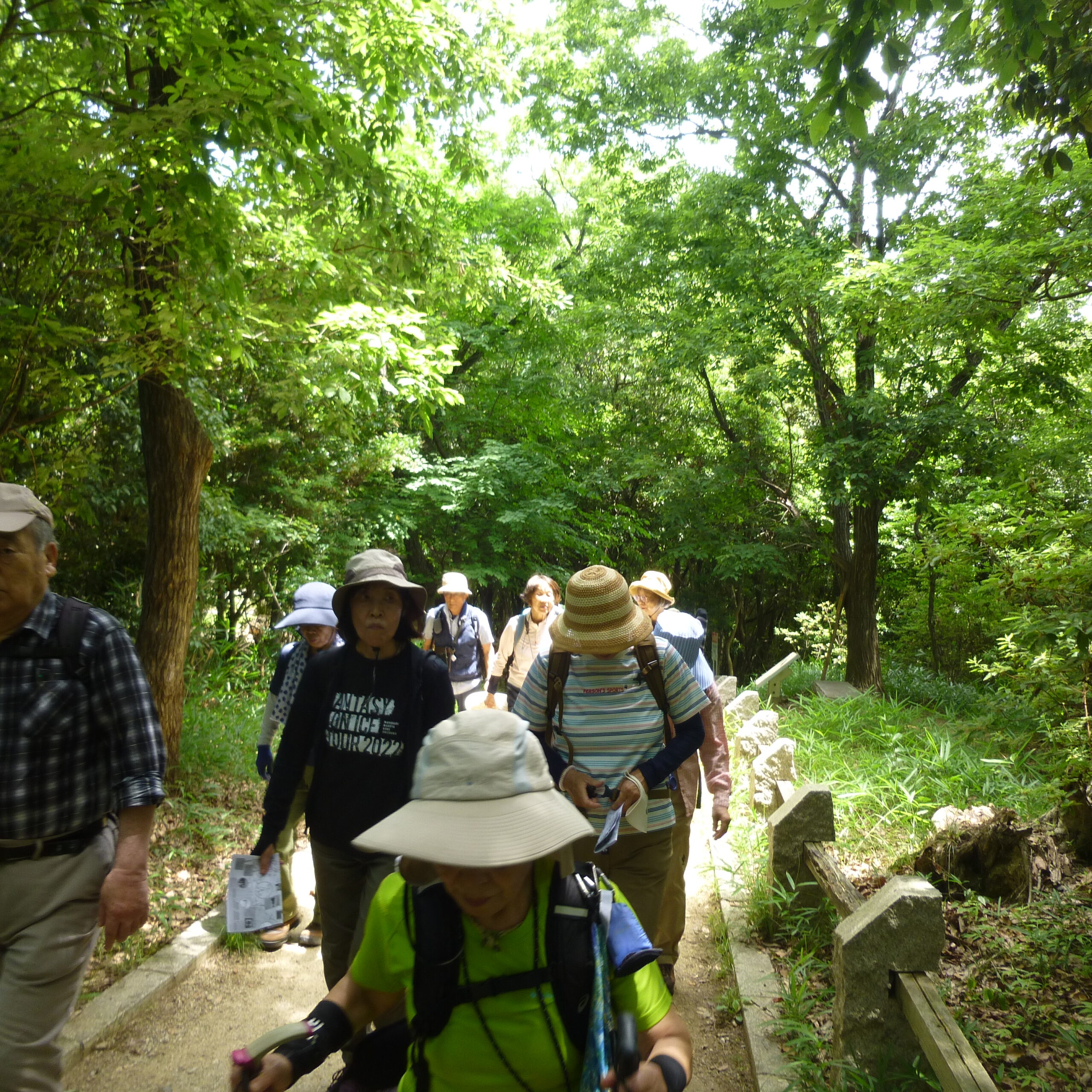 河内長野方面行きのバスは定時に到着・光明池方面行は暫くお寺の階段で休憩してからバス停に向かいました。今年一番の暑さの中を本当にお疲れさまでした。(M.F)