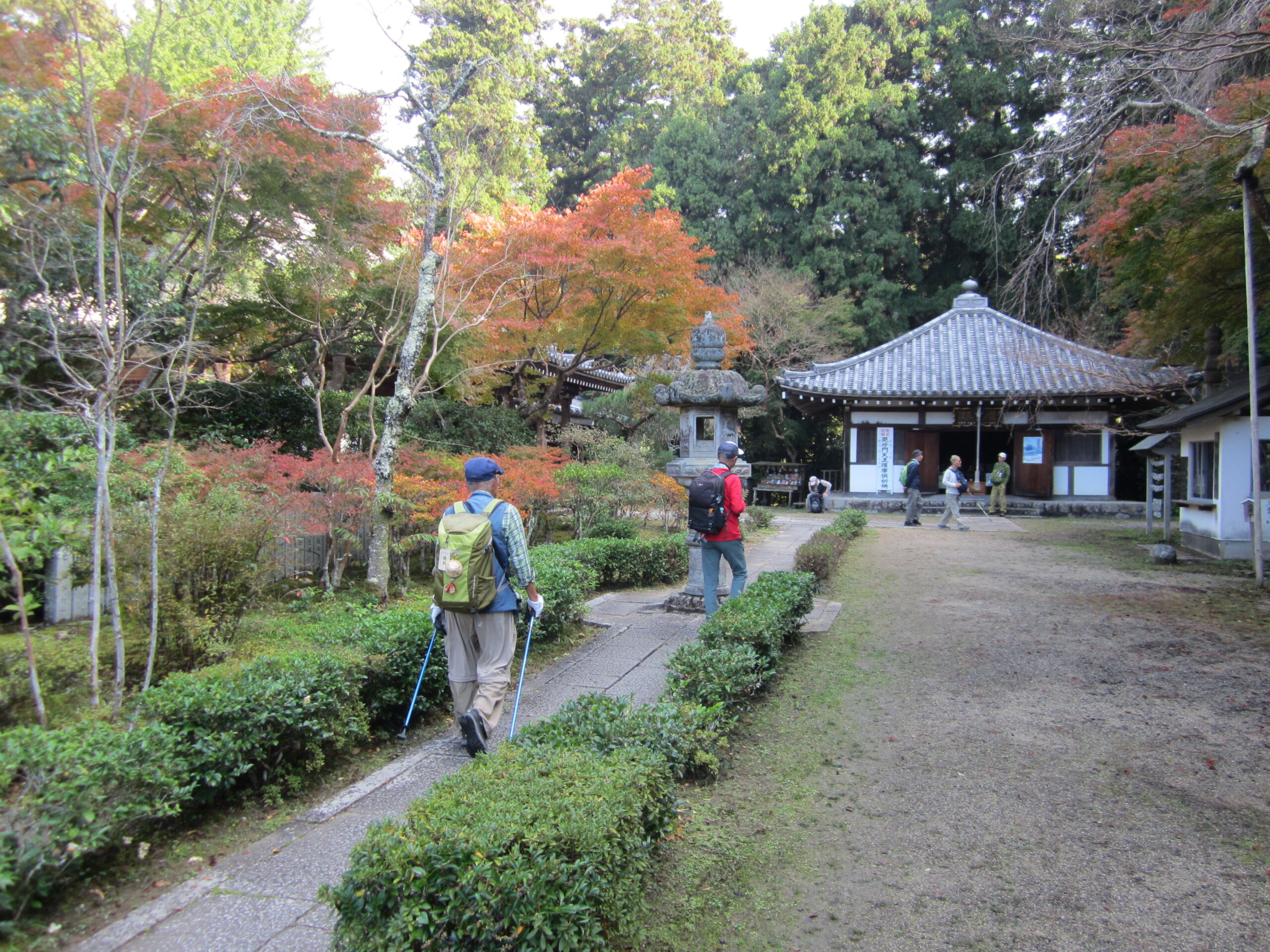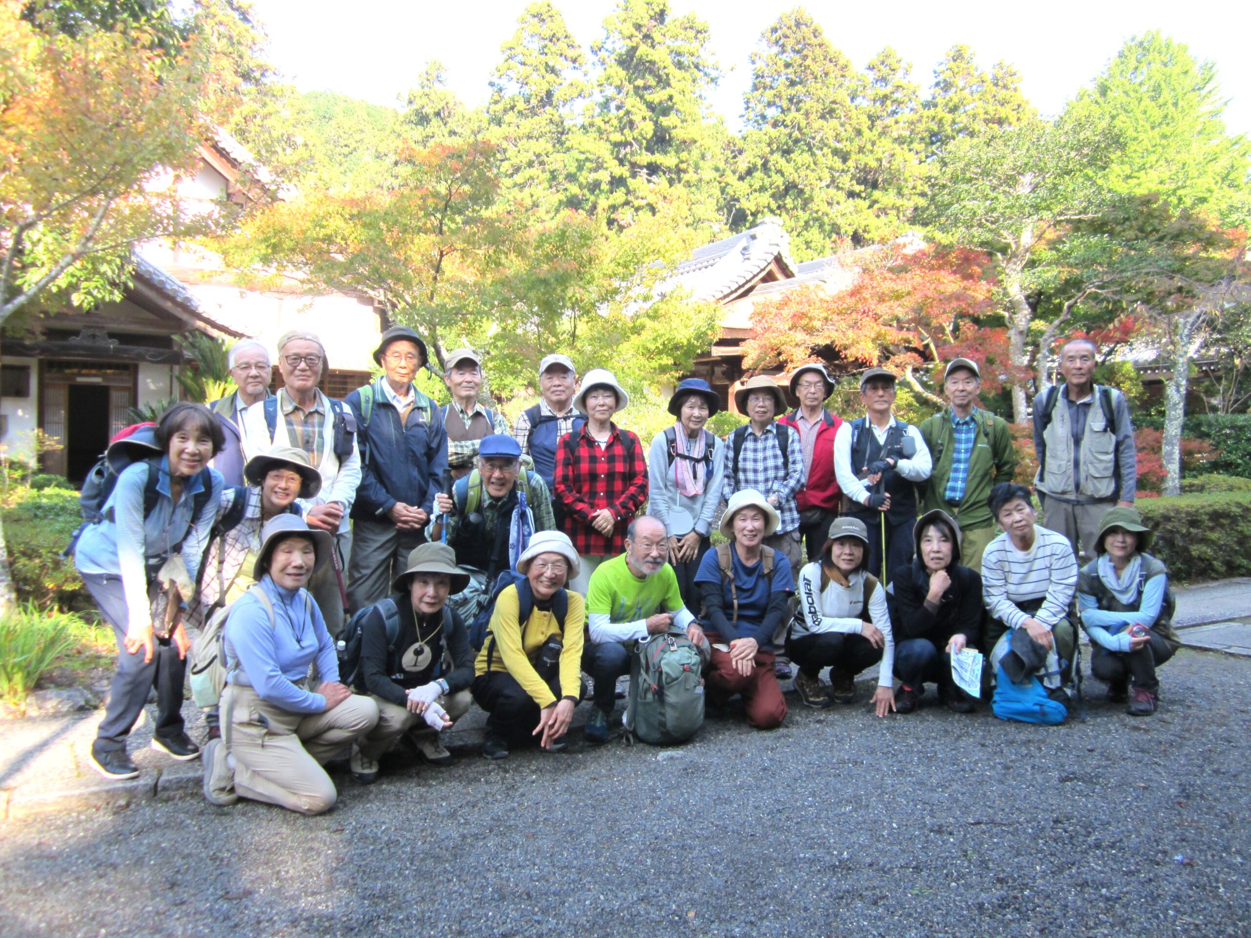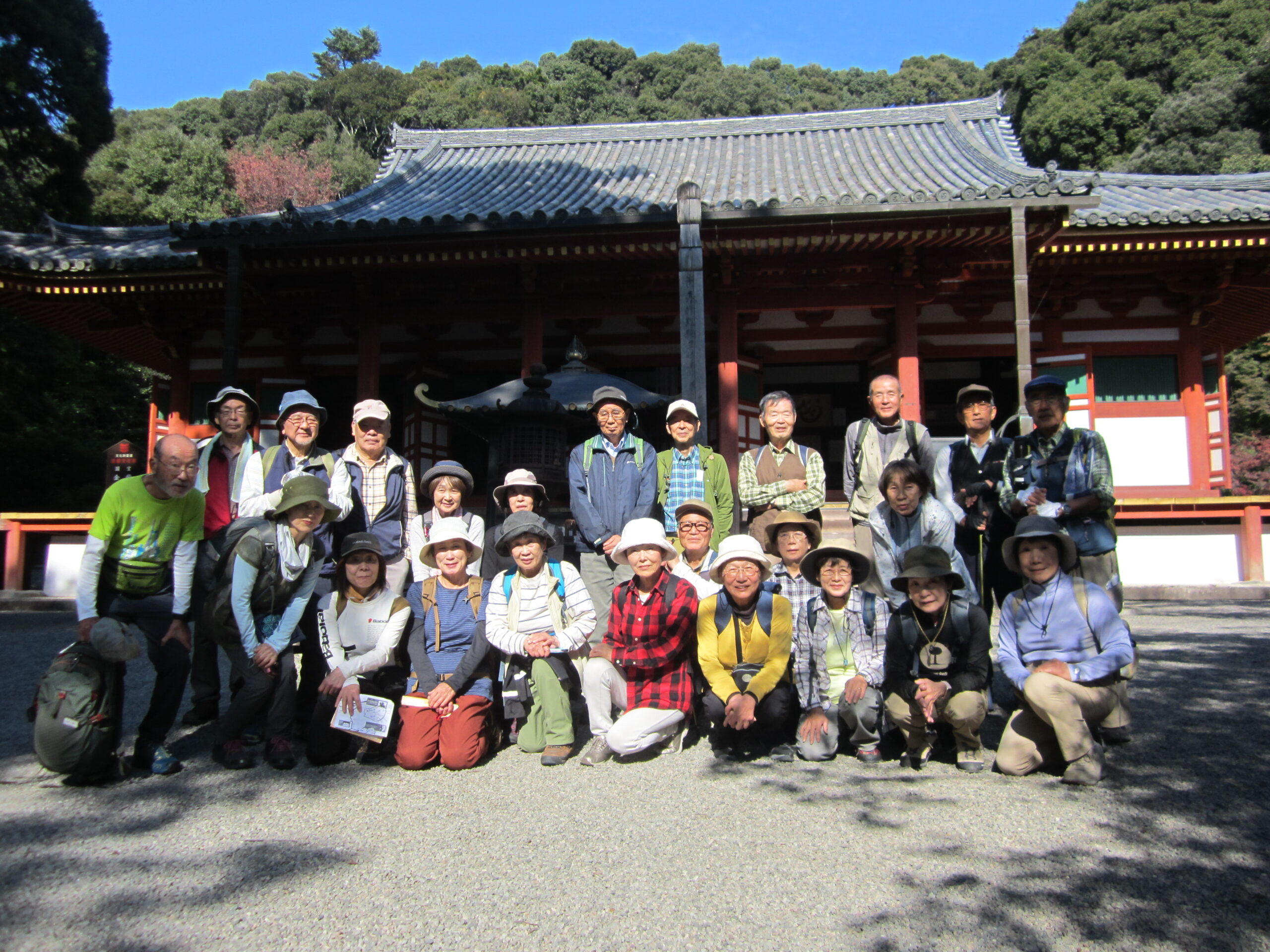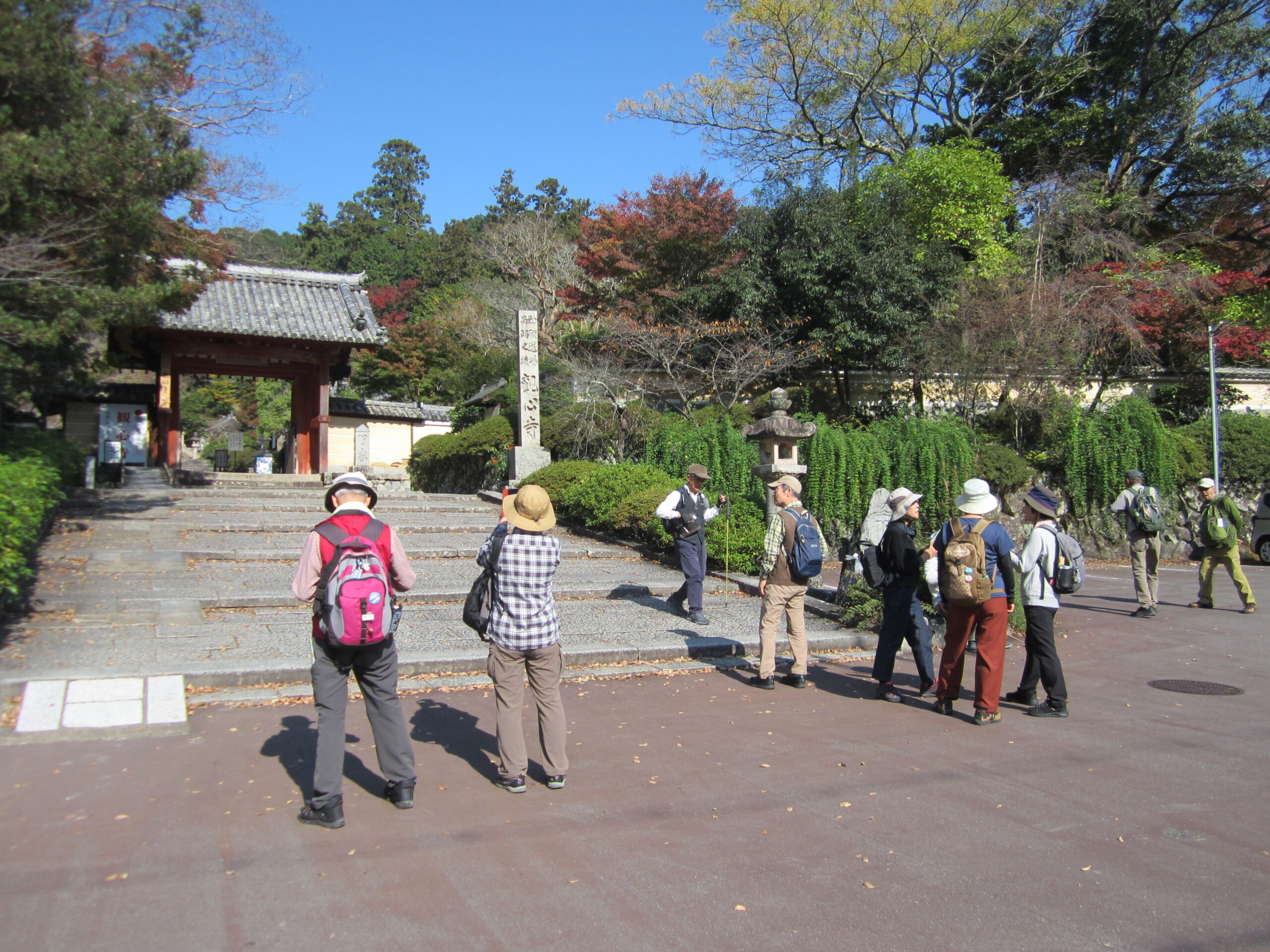 当日は良い天気に恵まれ、絶好のウオーキング日和だった。集合場所の河内長野駅から最初のポイントである丸山展望台に向かった。長野公園内を通り、大師町の住宅地の長い上り坂を歩く。途中、休憩を取りながら、丸山展望台に到着。展望台から眺望すると良い景色でいろいろな風物等が見えたが、下見の時に見えた大阪湾は靄(もや)がかかり残念ながら見えなかった。次に観心寺に向かい、到着後、境内で昼食を取り、しばし散策した。そこから、アップダウンのある林間の道を延命寺に向かった。延命寺はモミジの名所であるが、11中旬だったので紅葉は始まっていたものの完全な紅葉には少し早かった。当寺から、長い道をウオーキングしながら、ゴールである千早口駅に向かい、到着後同駅で解散した。