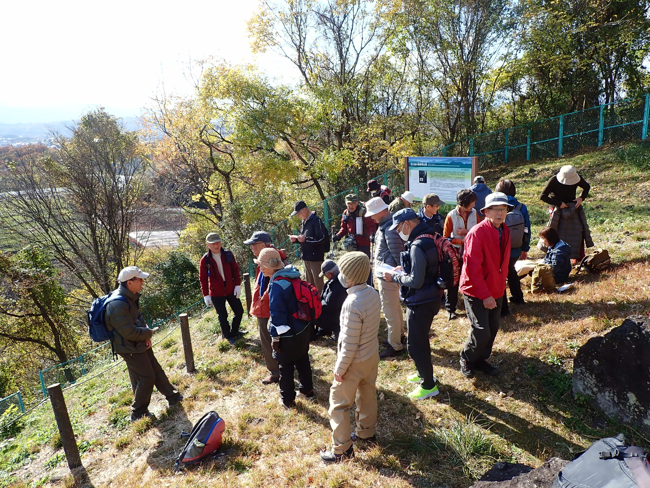 今日は近鉄上ノ太子駅をスタートとゴールとした古代、飛鳥時代、平安時代を 訪ねる歴史散歩の河内飛鳥コース②です。一面にブドウ畑が広がる丘陵地や金剛、葛城の山並みを観音塚古墳から一望して、竹内街道にある妙見寺で由来を住職から聞き松井塚古墳が有る公園で昼食タイム。後半は聖徳太子御廟がある叡福寺を見学して紅葉、黄葉した風景の中を源氏三代の墓、河内源氏は発祥の地にあり樹齢約1,000年天然記念物のクスノキが有る壺井八幡宮を訪れて好天に恵まれた。ウォーキングを終了した。(T.O)