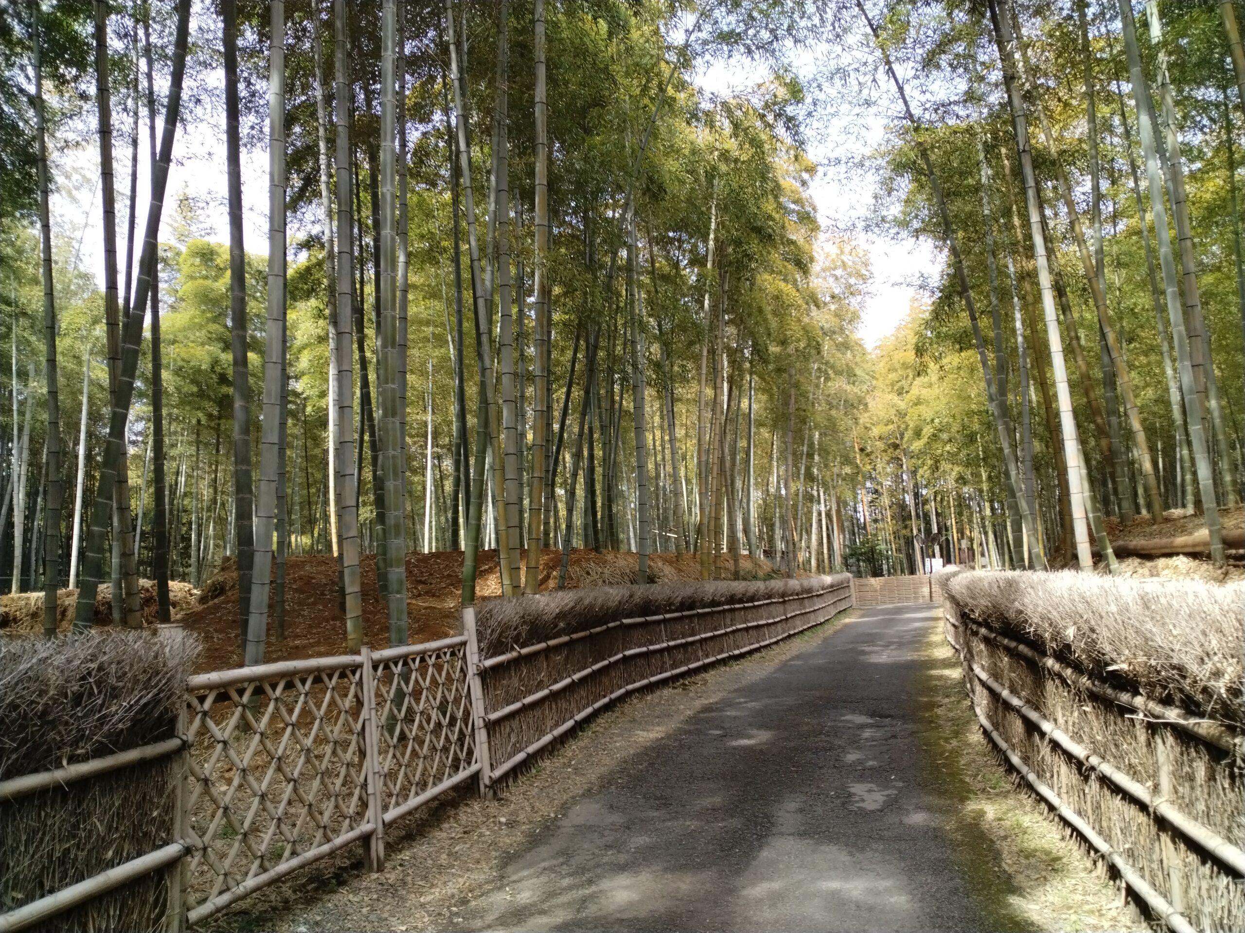 阪急京都線西向日駅に10時集合。天気予報によると気温は、4月中旬の17℃まで上がるとの事。絶好のウオーキング日和。駅前の観光案内所にて、本日コースのパンフレットを受取る。長岡京は、平安京遷都まで10年間の「幻の都」言われており、住宅地と混在しており、遺構は多くありませんでした。その後、向日神社に行きます。参道はきれいに整備された石畳です。本堂前に「能舞台」があり、今でも使用されている様です。向日市文化資料館にて、長岡京のなりたち等を見学しました。ジオラマによると「平城京・藤原京」に劣らない位大きかったそうです。「桓武天皇皇后陵」経て「竹の径」に行きます。「竹の径」は、想像以上に整備され、複数の竹生垣が素晴らしく趣のある道です。「洛西竹林公園」横の公園にて昼食、複数のシニアグループが、来られており賑わっていました。竹林公園内には、「珍しい竹」や「竹細工」を見学し、回遊式の公園内を散策しました。帰路は阪急洛西口駅にて解散。(S.U)