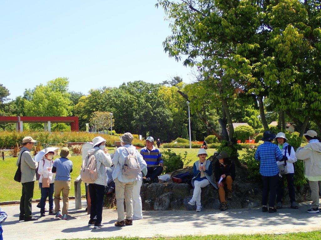 猪名川公園は樹木が多くお弁当を食べながら蚊を追い払う場面も。昼食でエネルギーを充電し、ふれあいの緑地で咲き始めたバラを観賞して終点の服部天神宮へ歩を進め全員がゴール。お疲れ様でした、次回の参加を待っています。(T.O)