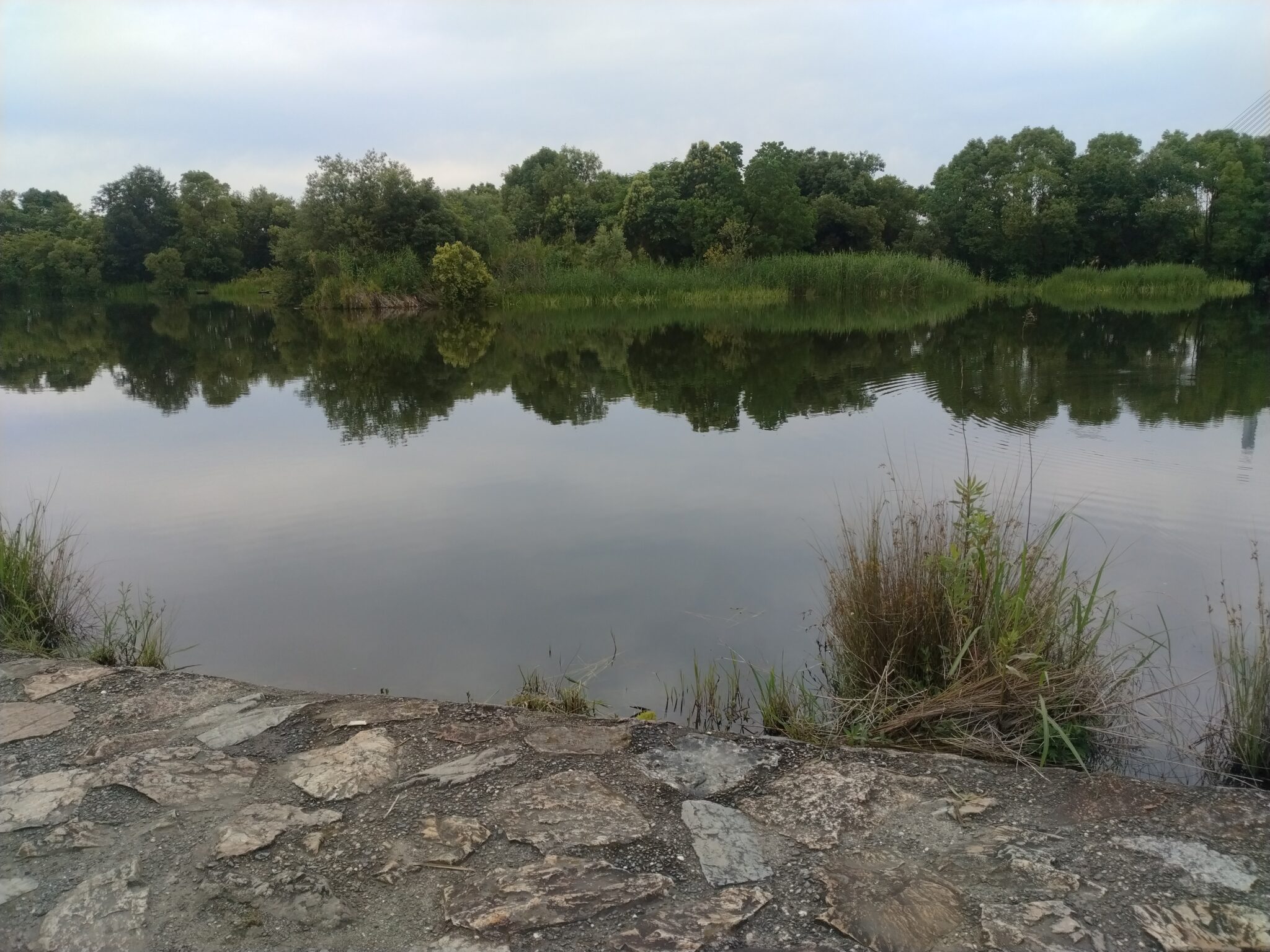 京阪守口市駅に10時集合、天候は梅雨の間の曇りです。最初の史跡「文禄堤」は、豊臣秀吉が作った京街道の一部だそうです。淀川沿いを「河原散策路と堤防散策路」の2グループに分かれてウォキング。散策路は、日差しも弱く心地良い風が吹いて、快適に歩けました。途中の「わんど」には釣り人が大勢楽しんでいました。