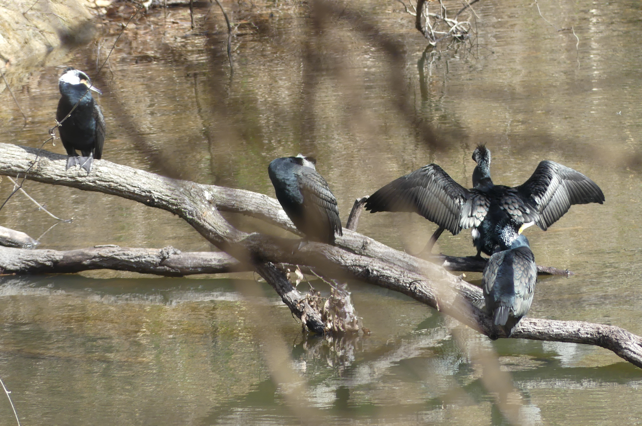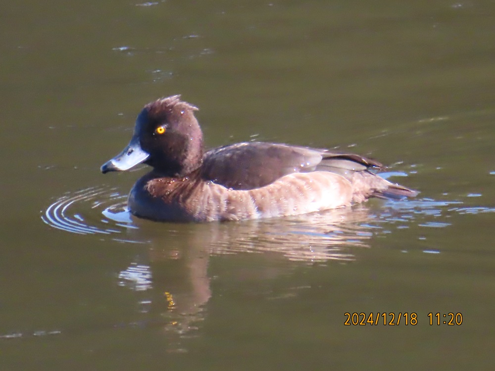 前日の天気予報では降水確率も高かったが、活動時間帯には雨の心配はなさそうなので決行しました。天神橋筋六丁目駅をスタート。淀川河川敷を目指します。堤防に上がると風もあり、しっかり防寒対策をして鳥を探します。ムクドリやカワウの群れを見ながらカモ達を探すとホシハジロやキンクロハジロの群れの中に カンムリカイツブリが水中に盛んに潜って餌探しをしていました。遠くにユリカモメやセグロカモメの飛翔も見られました。