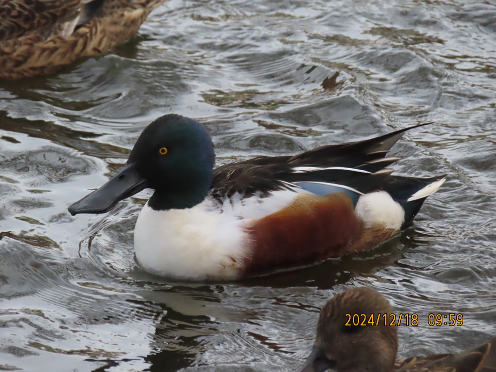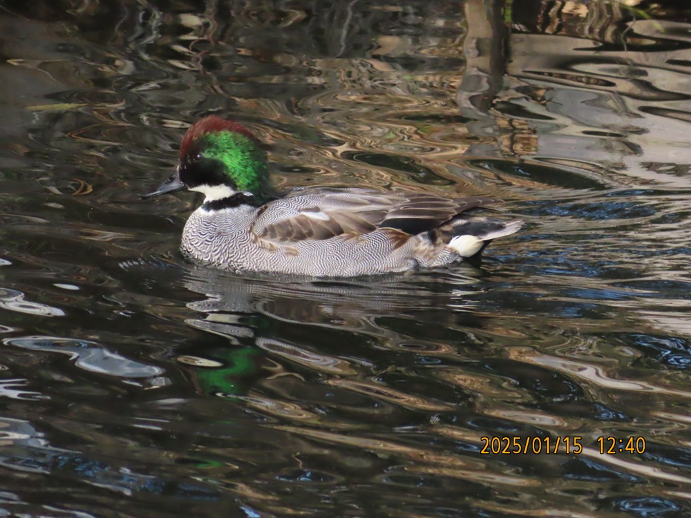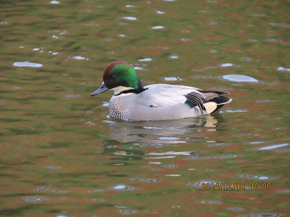 よく晴れた日でしたが、少し風がありました。百舌鳥八幡駅で集合。近くの芦ケ池では今年もすぐ近くでたくさんのカモ達を観察しました。ここでは例年、ナポレオンハットのヨシガモのオスがとても近くで観察できます。こんなに近くで観察できる機会は少ないので、皆、興奮気味でした。オスは5羽いました。マガモやハシビロガモ、ヒドリガモにも会えてスタートです。