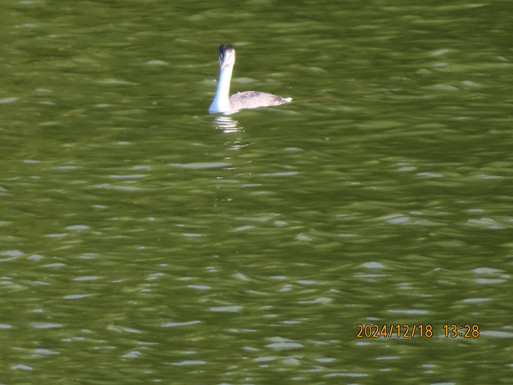今回はカンムリカイツブリがよく見られました。本種は主に冬鳥として渡来します。カイツブリは26cmですがカンムリカイツブリは56cmと大きいです。それだけに潜水時間も長く最長50秒ぐらい潜ることができるそうです。(M.S、写真K.T)
