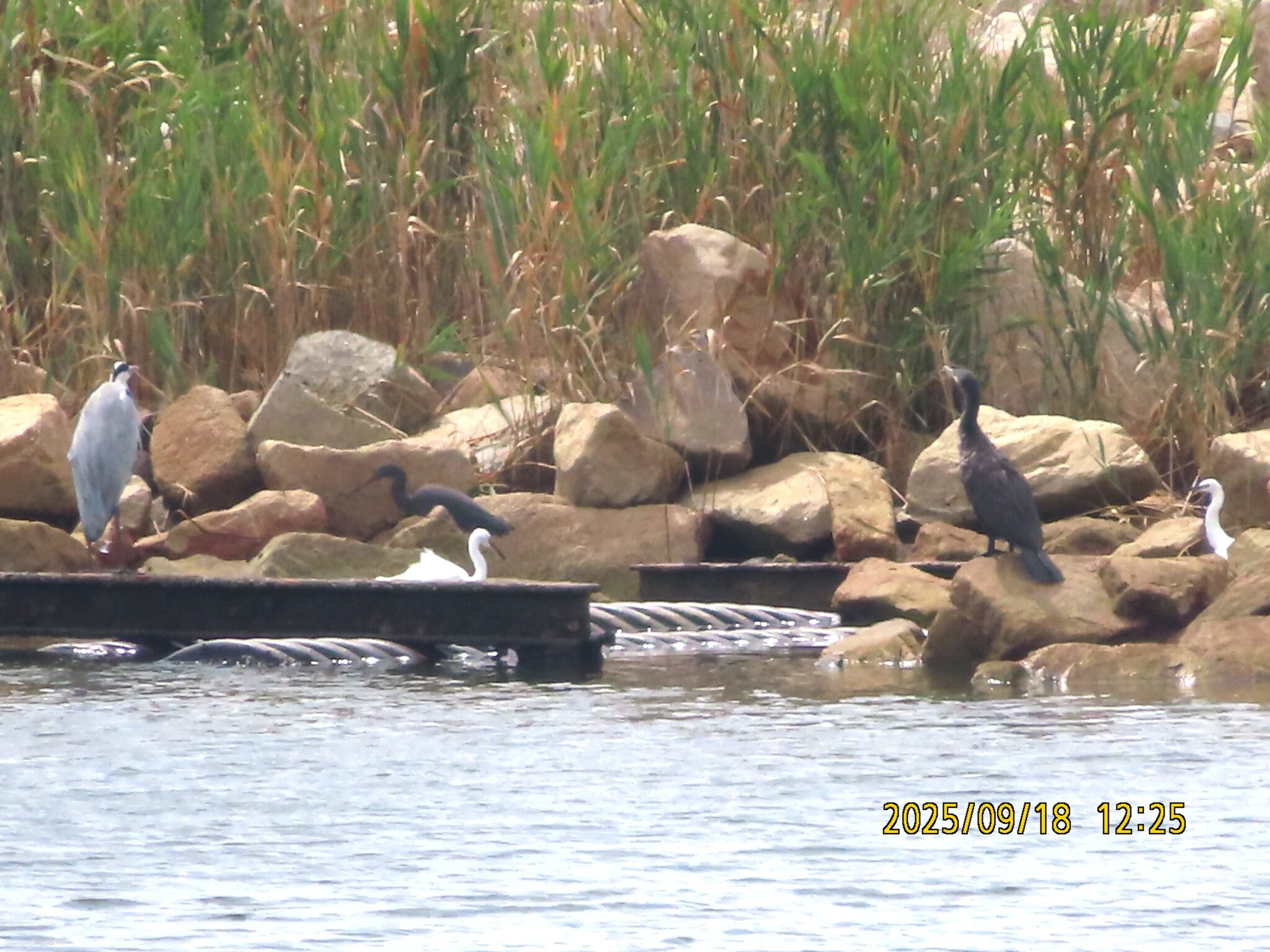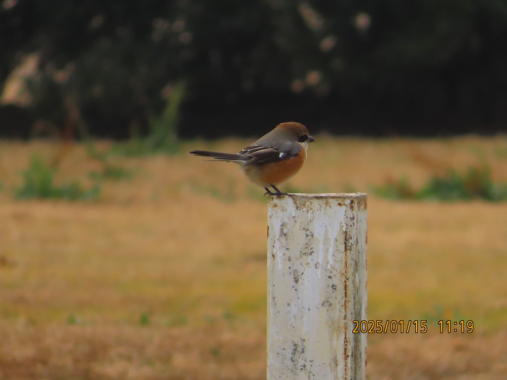 その後は、畑や溜池にカルガモ、カイツブリ、ハクセキレイ、ホオジロ、そしてノビタキ、モズ、コシアカツバメを見て「鳥合わせ」となった。