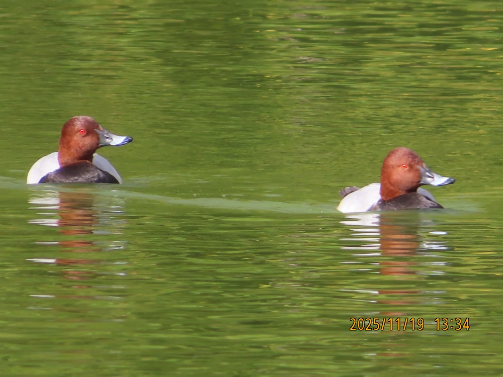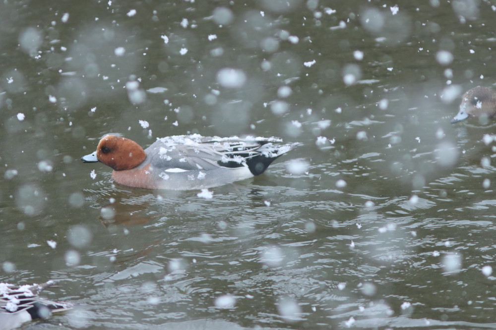 今回はマガモがよく見られました。マガモの特徴は、オスの美しくメタリックな輝きを発する緑色の頭です。しかし、一年中この鮮やかな色をしているのではありません。オスがこの色になるのはメスにアピールするためであり、外敵に見つかりやすいというリスクがあります。多くのカモ類のオスは繁殖が終わると換羽してメスのように地味な色になります。夏の時期の地味な姿は「エクリプス」とよばれます。「覆い隠す」とか「輝きを失わせる」という意味で「月食や日食」をあらわすときにも使われる単語です。日本の冬には実は夏羽で過ごしているということです。冬のカモ観察は、彼らが繁殖の準備のための綺麗な羽色に戻りつつある、一年で最もカラフルな時期とも言えます