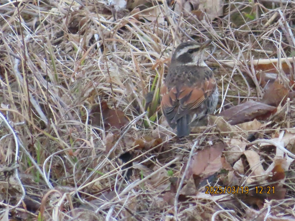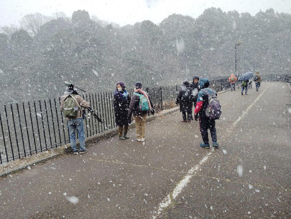 梅の里ではルリビタキ、ジョウビタキと今回のお目当てのトラツグミを観察。ドレミの橋を渡り河内の里に行く途中もシロハラ、アオジ、トラツグミ、ジョウビタキなどが姿を見せてくれました。河内の里で昼食後出発してすぐ少し遠かったですが、待望のルリビタキの綺麗な雄の成長が出てくれました。じゅんさい池からやんちゃの里に向かう頃から雪が強めに降り始め、鳥の姿も見えにくくなって早々にパークセンターに向かい、鳥合わせして解散しました。観察種は例年に比べ少なめでしたが公園のあちこちでトラツグミを見ることが出来てそれなりに楽しめた探鳥会でした。しかし寒かったです。