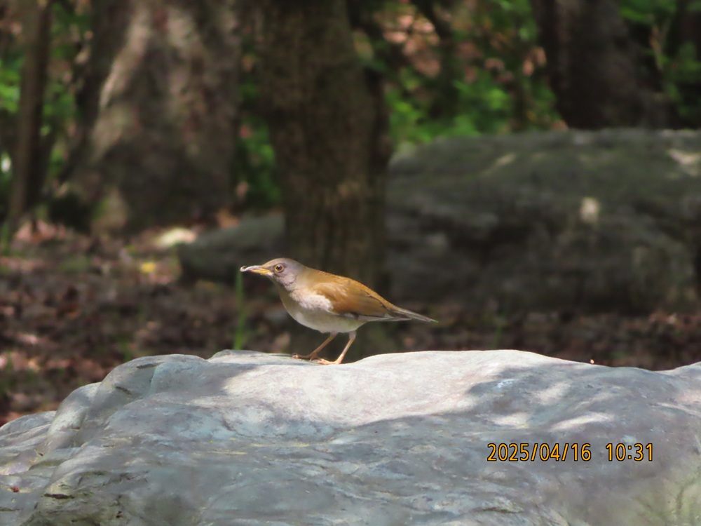 公園南口にはお天気に誘われてか新年度部員74名のうち31名が集合。園内の新緑が出始めた森林からはシジュウカラの鳴き声が聞こえ空ではツバメが飛ぶかう。新緑は小鳥観察の視界を邪魔するが、この公園の樹下は見通しが良く、早速にシロハラの出現。シロハラはその後も園内の至る所で出会い、まさに今日はシロハラdayになりました。大泉池では、ヒドリガモが数羽、ペア毎に分散して泳いでおり、池面からはカイツブリが時々顔を出す。池のサギ島は、今回はコサギとゴイサギに独占されカワウは端や他所に追いやられていた。