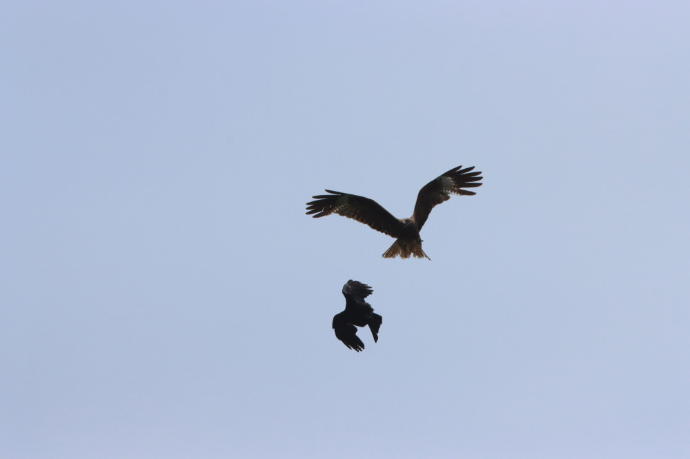 朝から春というより初夏を思わせる日差しが照り付ける。出発点の南海滝谷駅近くではツバメが飛び回り、民家の軒先にツバメの巣が幾つも並ぶ。中にはコシアカツバメの巣も、いずれも育雛にはまだ早いようだ。住宅地ではイソヒヨドリやムクドリの求愛行動が目立ち、あちこちにペアが、この時期ならではのムクドリ雌雄の違いを確認する。西除川沿いの田畑では、子育て中のケリの鳴き声がけたたましく、ヒバリも頭上を派手に鳴きながら飛ぶ。キジの姿を見たのは数人だったが鳴き声は全員が確認。西除川に沿って川下へ進むと、川中にはコガモやマガモがまだ数羽残っていてくれた。クイナは姿を見せたがすぐに草むらの中へ姿を消す。他にもツグミ、コチドリ、ハクセキレイ、カワラヒワ、コゲラ、アオジを観察。期待したヒクイナとカワセミは空振りとなった。