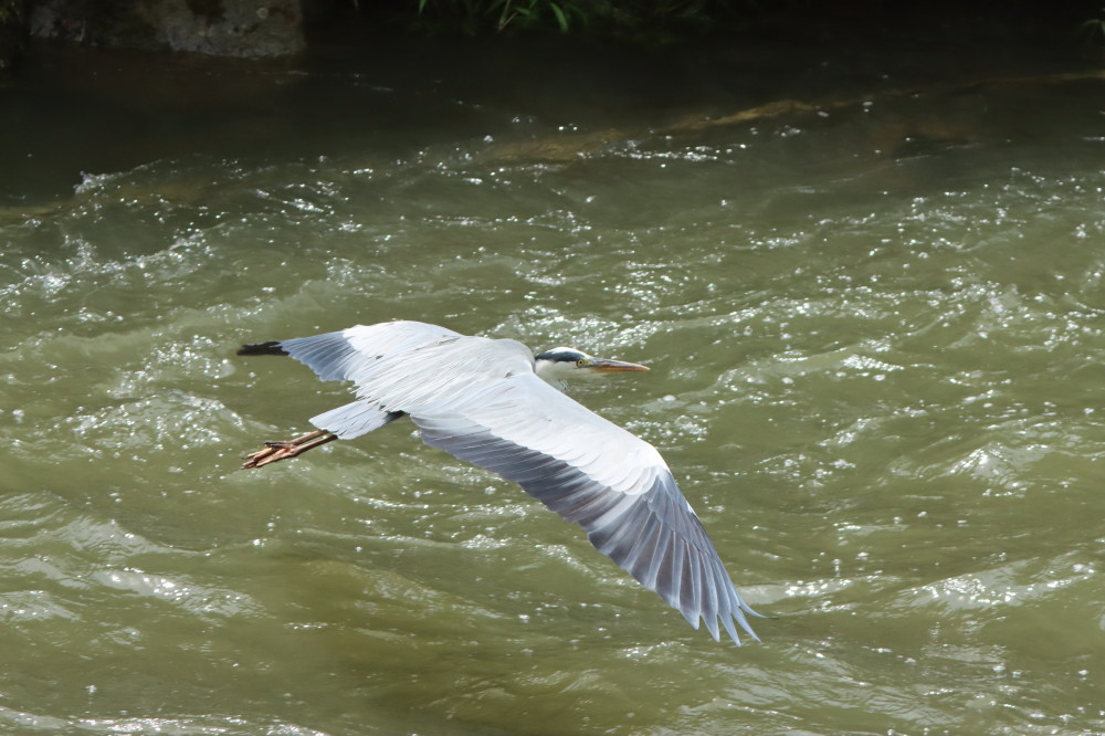 最後の頭泉池では、動かないアオサギ、ゴイサギ、カルガモ2羽と、動き回ってなかなか止まってくれないカワセミ2羽を観察。そこで、暑さが一段と厳しく感じられるようになり、早めの鳥合わせ、解散となった。