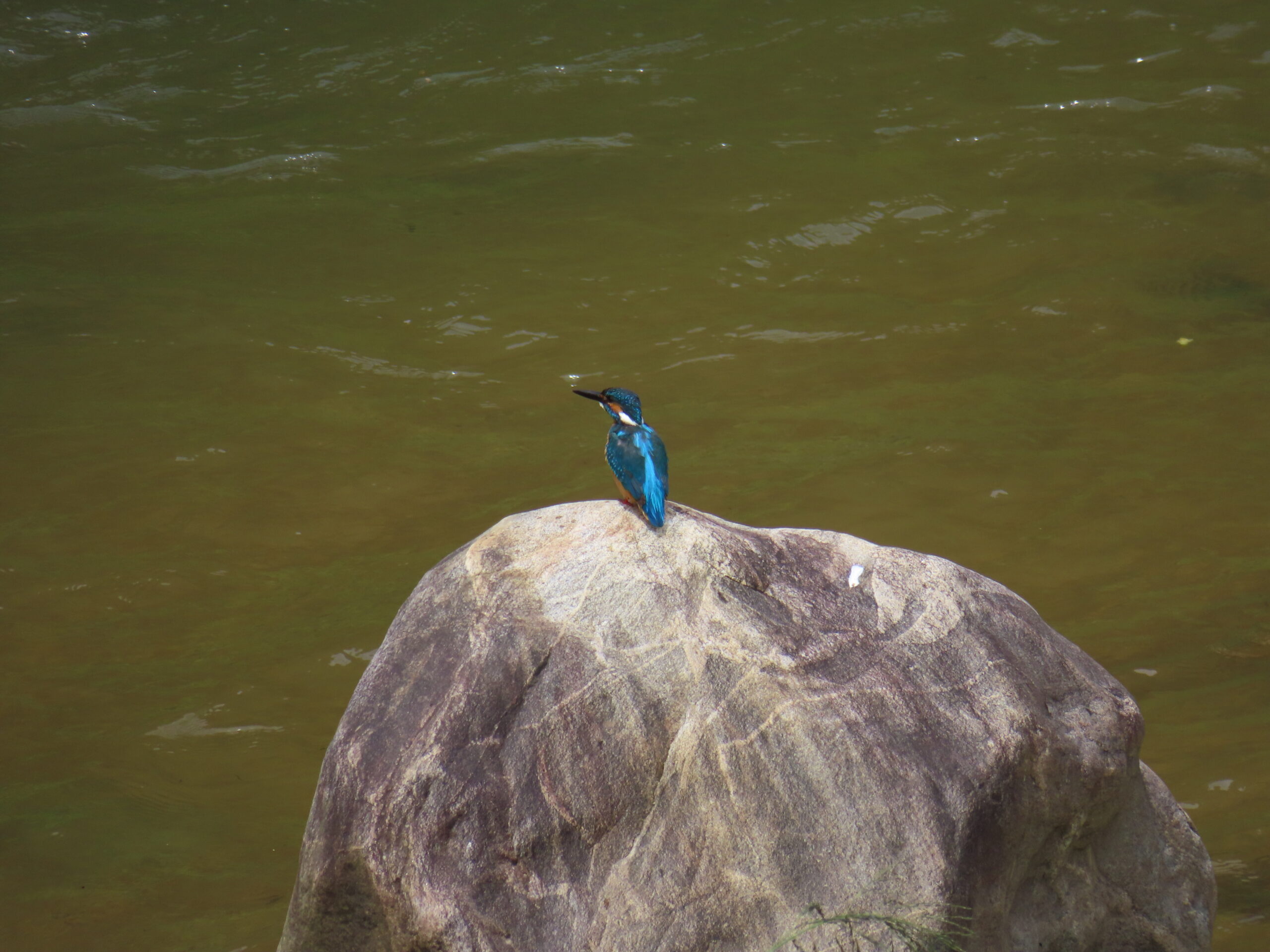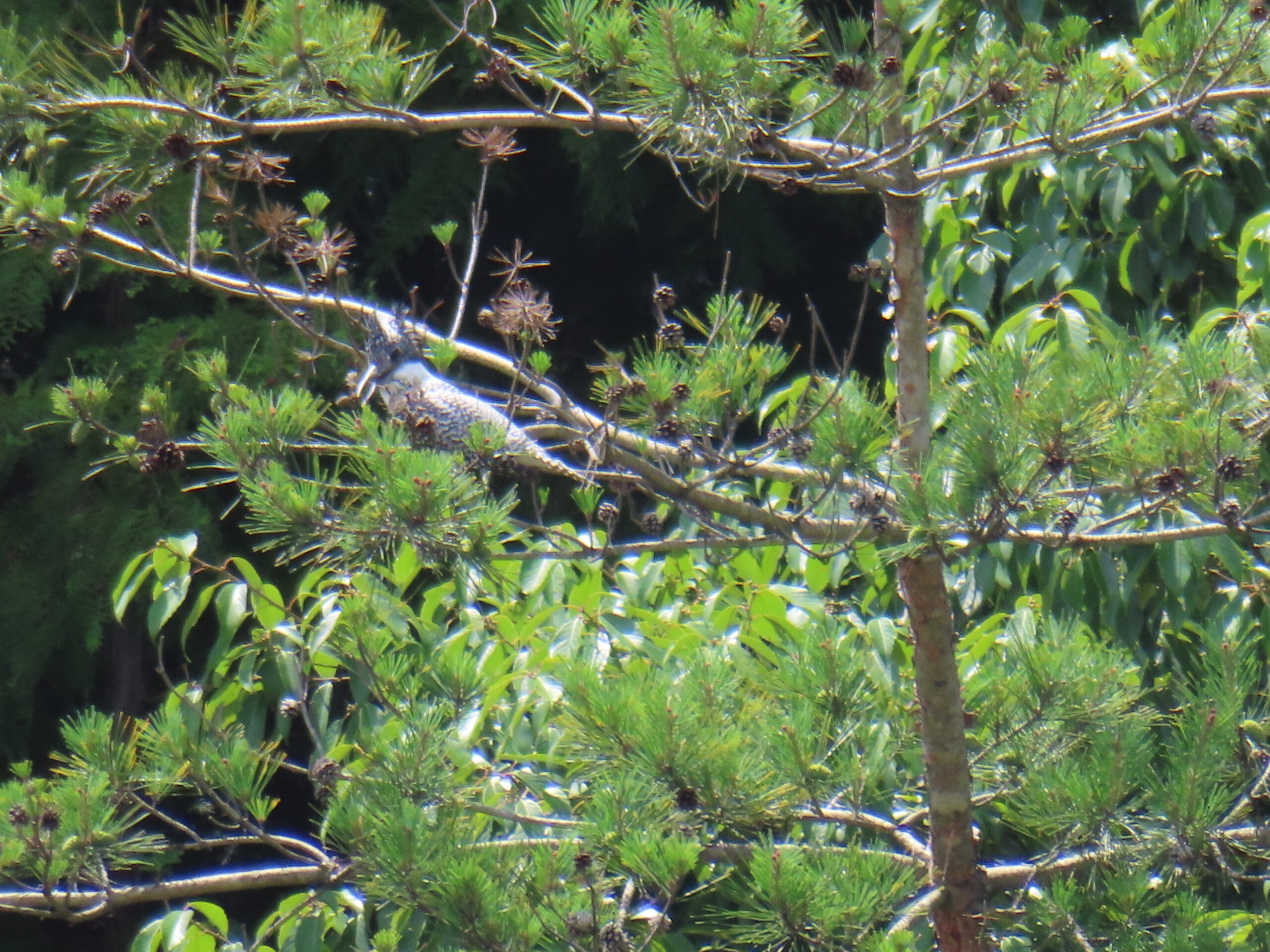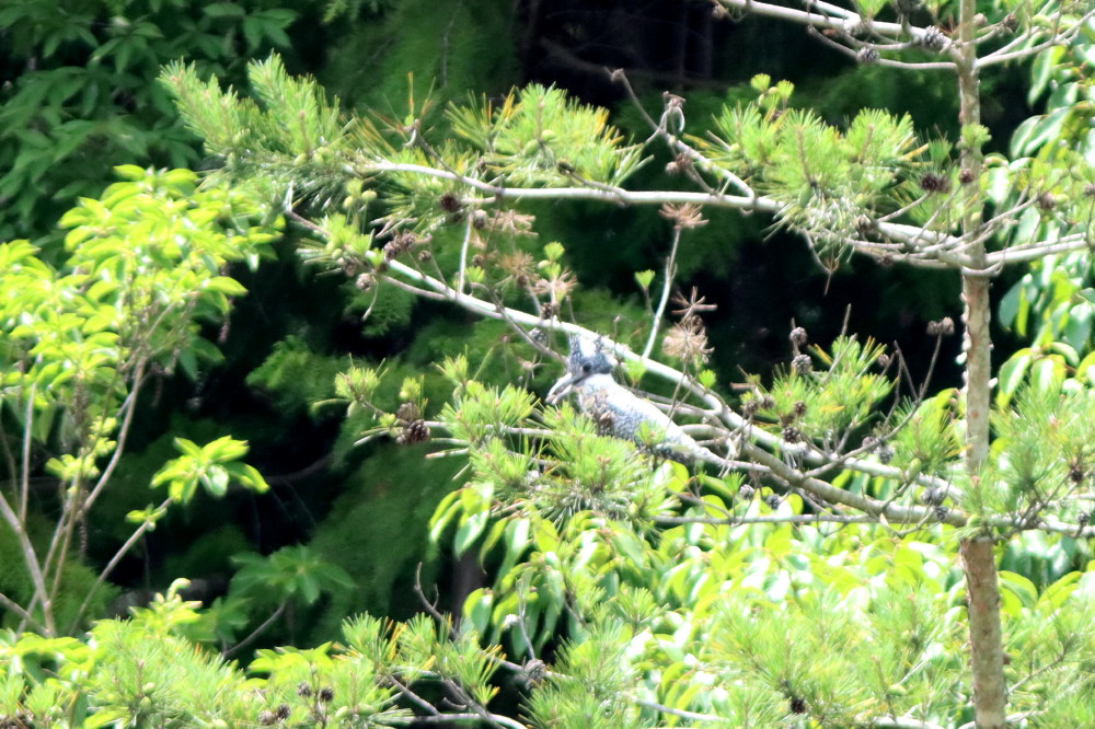 ヤマセミ観察ポイントは数人のカメラマンが出現を待ち構えていたが、今朝から成果がないとのこと、我々も暫く観察を続けるがカワウ、アオサギ以外は何も見当たらない。ポイント近くで昼食をとり、更に待つ。どこからかホトトギスやクロツグミの鳴き声が・・・他にもカワセミやカワラヒワを確認。