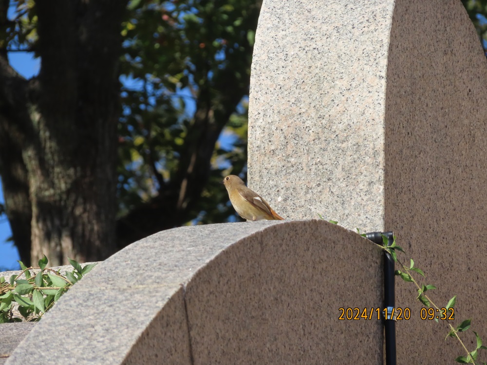 当日の天候は快晴、これ以上ないバードウォッチング日和でした。集合場所でもジョウビタキやイソヒヨドリが見られ、幸先の良いスタートとなりました。山のエリアに向かうと、モチノキで給餌するメジロ、風車の丘でハクセキレイなど観察できました。冬鳥はジョウビタキが大サービスでアチコチに出てくれました。上空ではトビやオオタカが滑空し、小春日和を満喫しました。大池では人懐っこいカモ達やユリカモメが出迎えてくれました。アトリやルリビタキなども期待したのですがそれは又次回にと言うことです。それでも、31種もの野鳥と出会え、まずまずの成果でした。