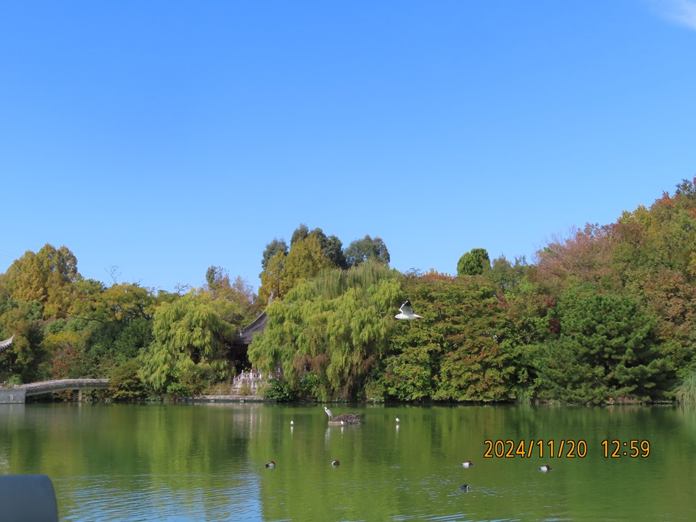 大阪城公園の森ノ宮駅からの入口広場は、多くの外国人観光客を含め相変わらず凄い人出だ。その人波を縫うように我々シニア30人の団体が進む。空は曇っており、かえってこの位の方が戸外活動にはベスト。最初の目的地である「市民の森」に入ると、ここはこれまでの喧騒から離れ静かになり、小鳥の声が聴こえ始める。シジュウカラ、コゲラ、メジロの鳴き声が・・しかしその姿を生い茂った緑の中に見つけるのは難しい。暫く進むとキビタキの囀りが、その鳴き声方向に歩を進めると居ました!目の前に。すぐ目上の樹木の小枝を転々と移動し、その綺麗な声、黄色が目立つ可愛らしい姿に暫く全員が釘付けに・・・そして感動!