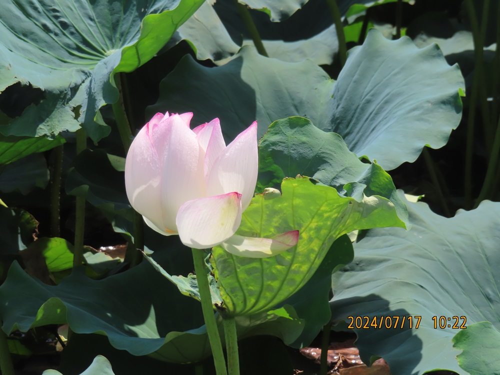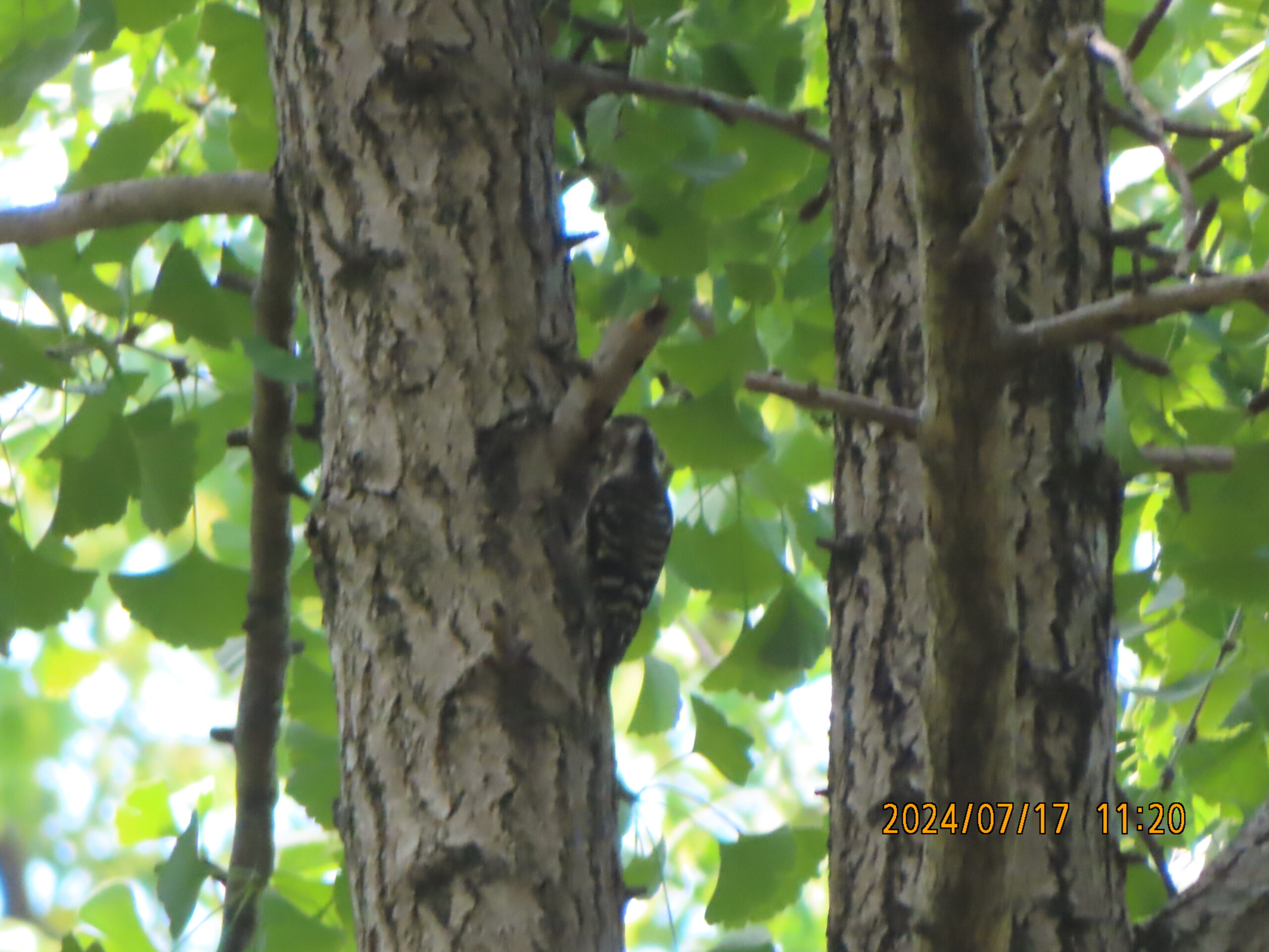 朝から梅雨明けも間近かと思わせる強い日差し、蒸し暑さも一入だ。公園南口にはこの暑さにも拘らず17名が参加。スタートの大泉池ではハスの花が綺麗に咲きほこっている。池の中はカワウと時たまに顔を出すカイツブリ、池の上ではコサギが飛び交う。サギのコロニー島ではコサギが10羽以上、中には親に餌をもらっている幼鳥コサギの姿も、そしてアオサギとゴイサギが1羽ずつ加わる。小鳥の森、水流エリアでは、緑に覆われた小枝を複数のメジロ、シジュウカラ、スズメが若鳥を混じえて飛び交う。日差しを避けた森林日陰コースを採り加呂登池へ、道中では複数のコゲラを見るがこれもファミリーで行動しているようだ。そして親鳥に餌をねだるハシブトガラスの幼鳥も・・。